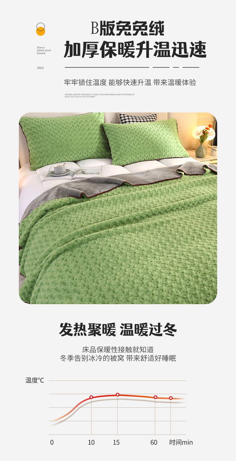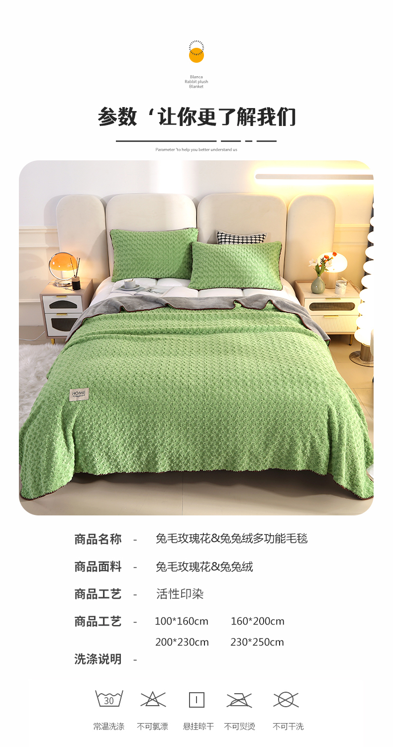 商品名称:(总)悦织湾家纺 兔兔绒玫瑰花毛毯