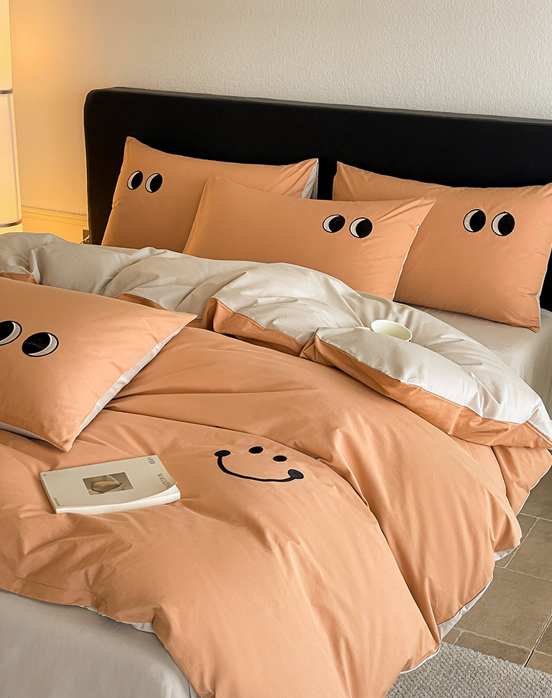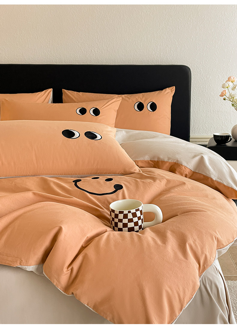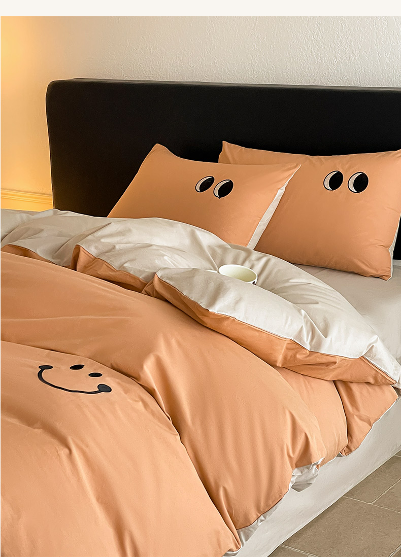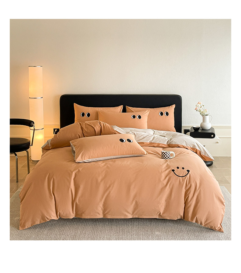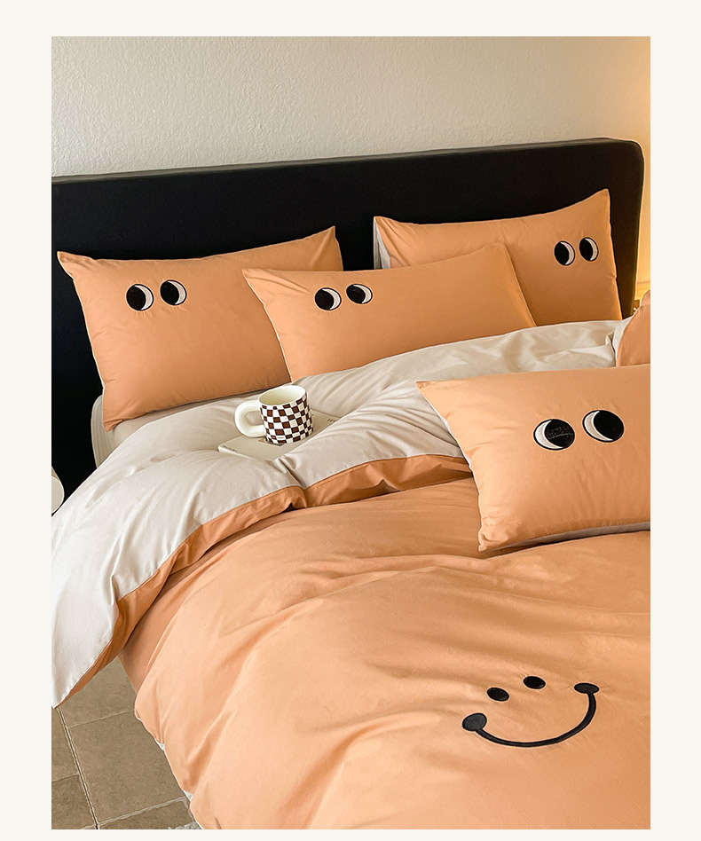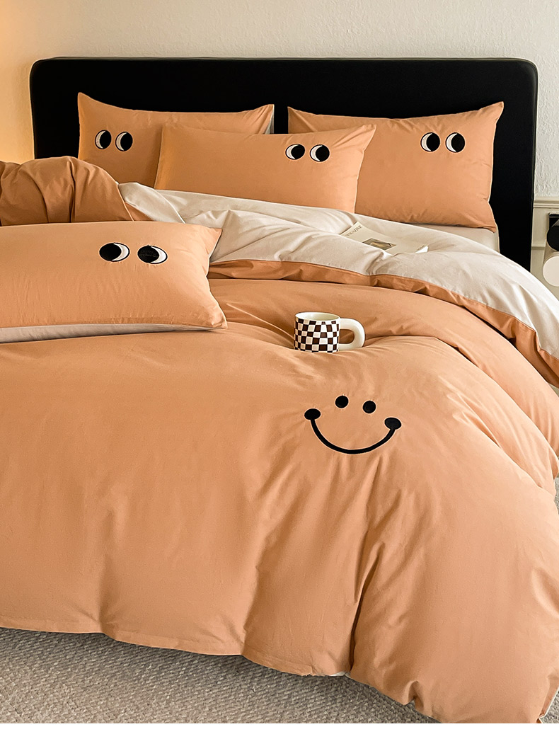 当前位置: 91家纺网 > 商品网购 > 床品套件 > 四件套 > 水洗棉四件套 > ab家纺 2025新款纯色水洗棉笑脸双拼绣花四件套 笑脸 西柚米咖