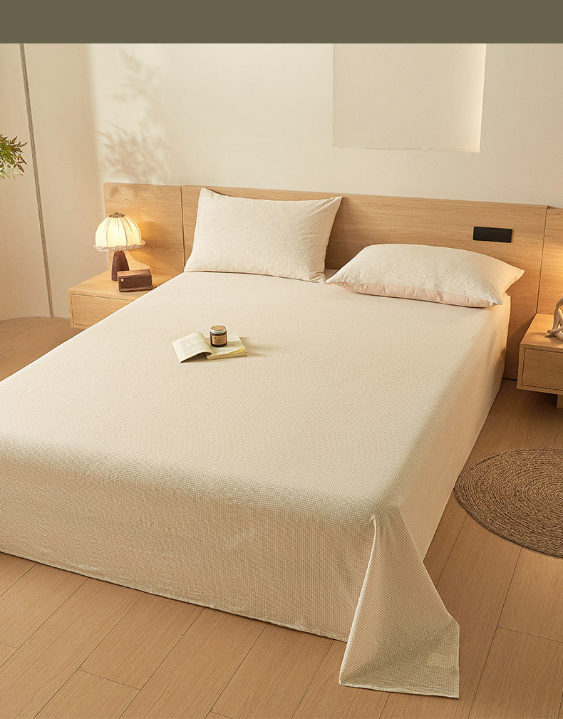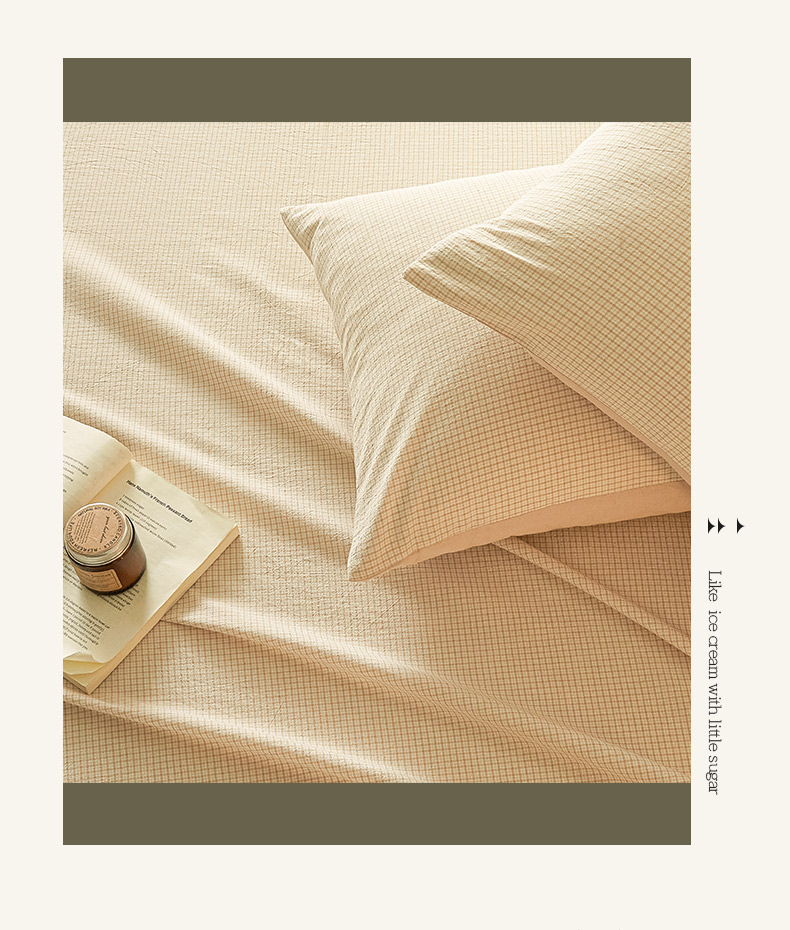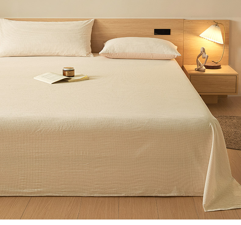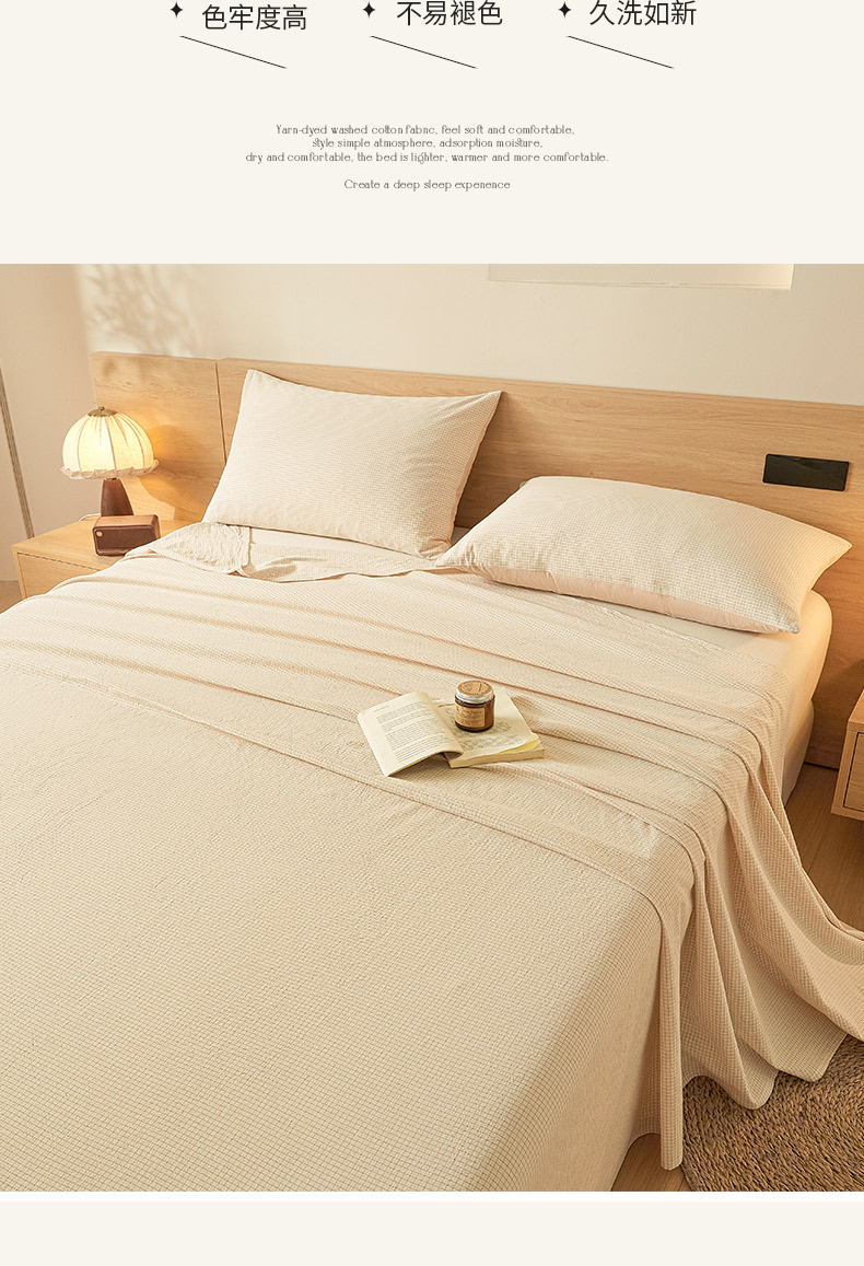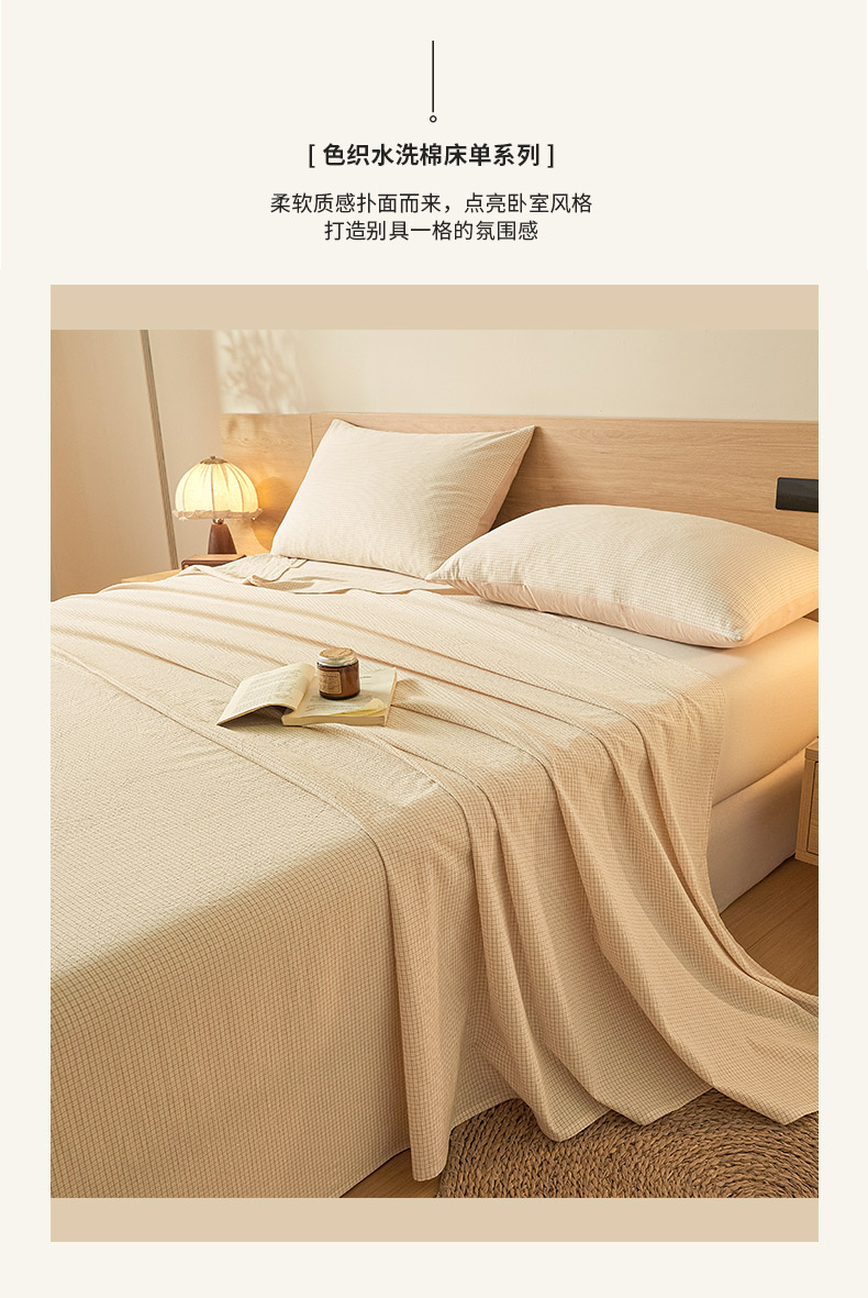 • 91家纺网 家纺一手货源 找家纺 ab家纺 2025新款简约色织水洗棉床单 可颂-黄