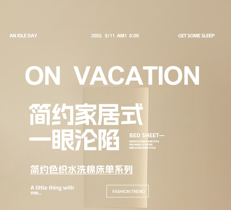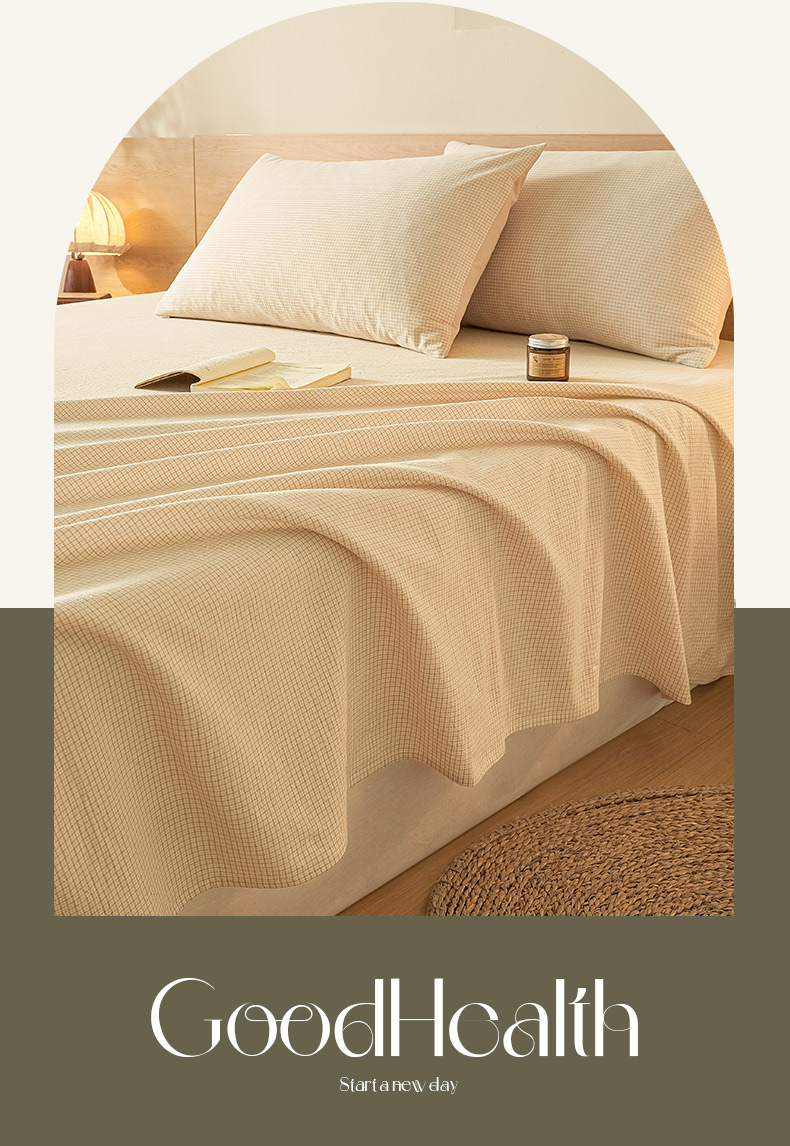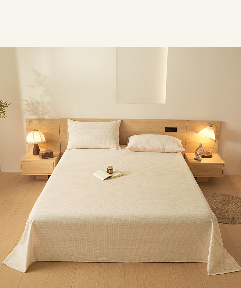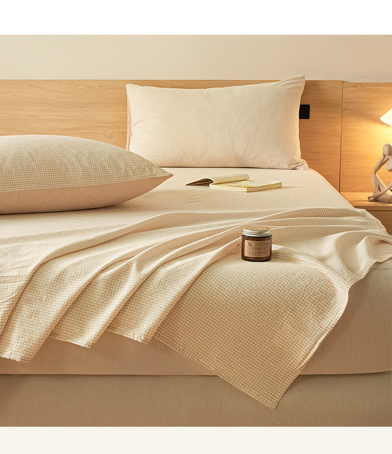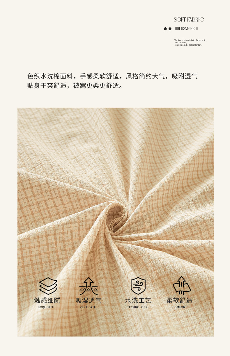 • 91家纺网 家纺一手货源 找家纺 ab家纺 2025新款简约色织水洗棉床单 可颂-黄