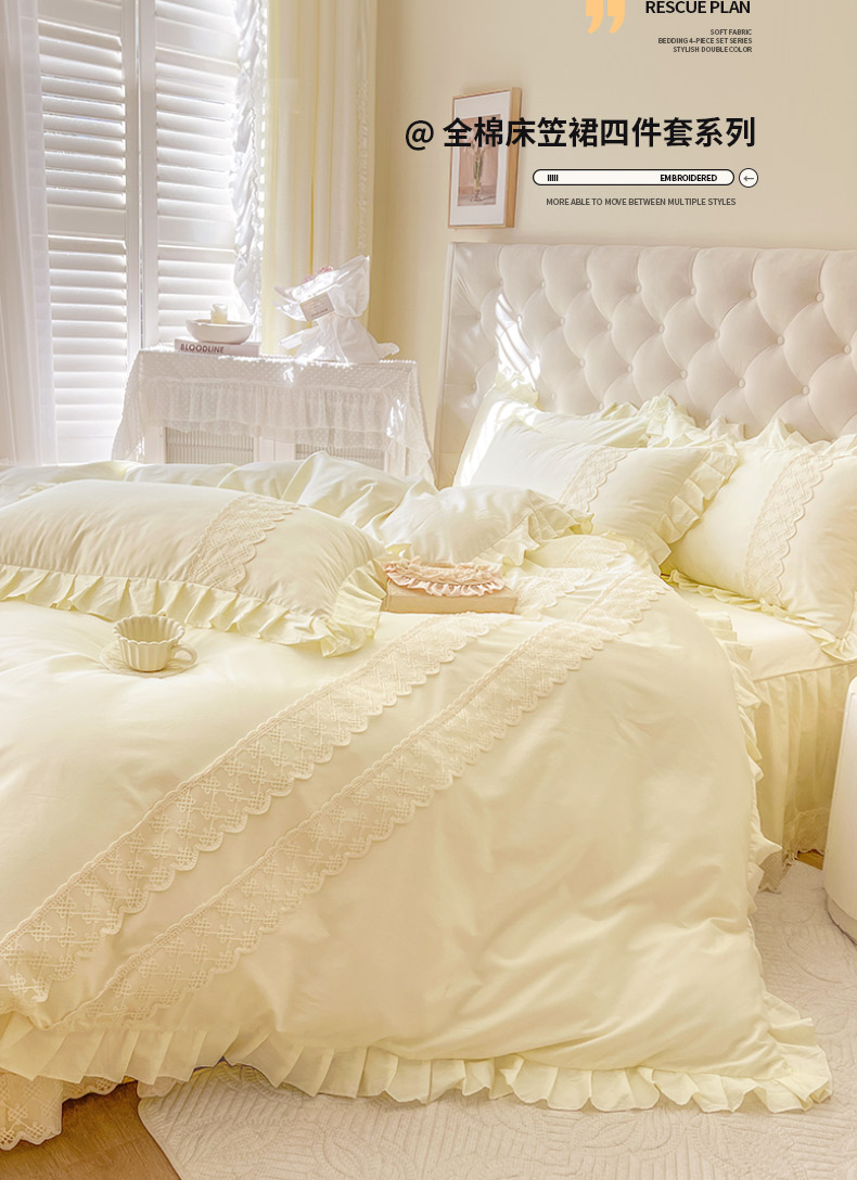 当前位置: 91家纺网 > 商品网购 > 床品套件 > 四件套 > 长绒棉四件套 > 恋尚 2025新款60贡缎长绒棉床笠裙款四件套-赫朵 赫朵 奶黄