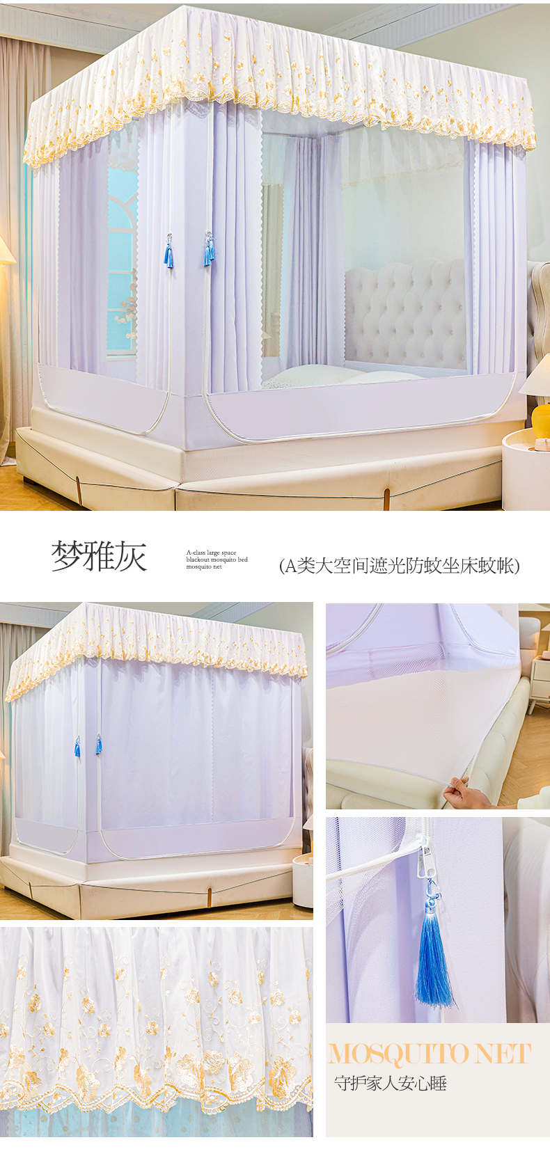 当前位置: 91家纺网 > 商品网购 > 床上用品 > 蚊帐 > 坐床式蚊帐 > 艾晶美家纺有限公司 2025新款坐式刺绣床帘蚊帐 梦雅灰