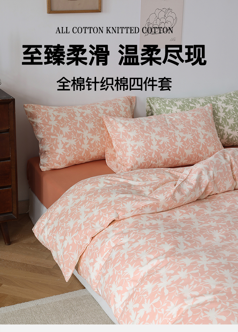 商品名称:2025春夏新品母婴A类全棉纯棉针织棉软糯糯清新小碎花床单款四件套 盛夏粉