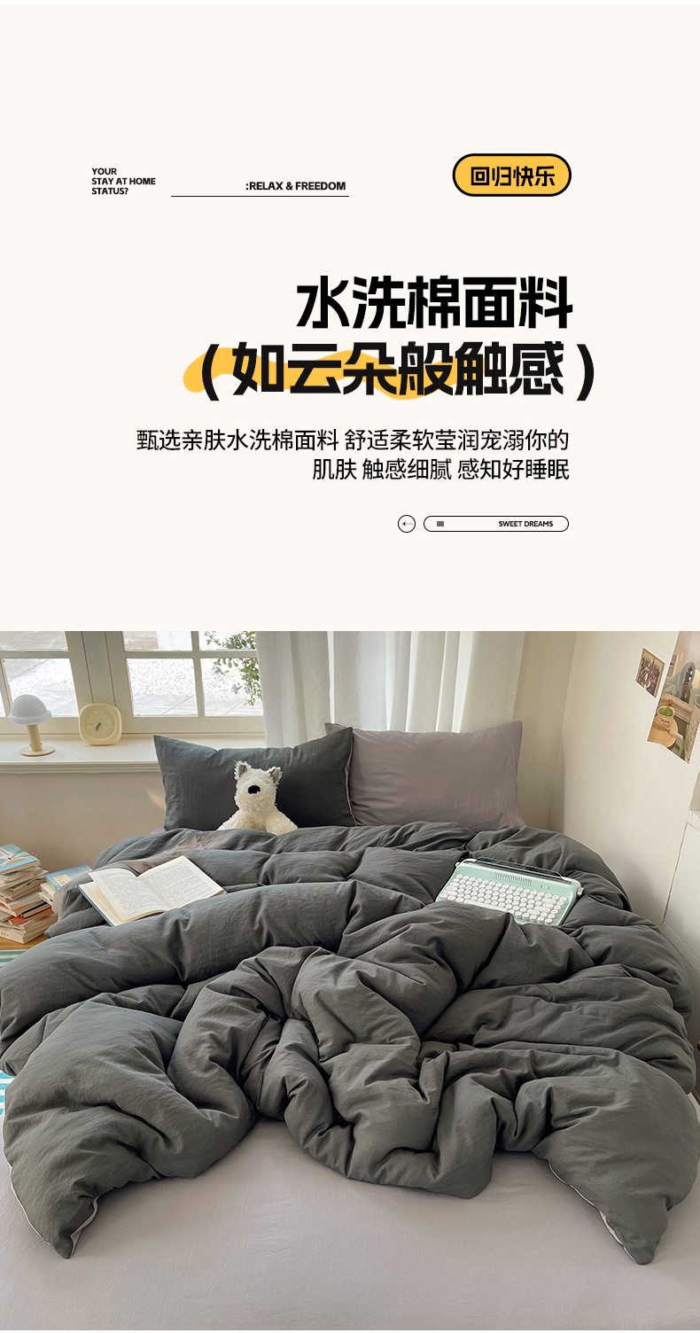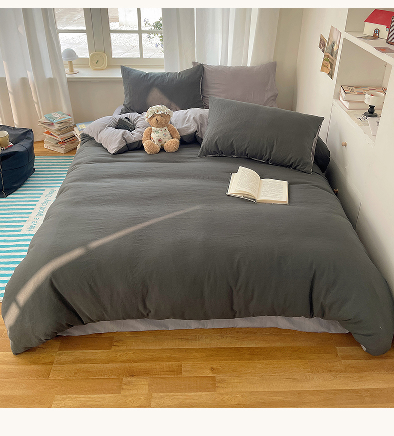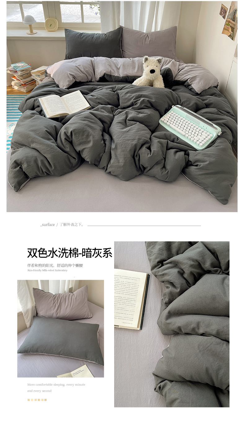 当前位置: 91家纺网 > 商品网购 > 床品套件 > 四件套 > 水洗棉四件套 > 阿曼达 2025新款ins博主风纯色混搭双色水洗m四件套 双色水洗m-暗灰系