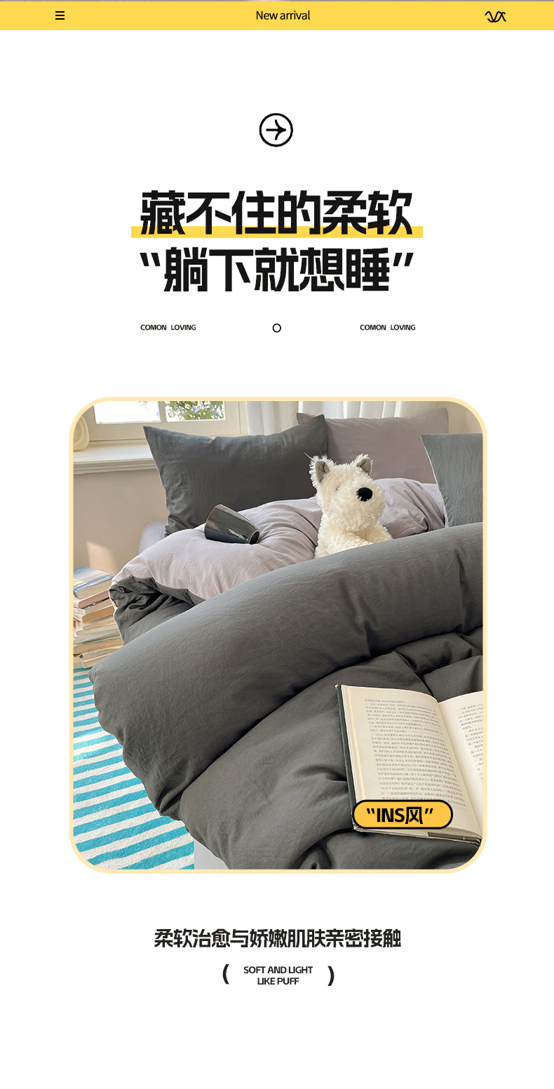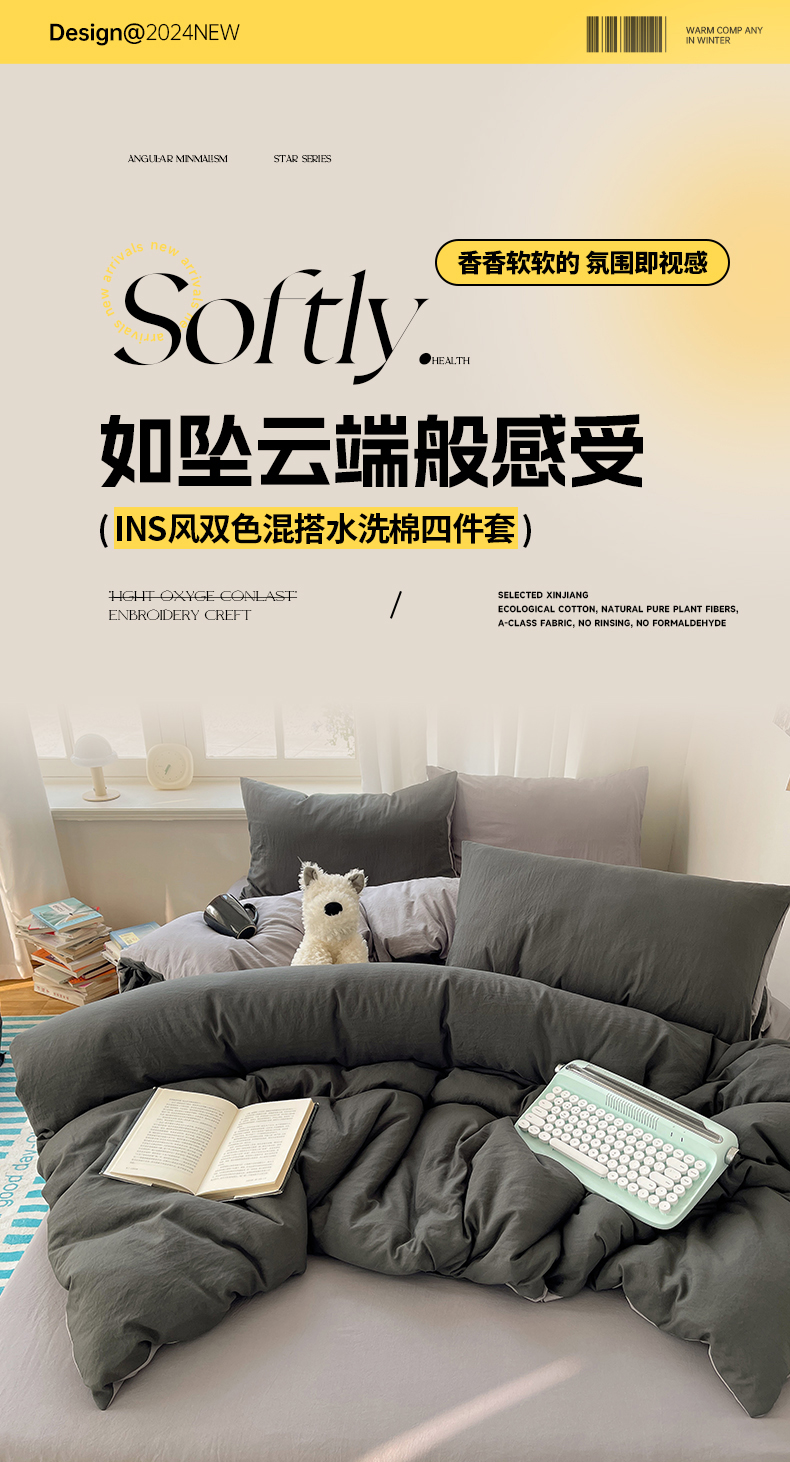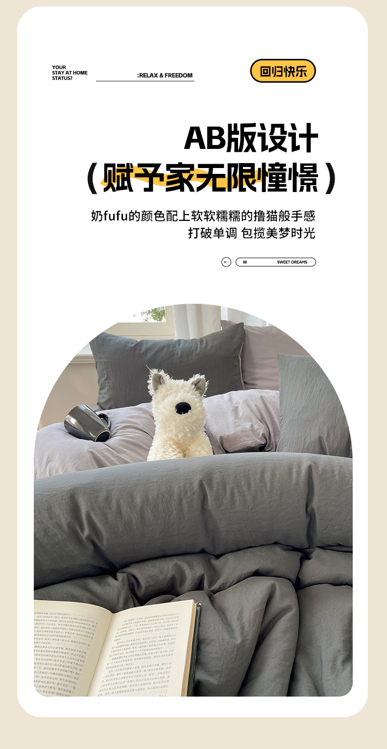 当前位置: 91家纺网 > 商品网购 > 床品套件 > 四件套 > 水洗棉四件套 > 阿曼达 2025新款ins博主风纯色混搭双色水洗m四件套 双色水洗m-暗灰系