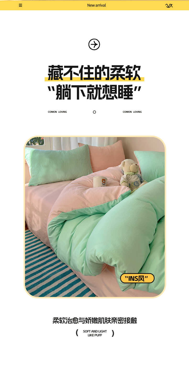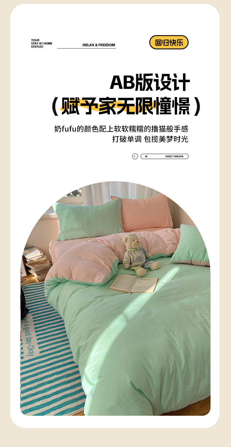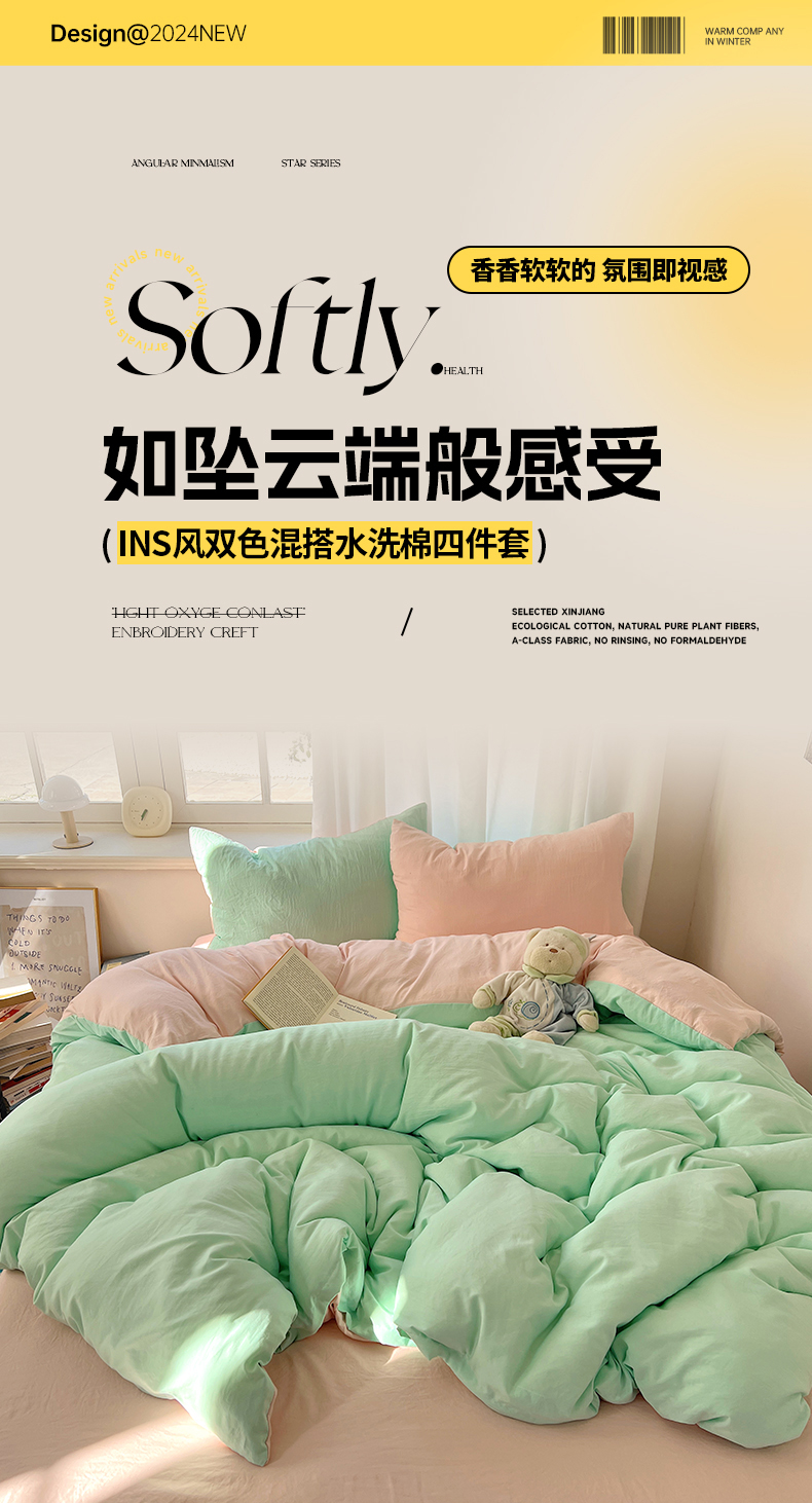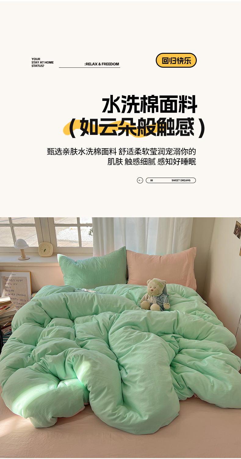 当前位置: 91家纺网 > 商品网购 > 床品套件 > 四件套 > 水洗棉四件套 > 阿曼达 2025新款ins博主风纯色混搭双色水洗m四件套 双色水洗m-水绿玉