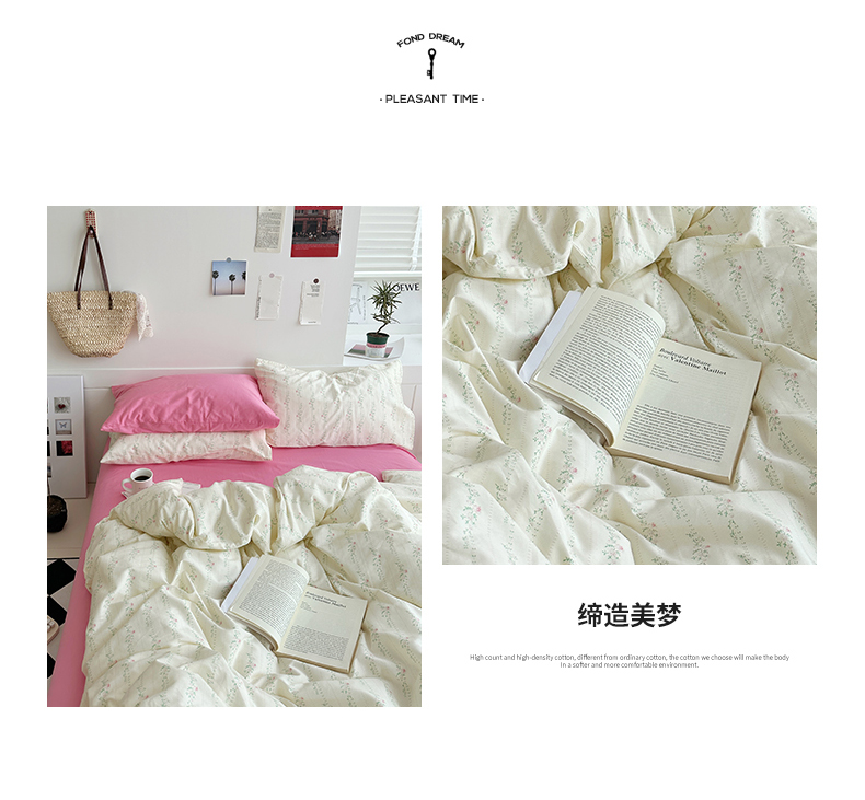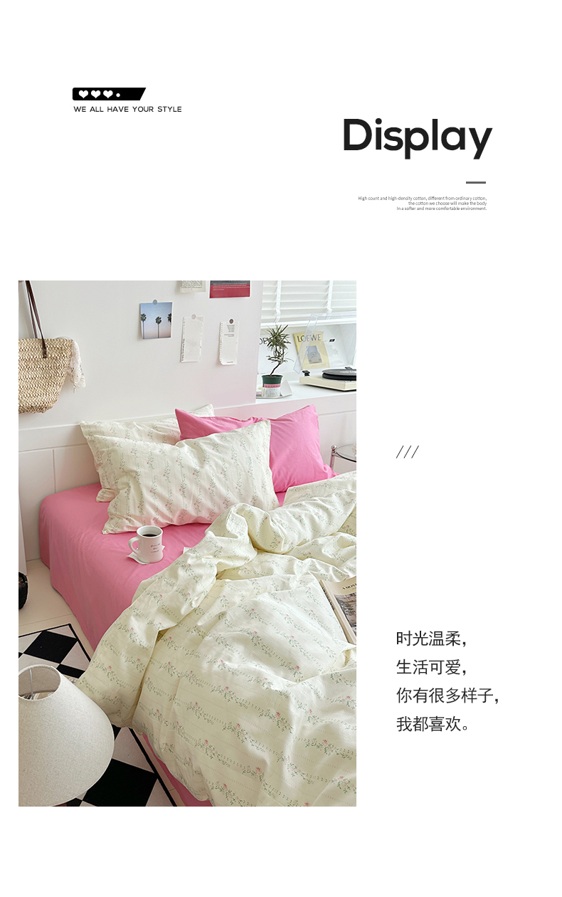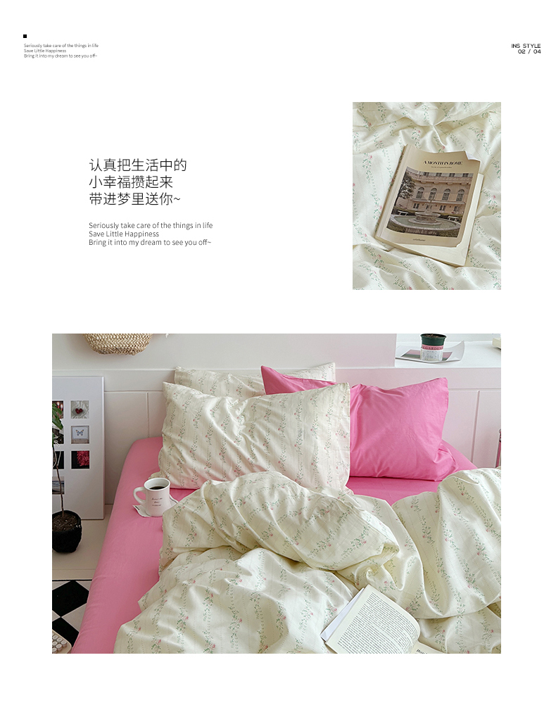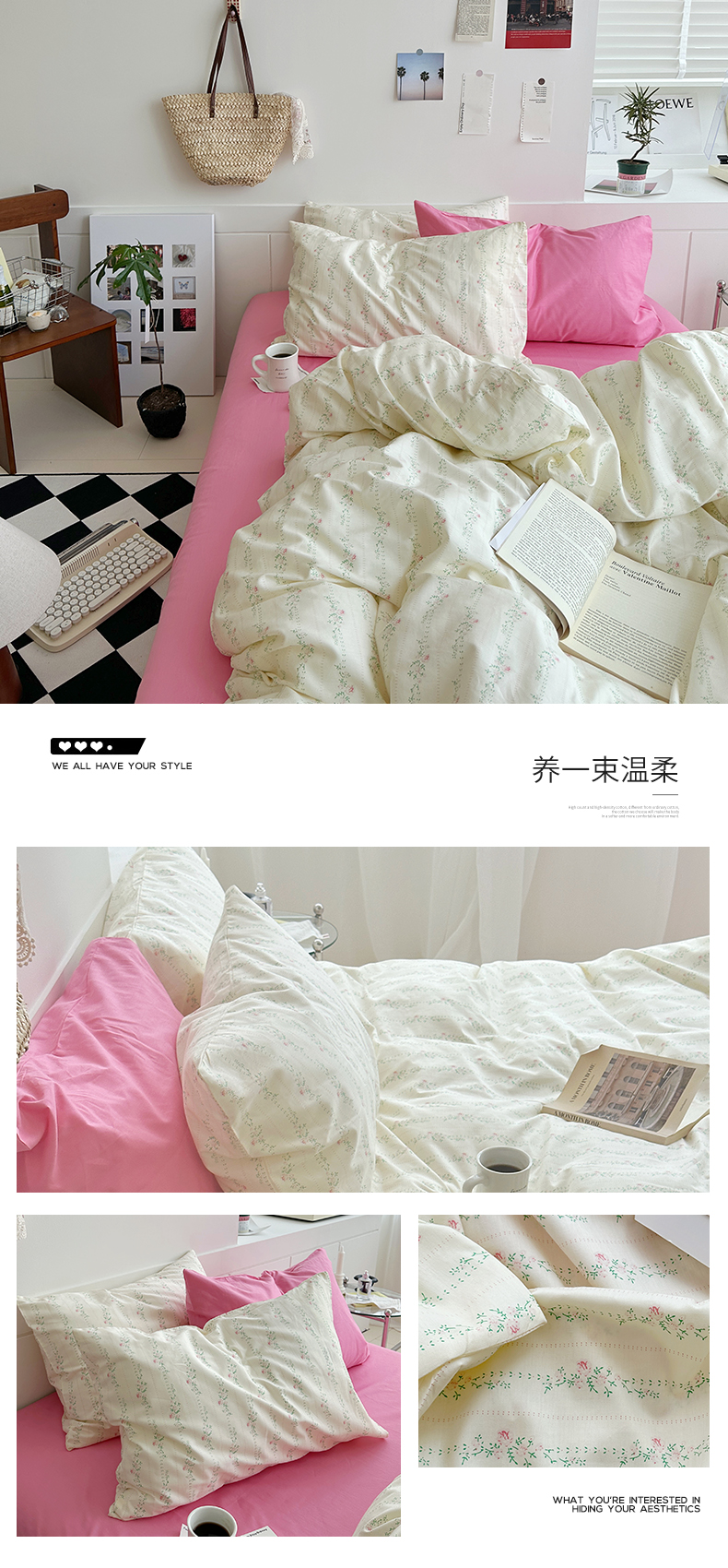 当前位置: 91家纺网 > 商品网购 > 床品套件 > 四件套 > 全棉普通四件套 > 2025新款纯棉小清新四件套小碎花学生三件套纯色床单印花枕套双人床笠 养一束温柔
