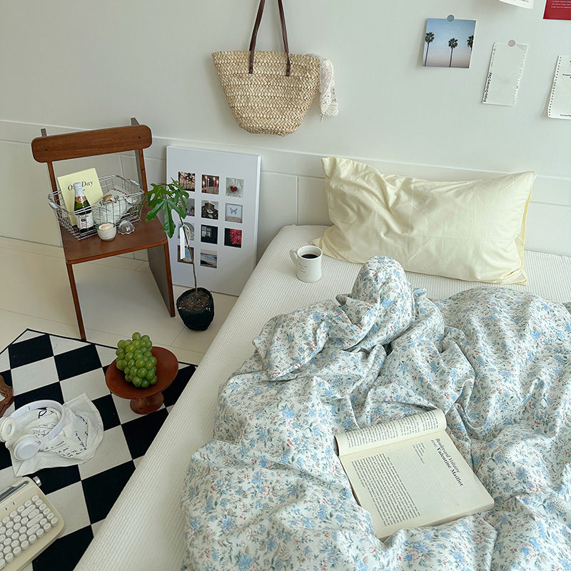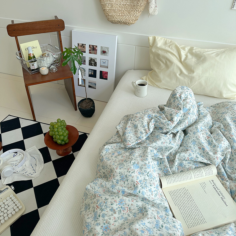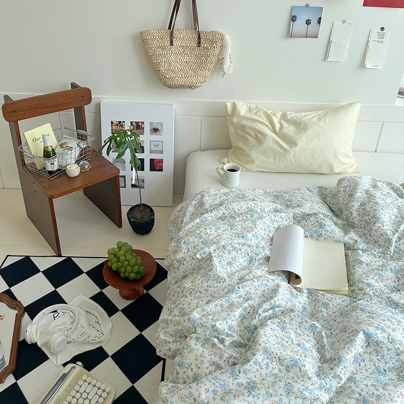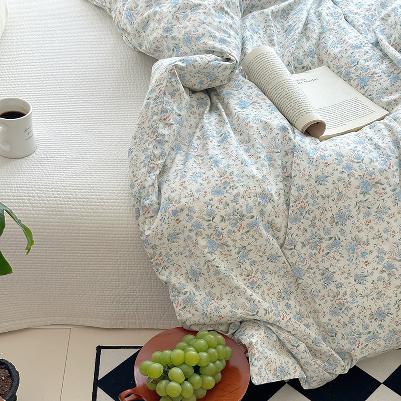 商品名称:2025新款纯棉小清新小碎花学生被套 蓝莓厚乳 象牙白