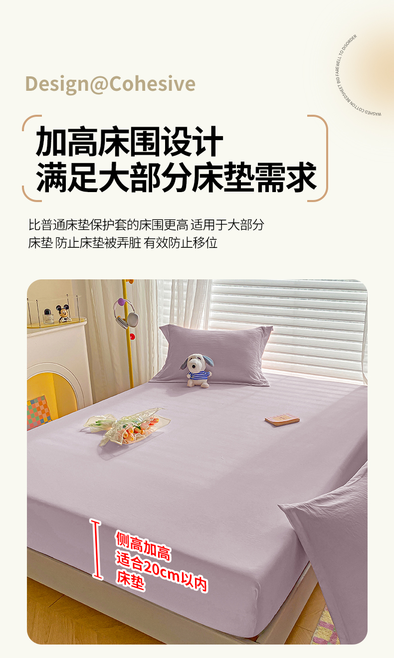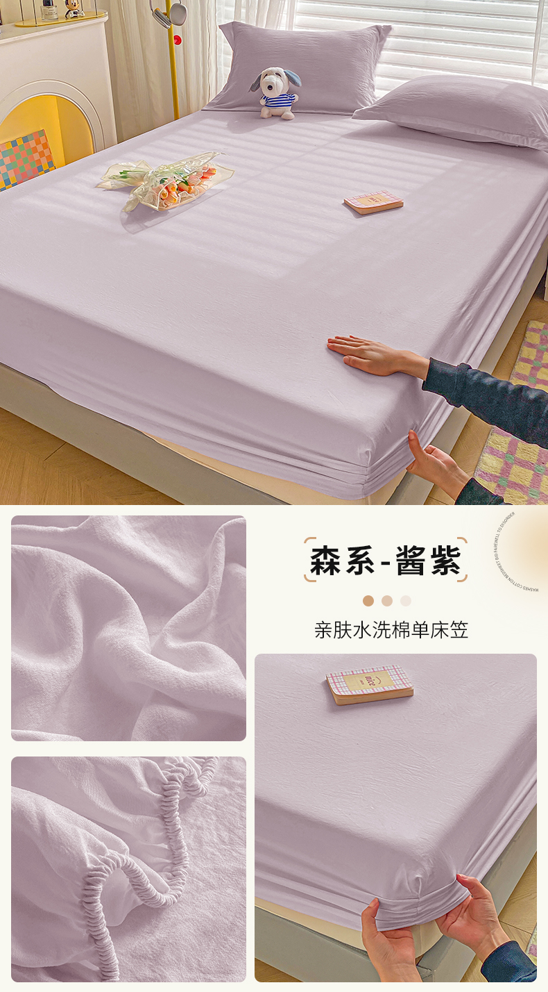 商品名称:恬澳家纺 2025新款森系水洗棉无印风单床笠 森系-酱紫
