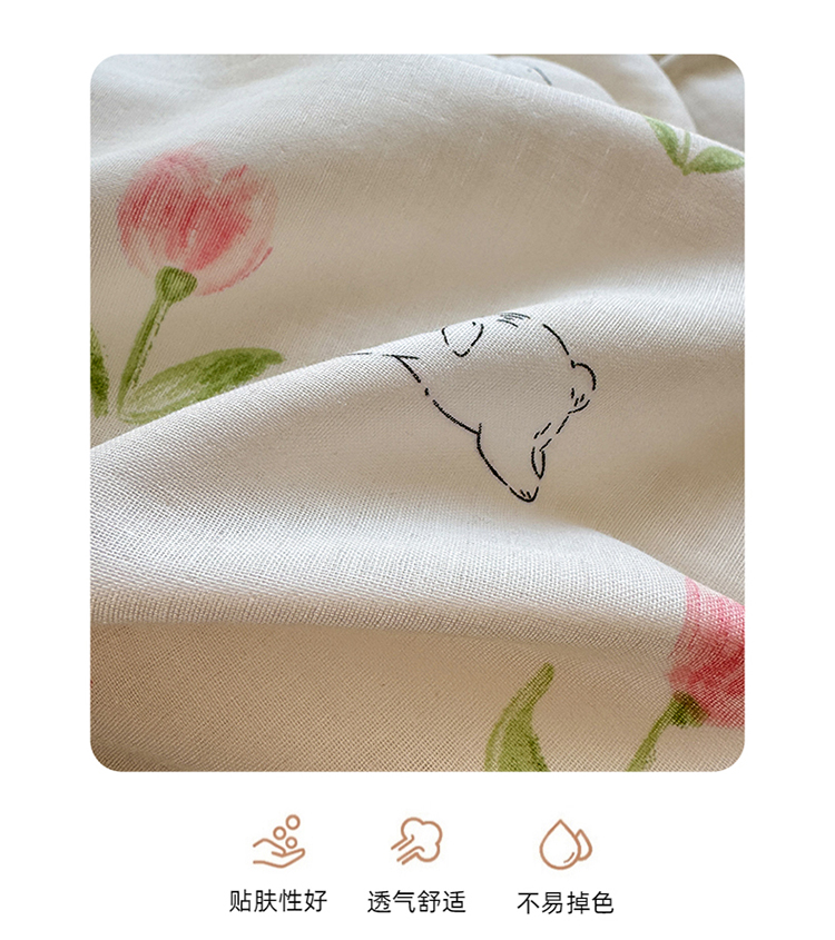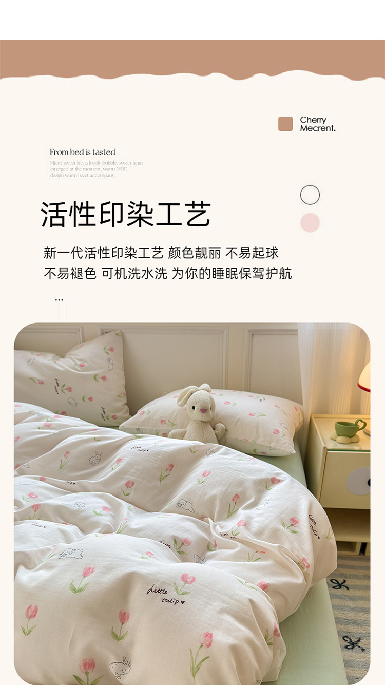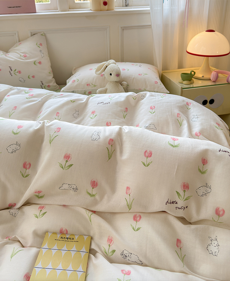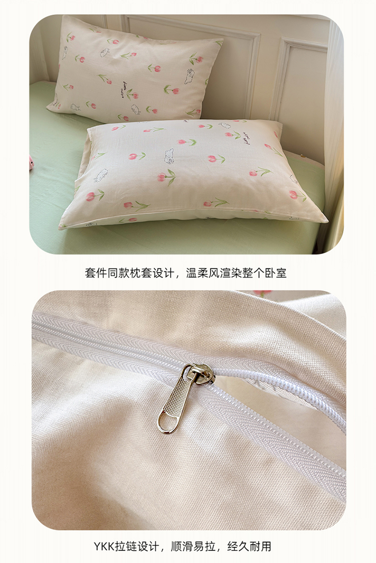 商品名称:2025新款全棉A类双层纱四件套系列-叠拍 郁金香小兔