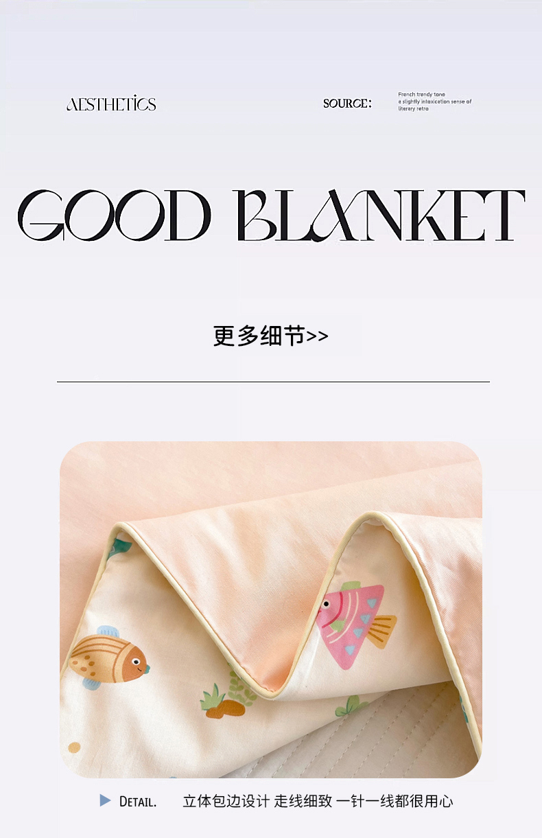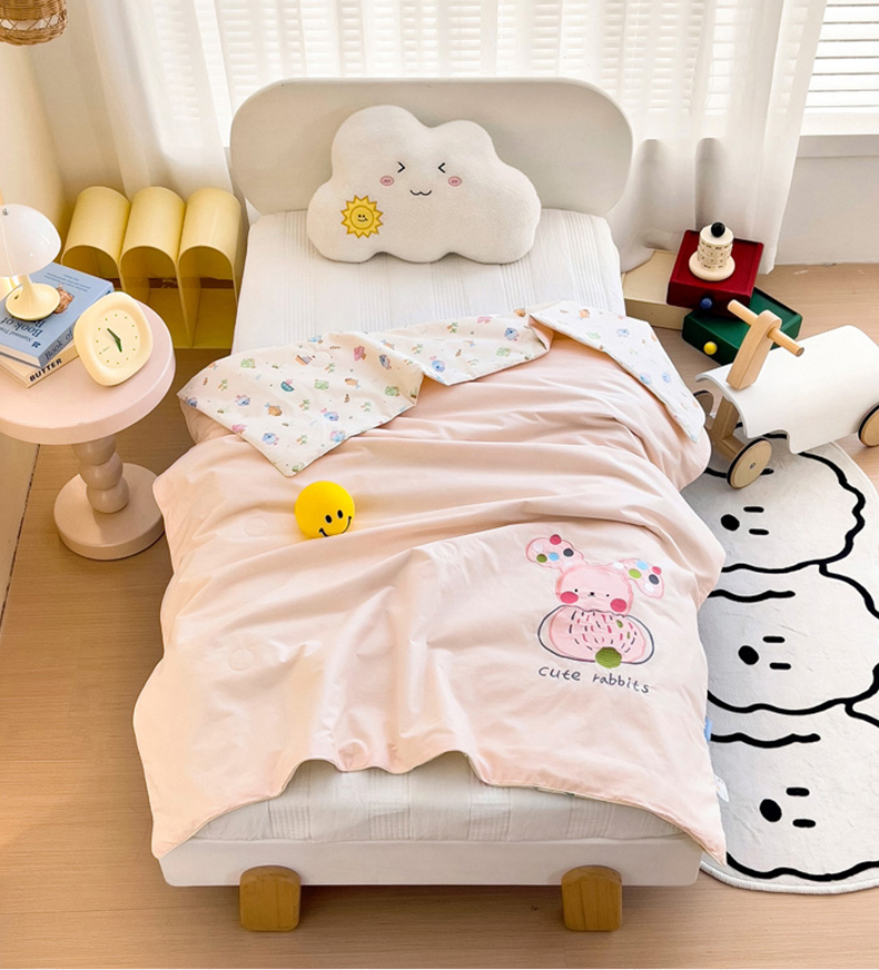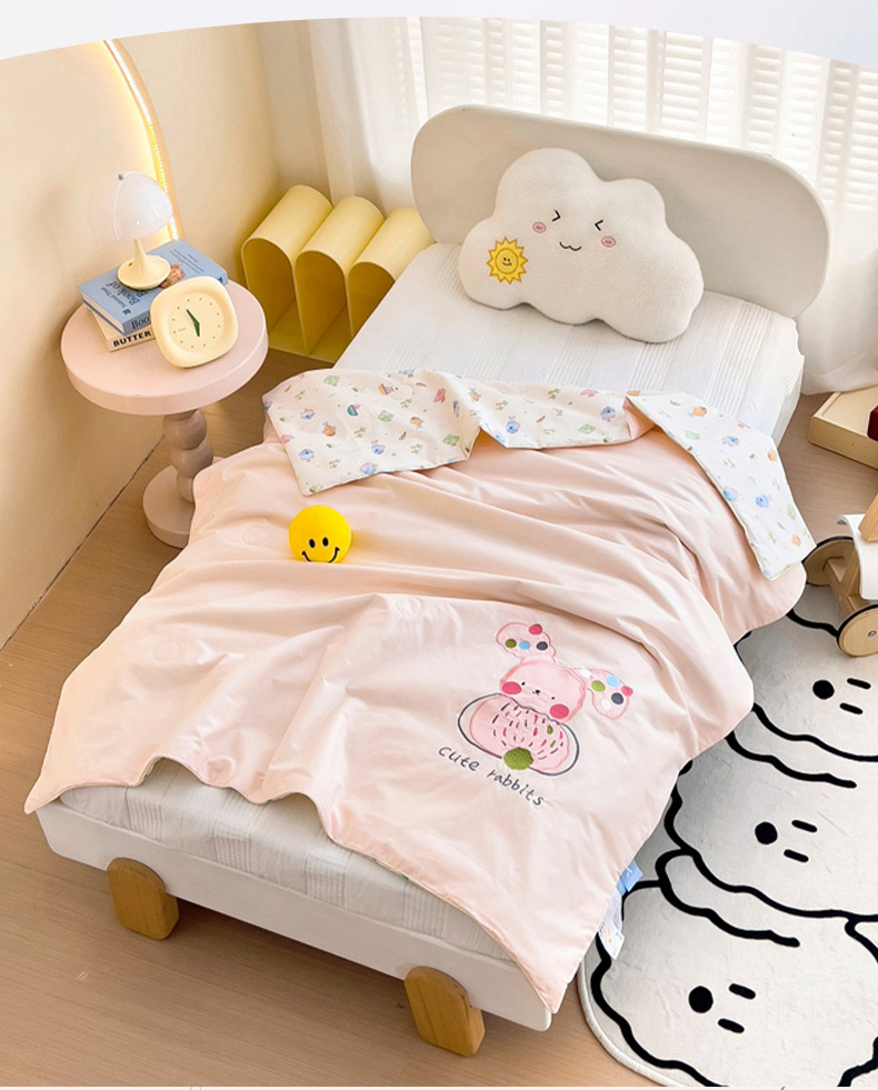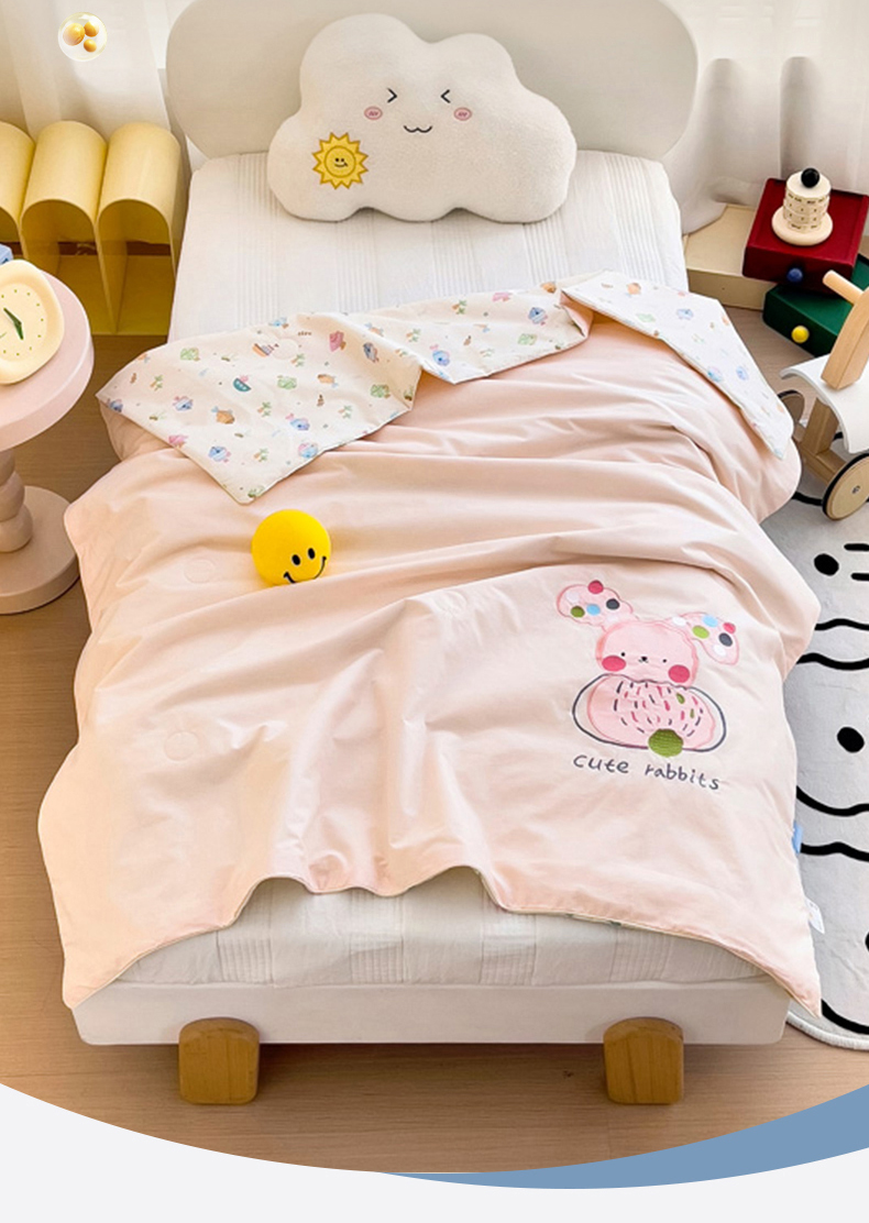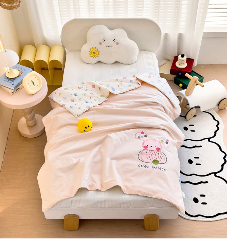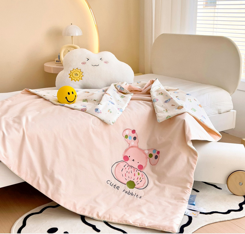 御棉坊 2025新款A类40支绣花款儿童滚边夏被 毛球小兔