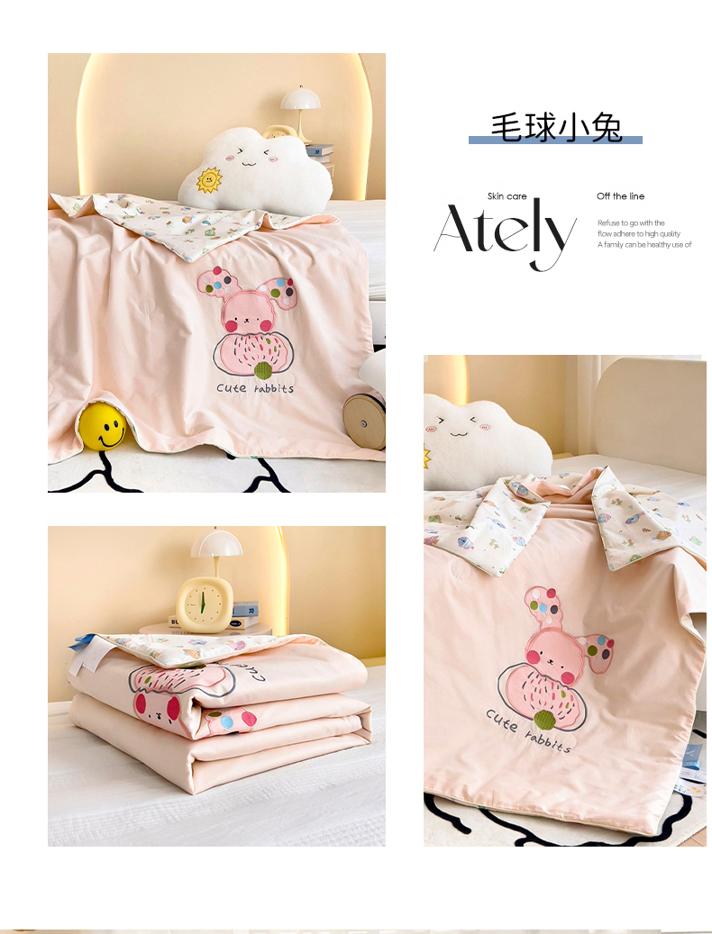 商品名称:御棉坊 2025新款A类40支绣花款儿童滚边夏被 毛球小兔