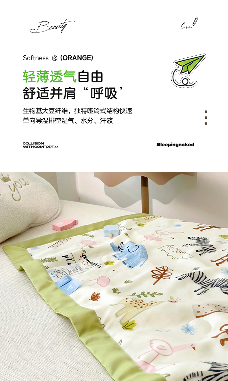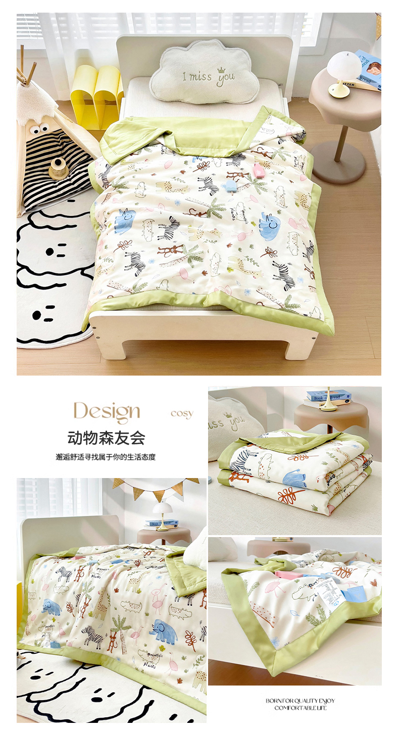 商品名称:御棉坊 2025新款A类50天丝活性印花大豆儿童夏被 动物森友会
