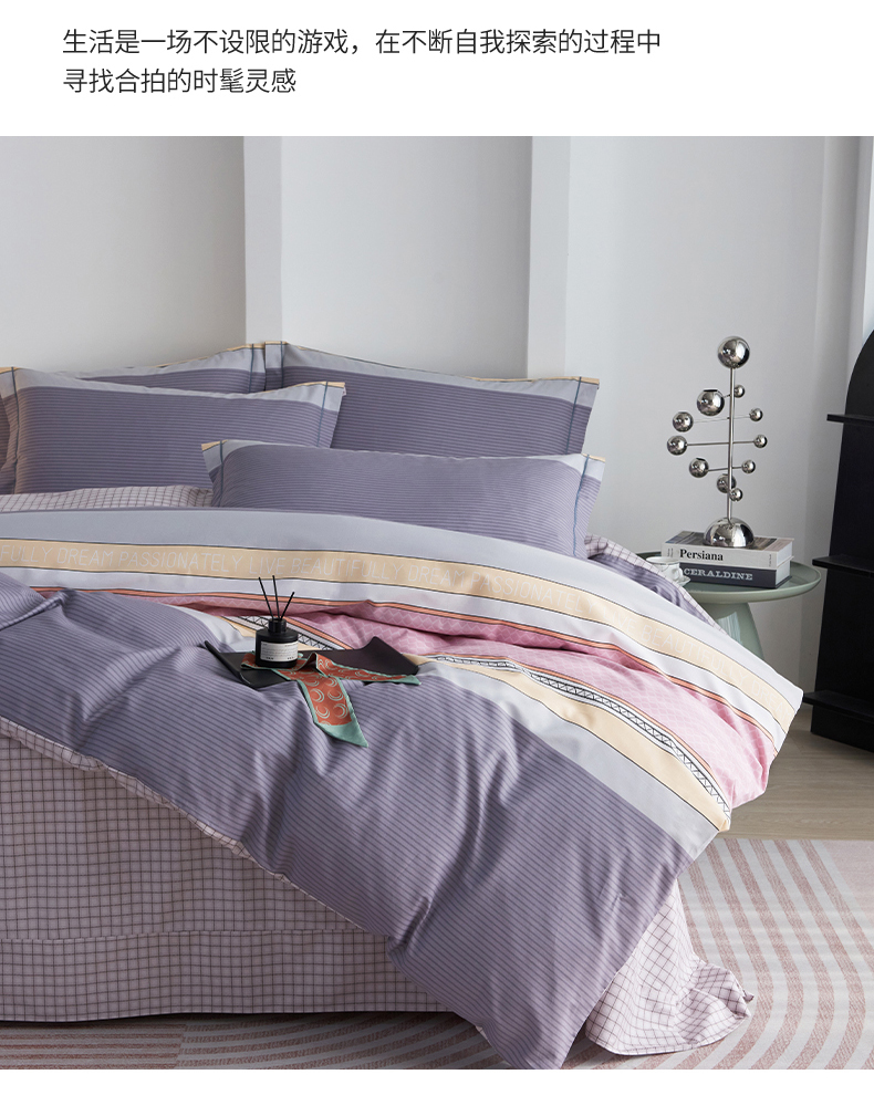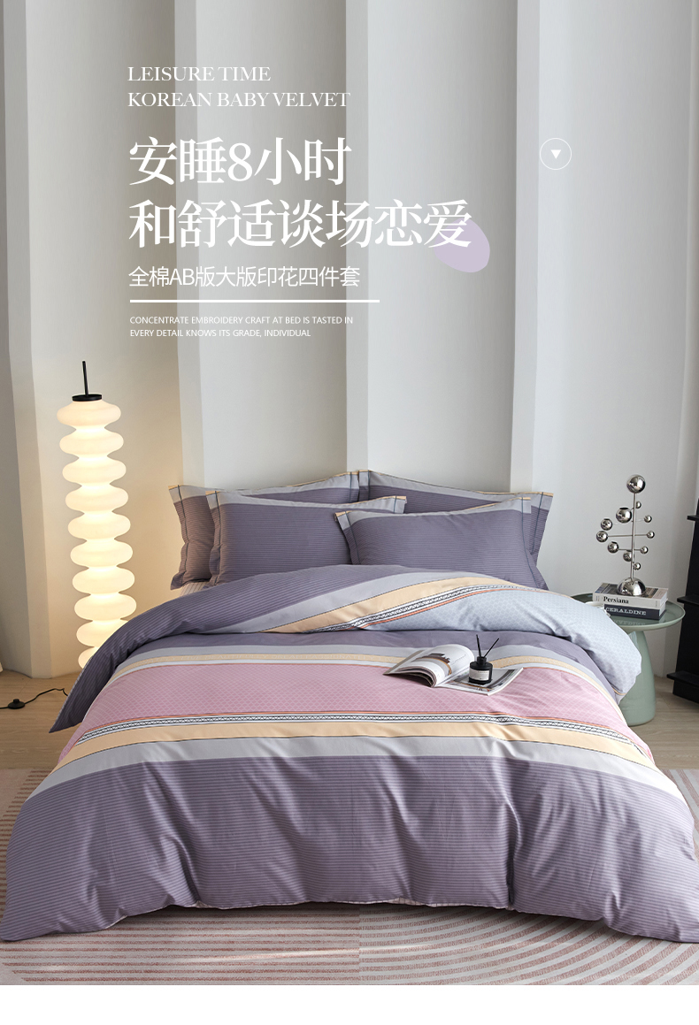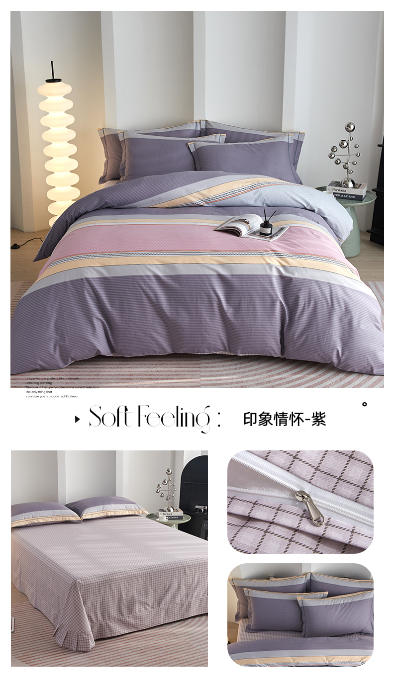 金纱玉纺家纺 2025新款全棉13376数码印花四件套(礼盒包装) 印象情怀-紫