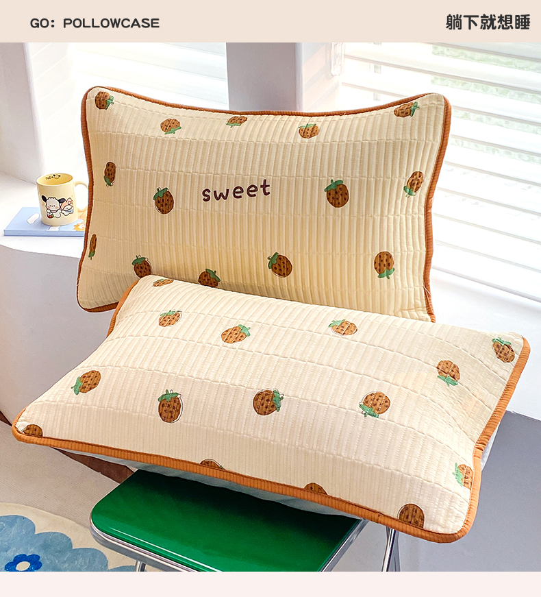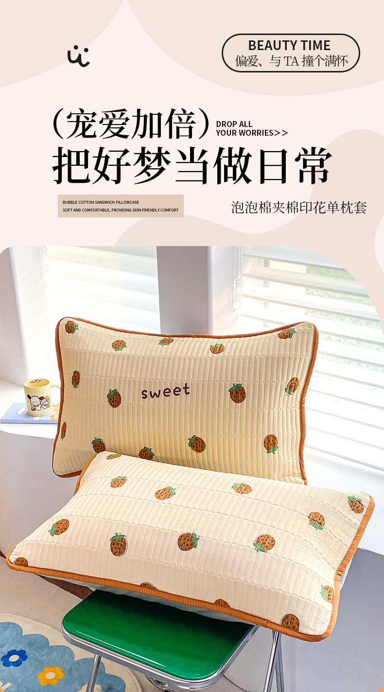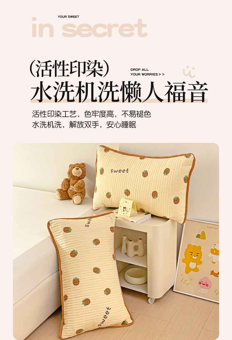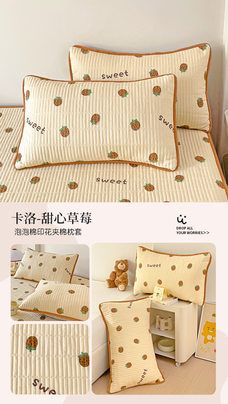 恬澳家纺 2025新款泡泡棉印花卡洛夹棉枕套 卡洛-甜心草莓