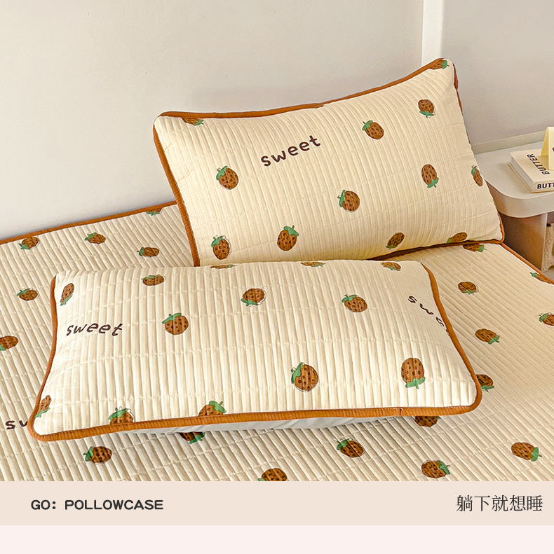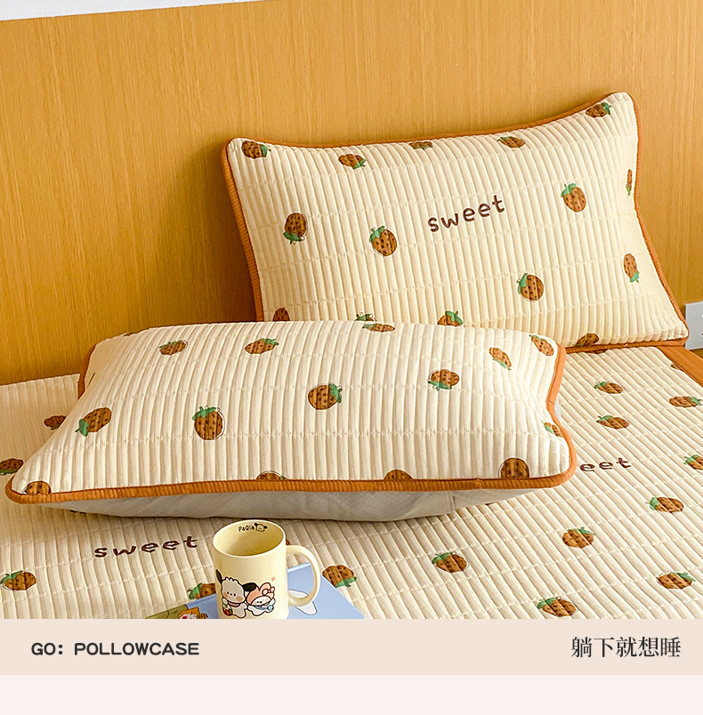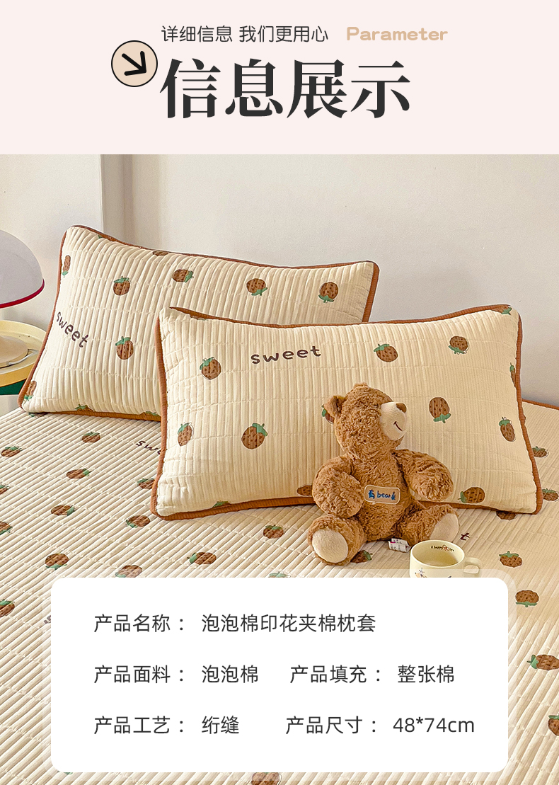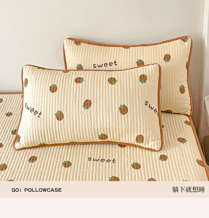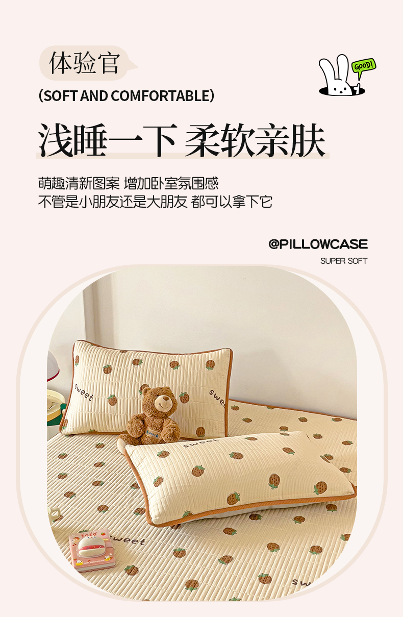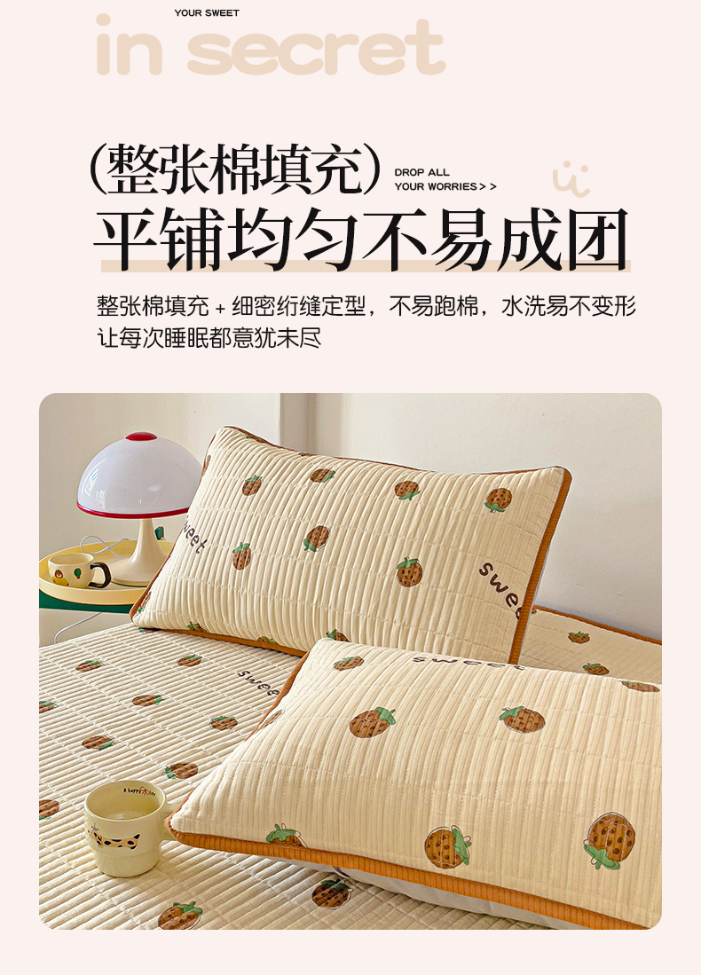 恬澳家纺 2025新款泡泡棉印花卡洛夹棉枕套 卡洛-甜心草莓