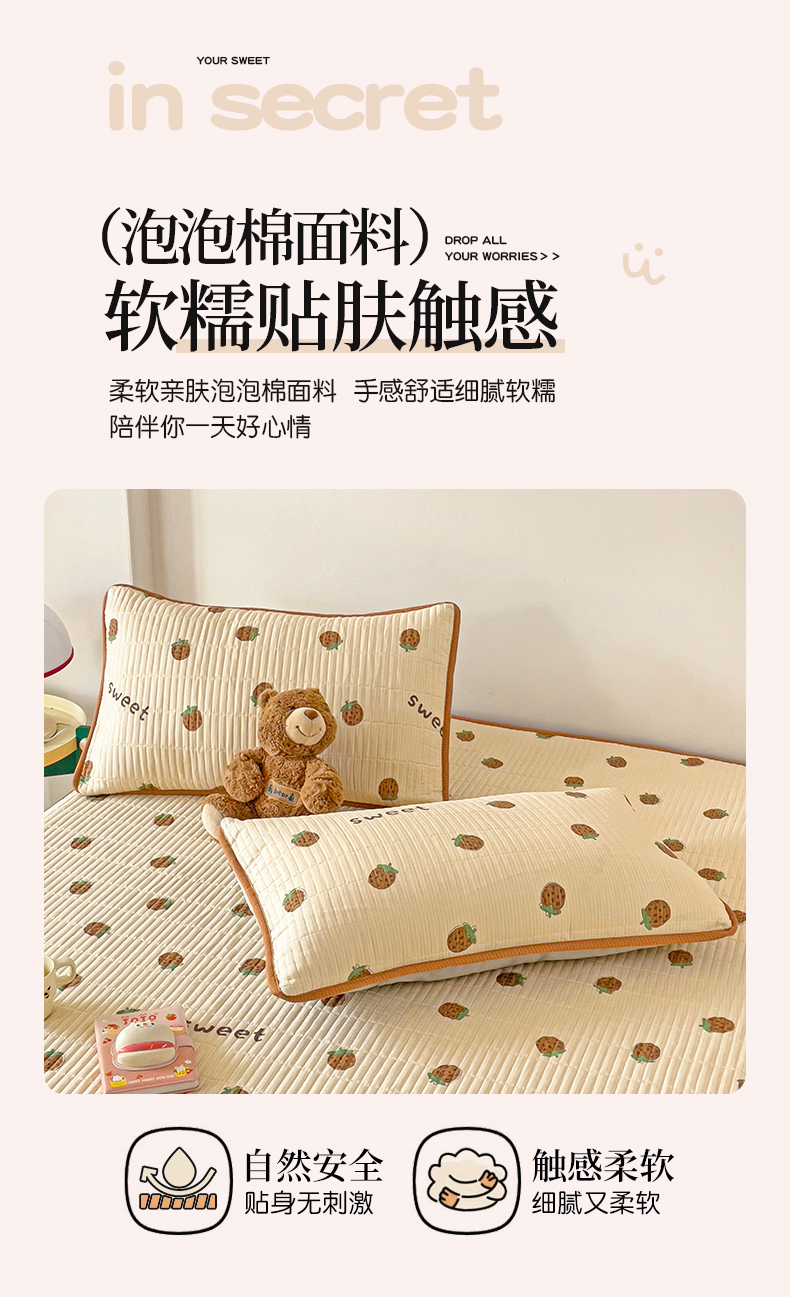 恬澳家纺 2025新款泡泡棉夹棉印花床护垫-场景二 卡洛-甜心草莓,卡洛-甜心草莓