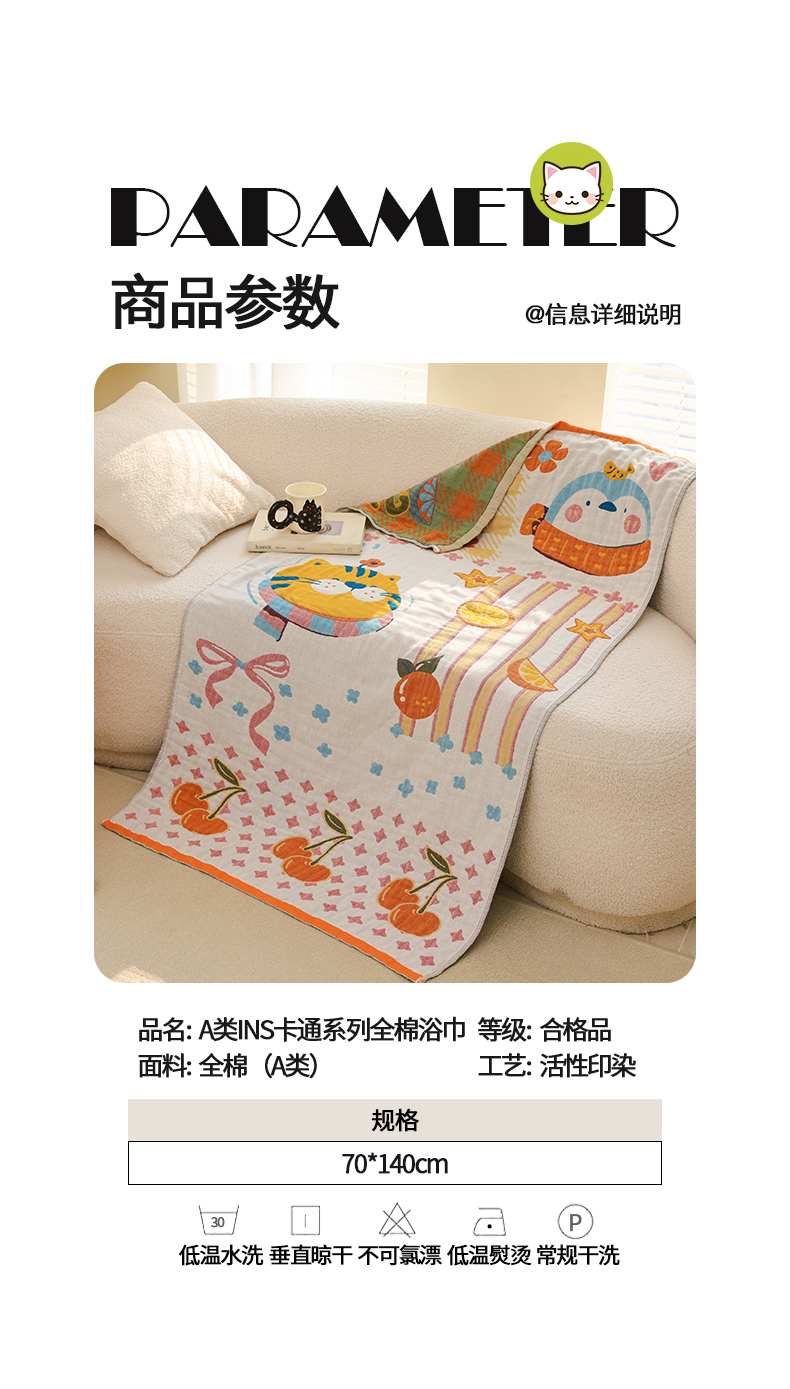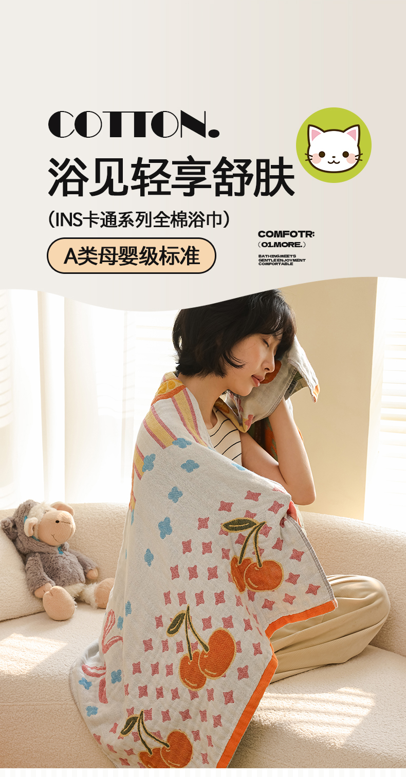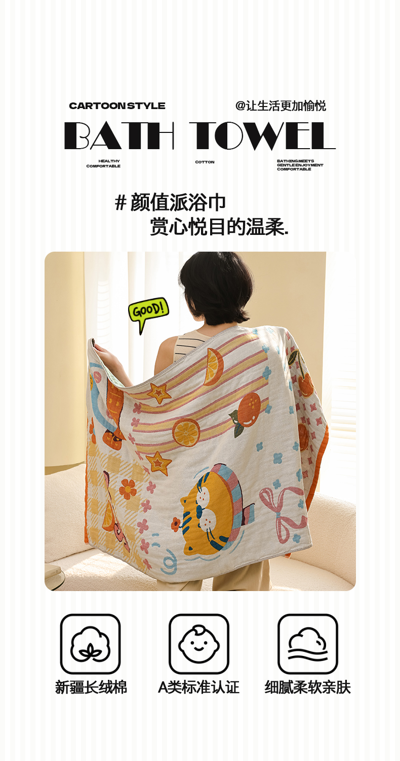 当前位置: 91家纺网 > 商品网购 > 居家日用 > 毛巾/浴巾/浴袍 > 浴巾 > 雯雨家纺 2025新款亲肤可爱全棉A类纱布浴巾 笑脸猫