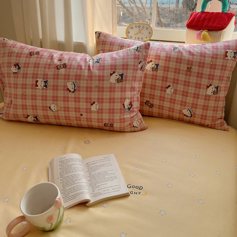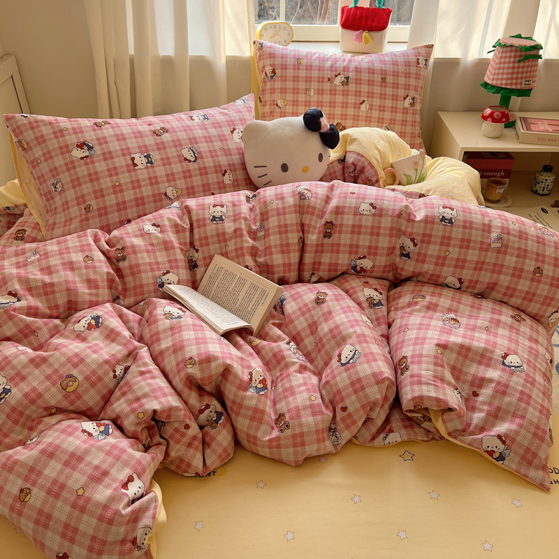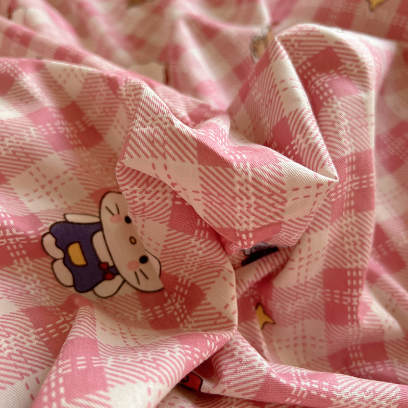 商品名称:桃喜 2025新款春夏全棉卡通13070小清新四件套 粉格小猫