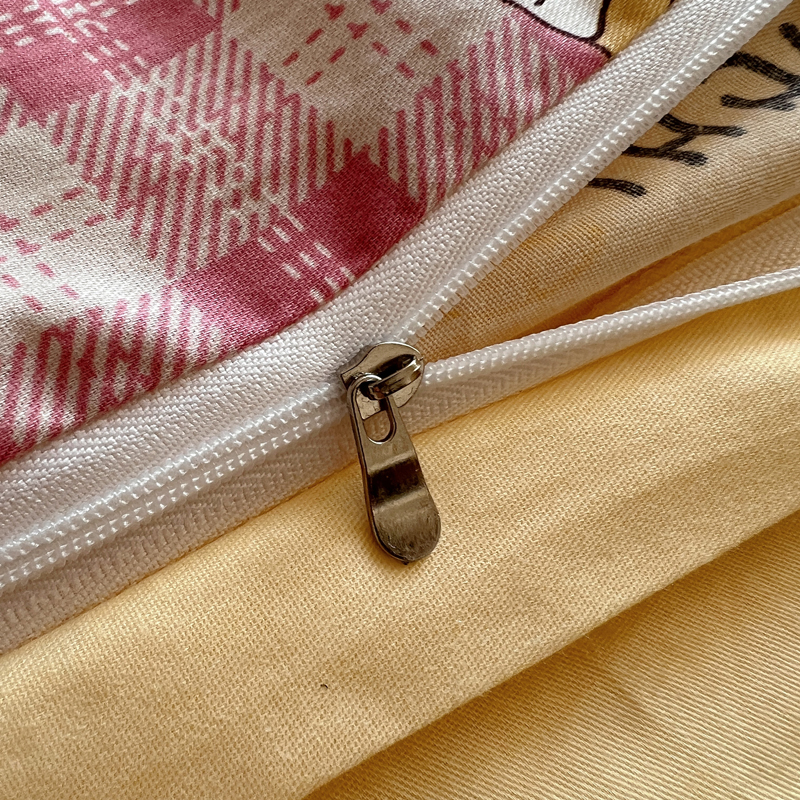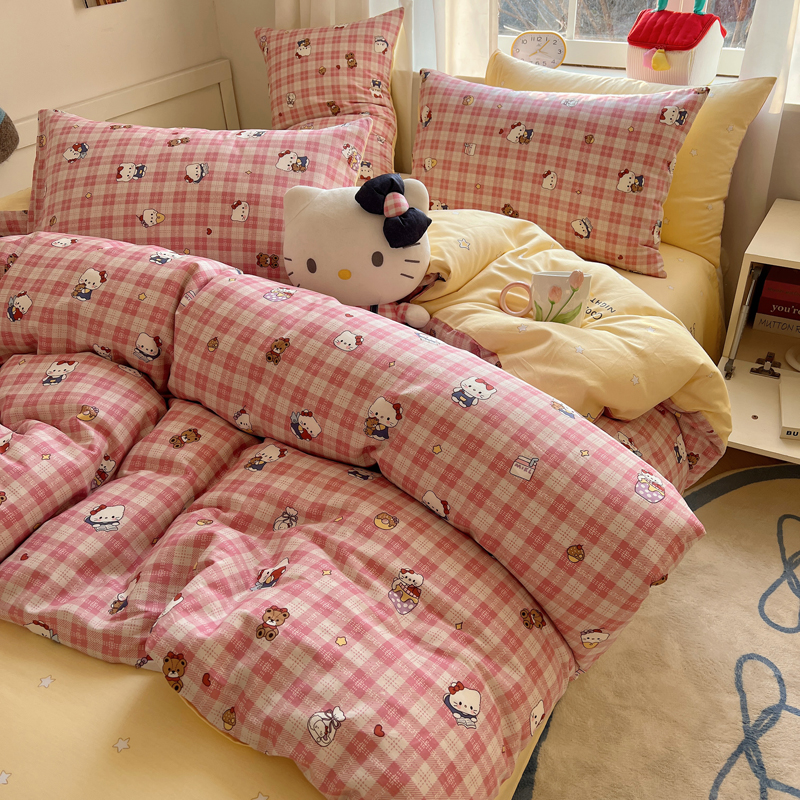 (总)桃喜 2025新款亲肤卡通系列四件套,黄格小熊,拼接甜心猫