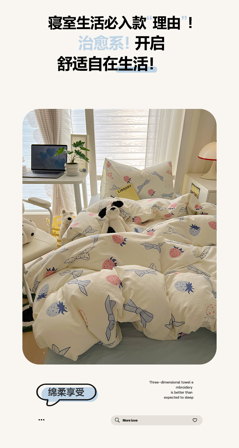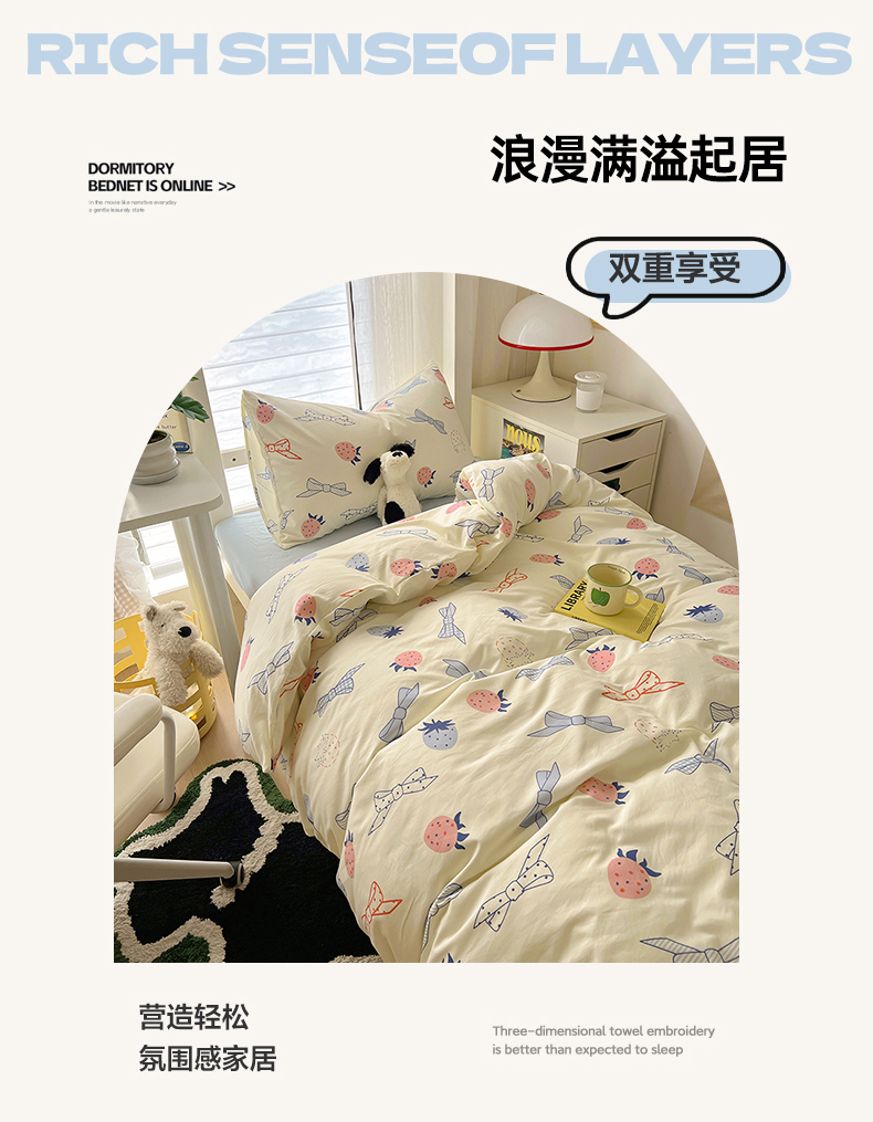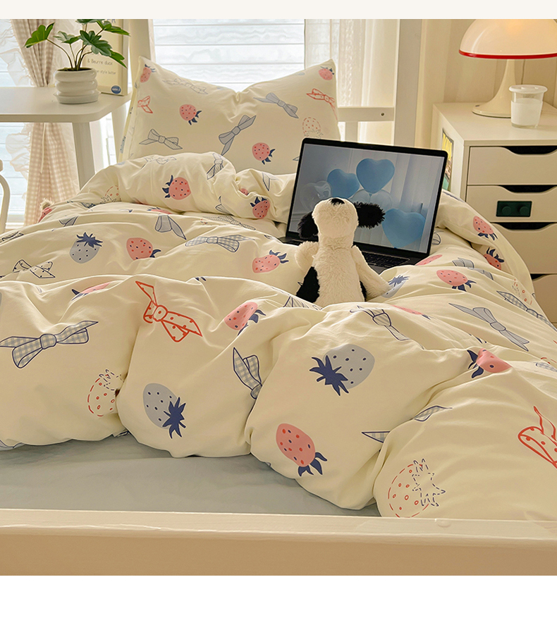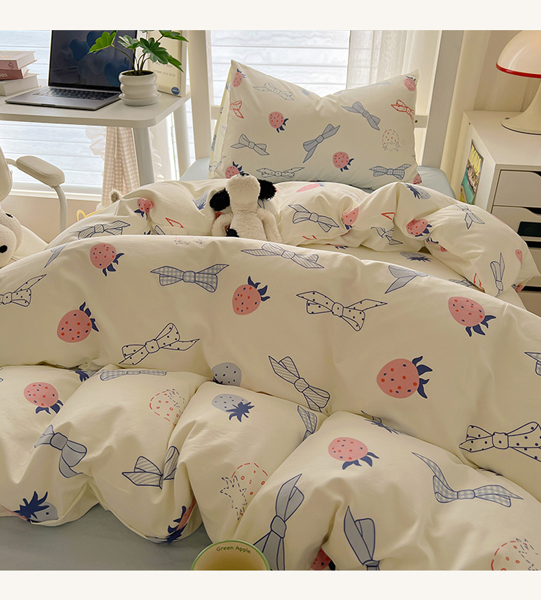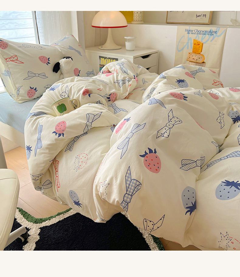 当前位置: 91家纺网 > 商品网购 > 床品套件 > 四件套 > 水洗棉四件套 > 阿曼达 2025新款印花水洗m学生床单人四件套 草莓蝴蝶结