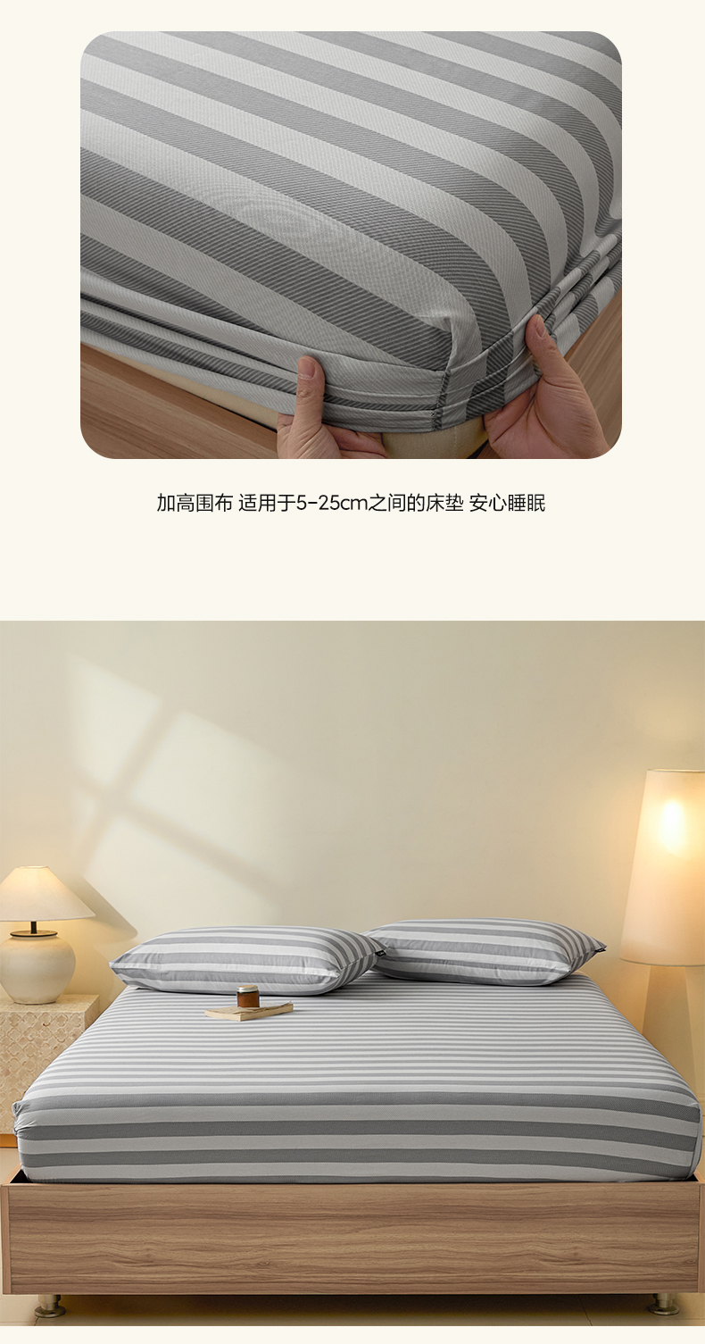 • 91家纺网 家纺一手货源 找家纺 涵宸家纺 2025新款全棉印花良品系列床笠 床笠-多哈-灰
