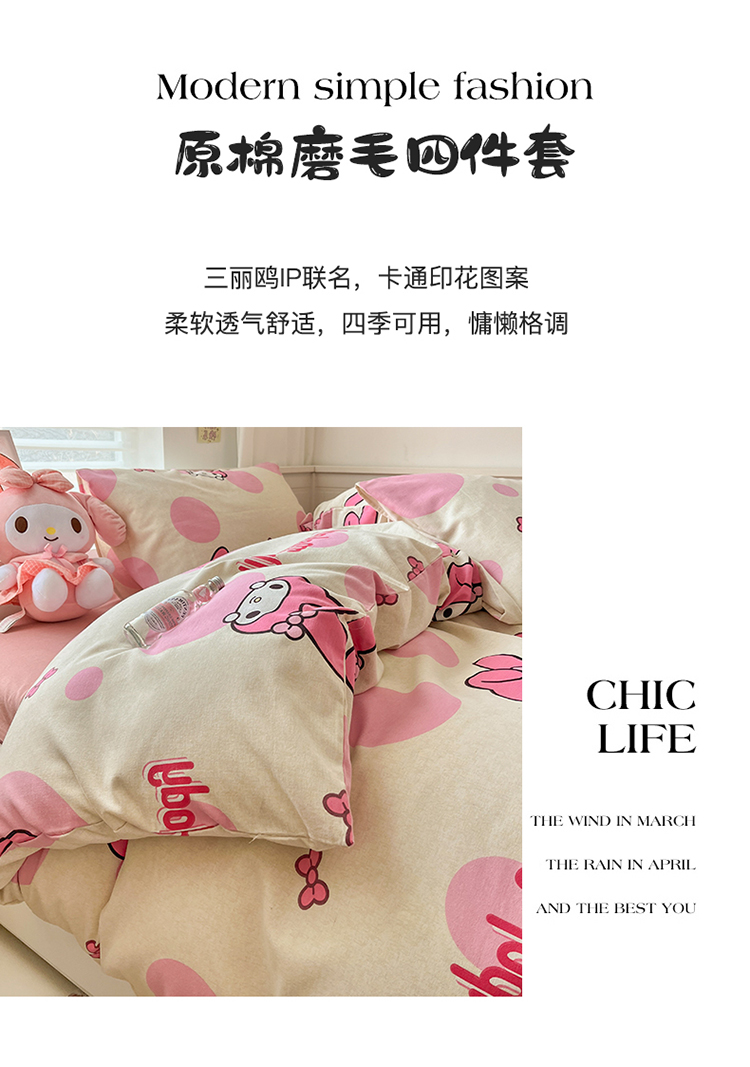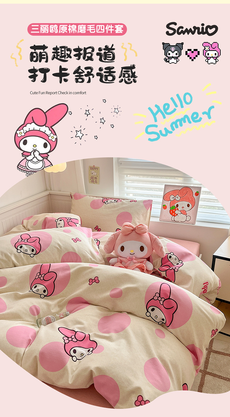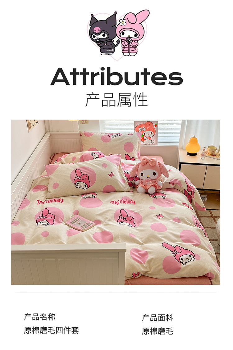 当前位置: 91家纺网 > 商品网购 > 床品套件 > 四件套 > 全棉普通四件套 > (买家秀 爆款花色不断货)A类母婴级纯棉磨毛四件套简约纯棉全棉磨毛四件套三丽鸥磨毛四件套纯棉全棉原棉 波点美乐蒂