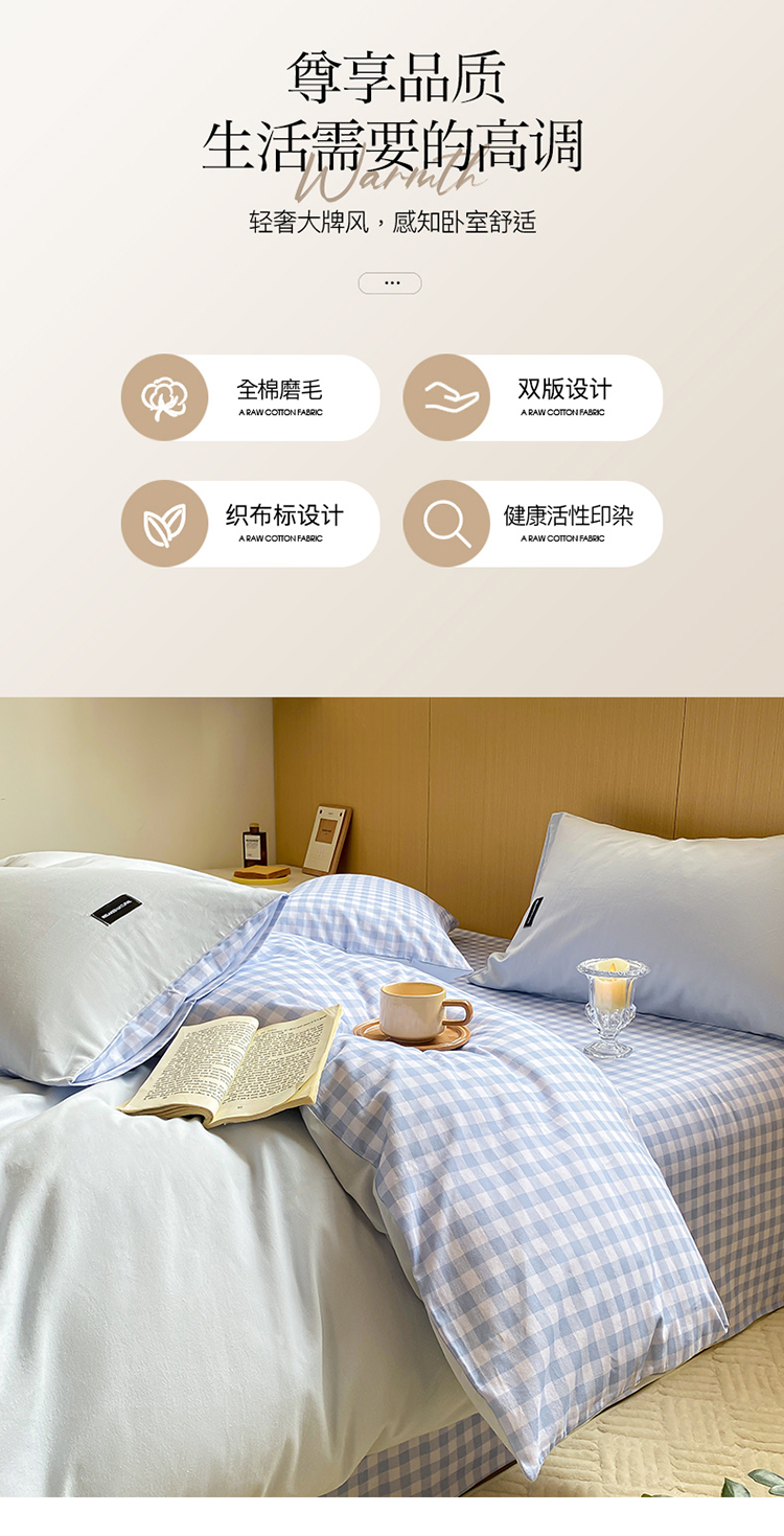 当前位置: 91家纺网 > 商品网购 > 床品套件 > 四件套 > 全棉普通四件套 > (买家秀 爆款花色不断货)A类母婴级纯棉磨毛四件套简约纯棉全棉磨毛四件套纯棉全棉四件套无印风-场景2 简兮-兰