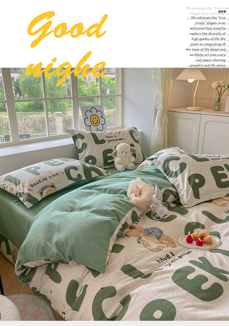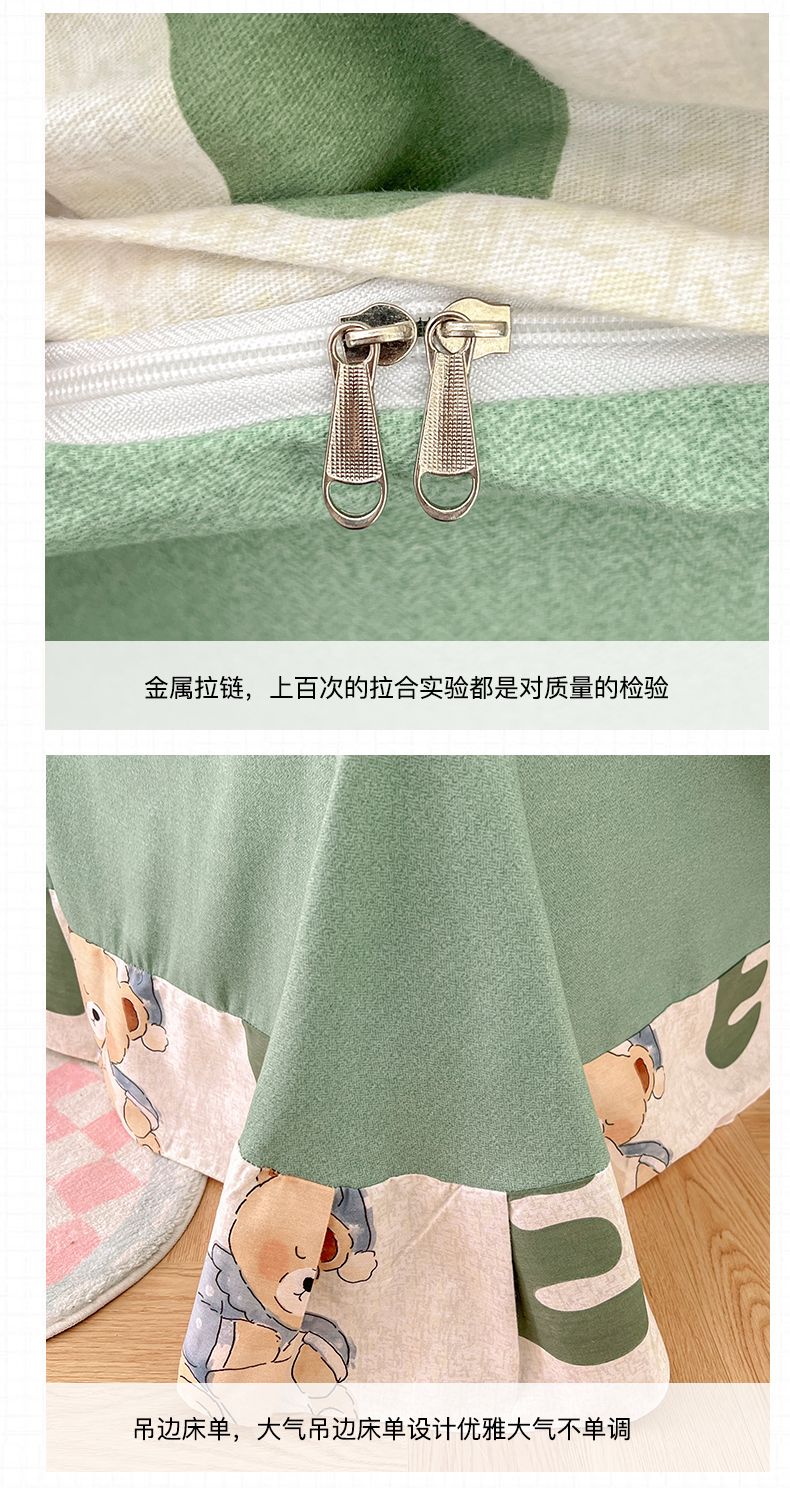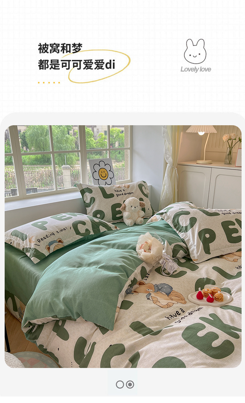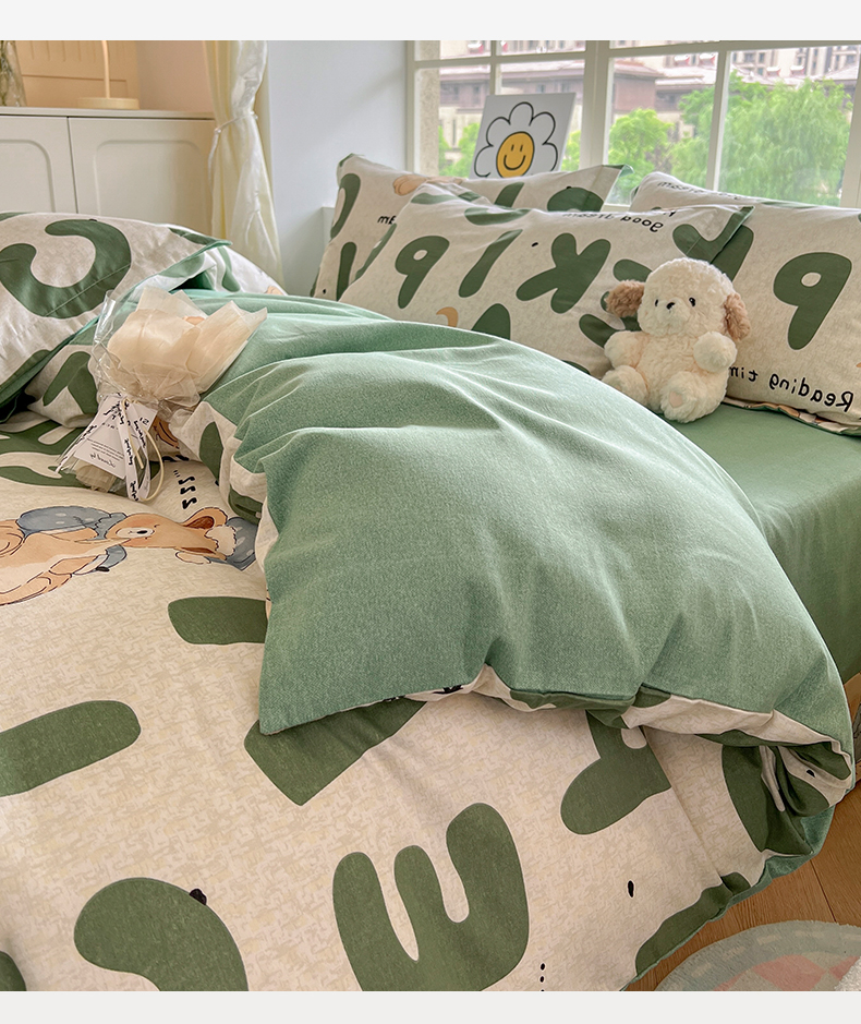 当前位置: 91家纺网 > 商品网购 > 床品套件 > 四件套 > 磨毛活性四件套 > (买家秀 爆款花色不断货)A类母婴级纯棉磨毛四件套简约可爱风纯棉四件套全棉四件套磨毛三件套 梦游记-绿
