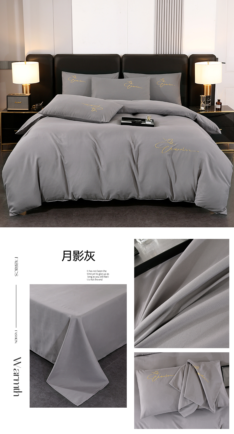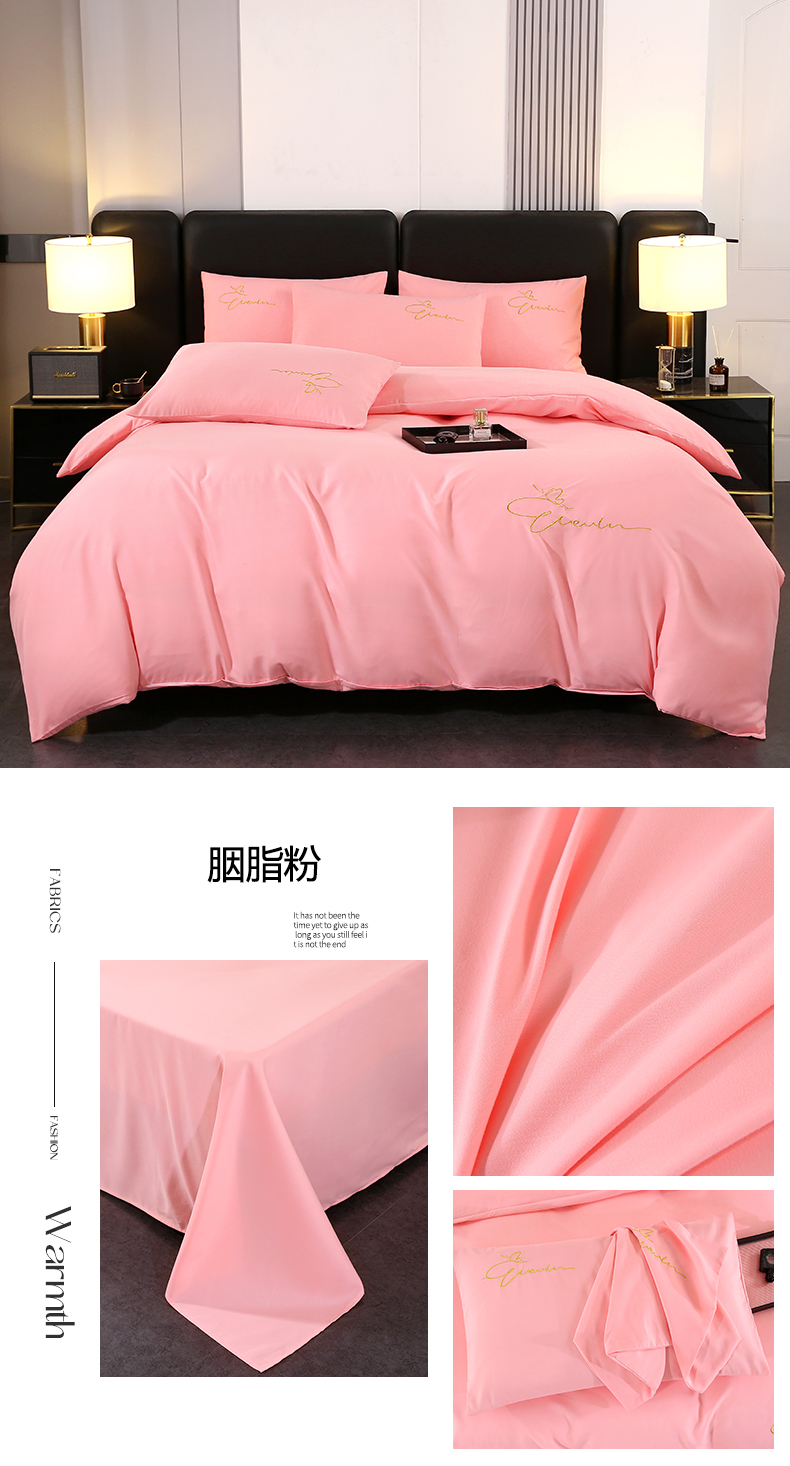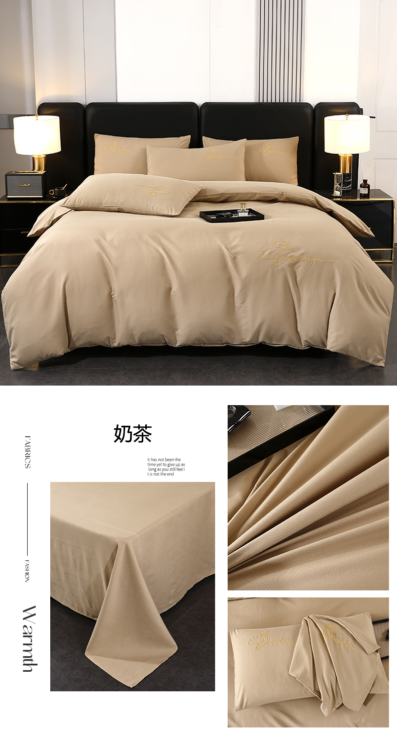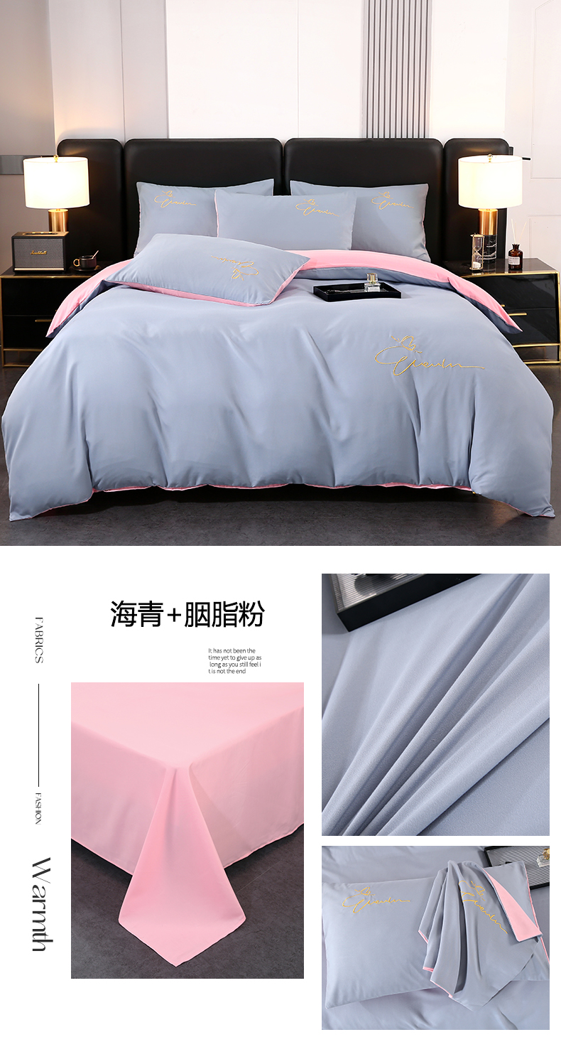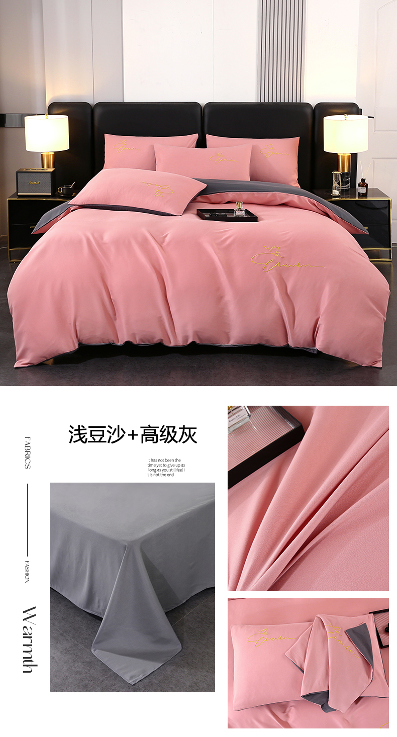(总)(买家秀 爆款花色不断货)A类母婴级纯棉磨毛四件套磨毛刺绣四件套全棉磨毛四件套纯色双拼四件套-四件套