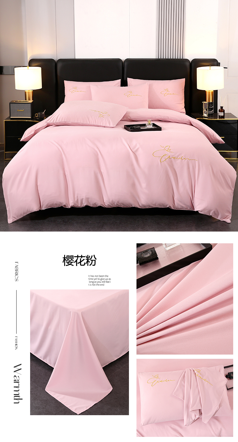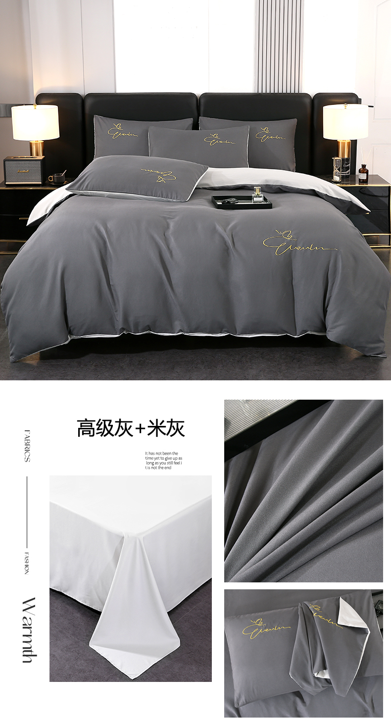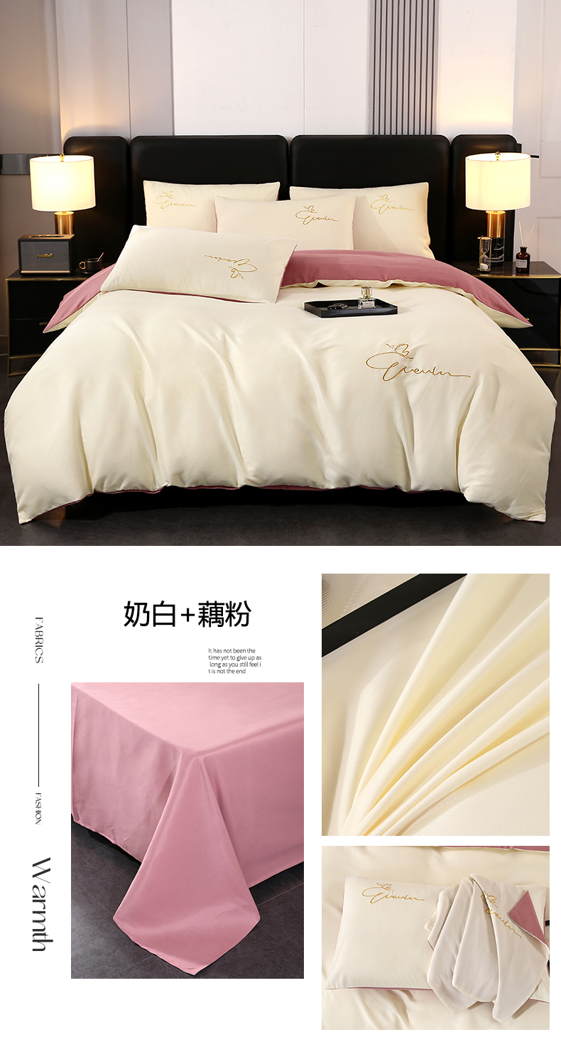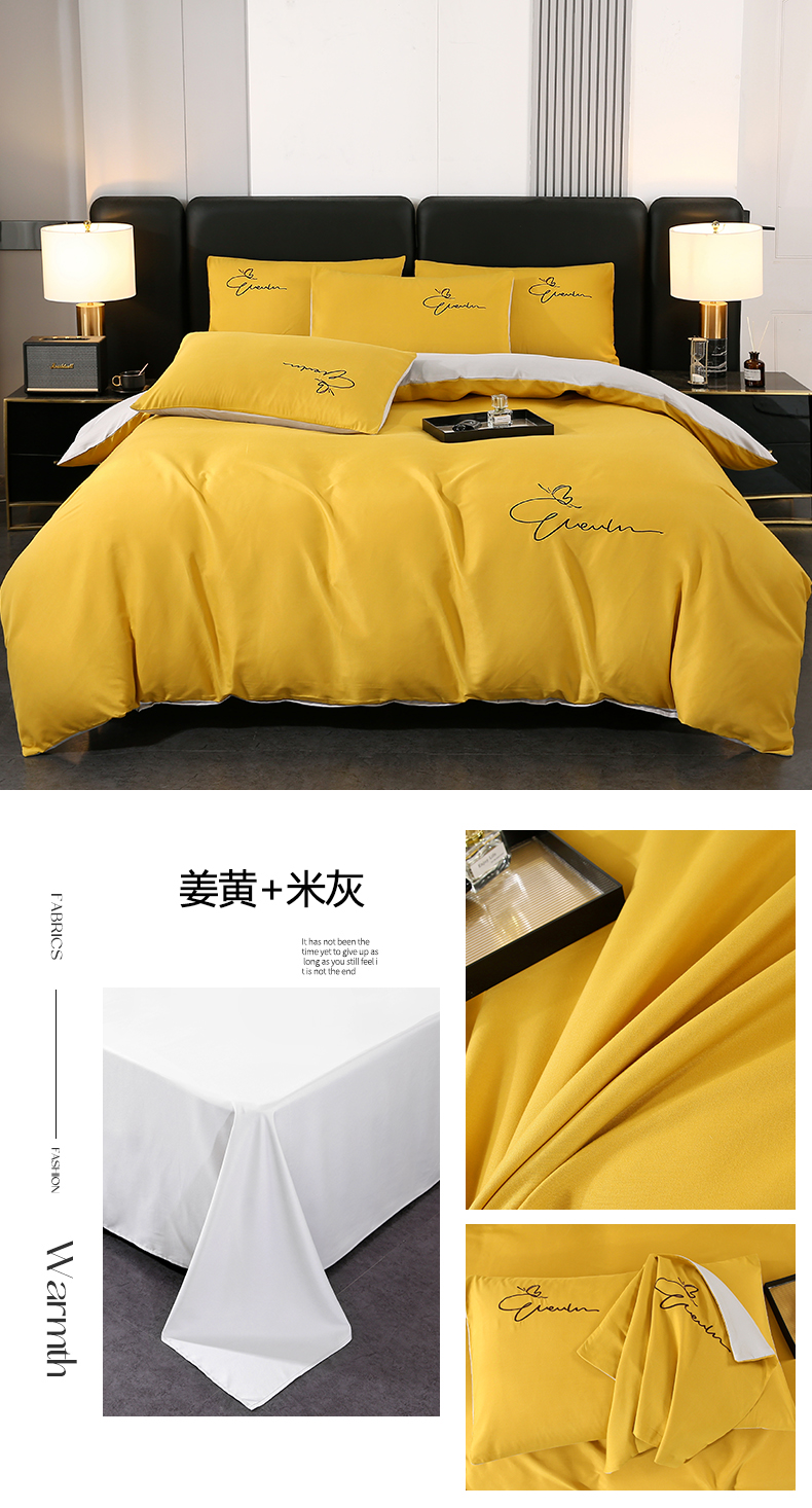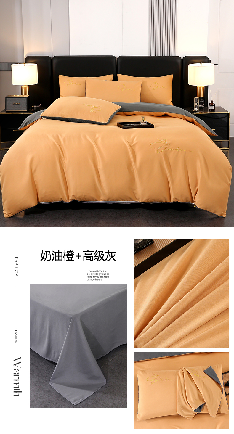 (总)(买家秀 爆款花色不断货)A类母婴级纯棉磨毛四件套磨毛刺绣四件套全棉磨毛四件套纯色双拼四件套-四件套