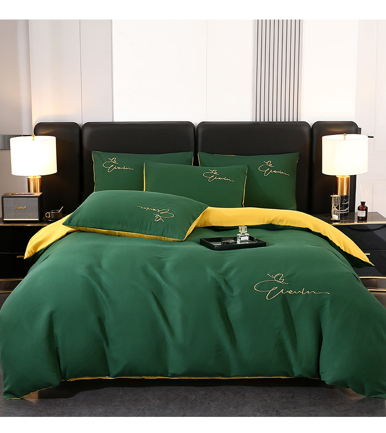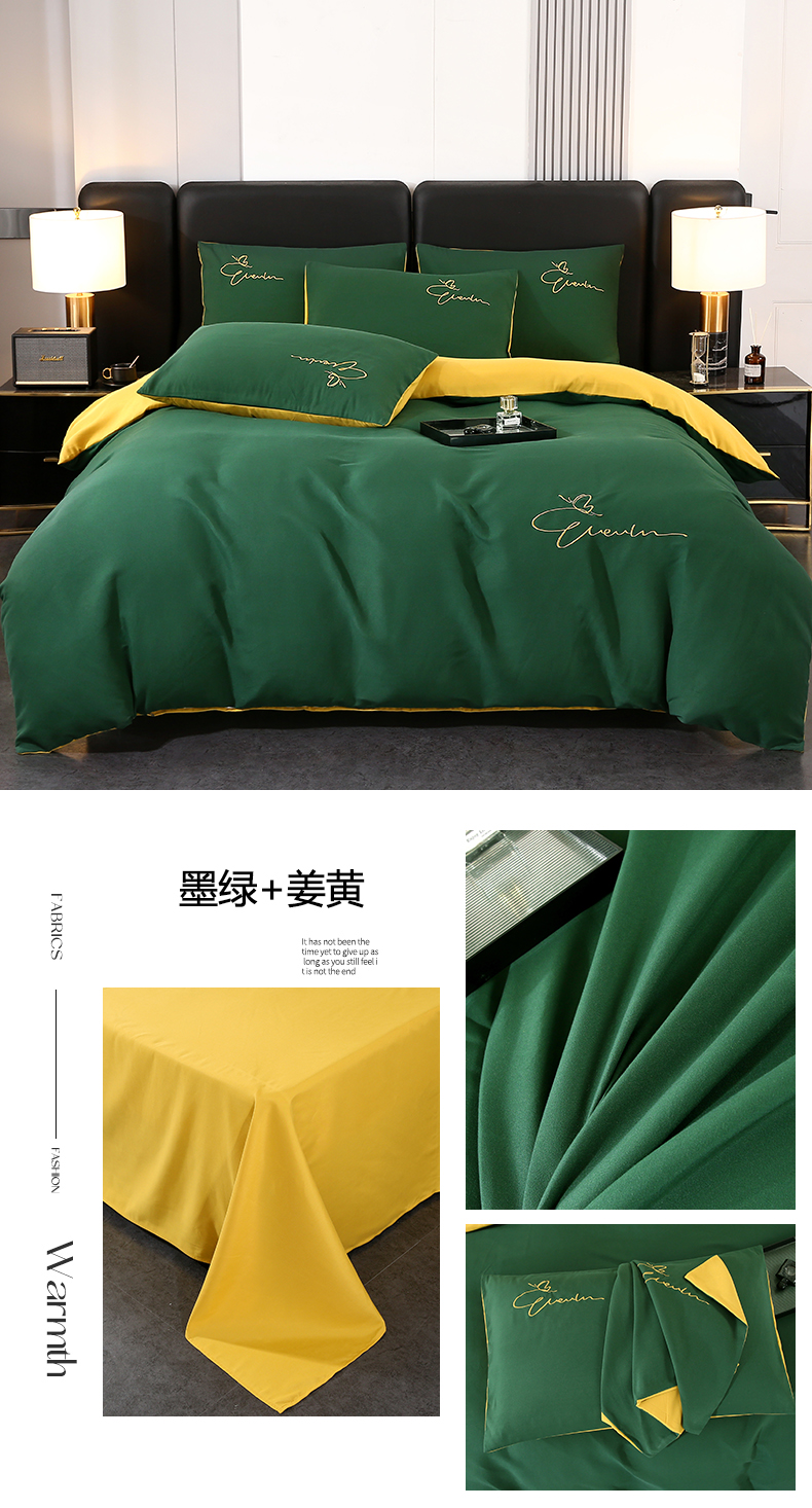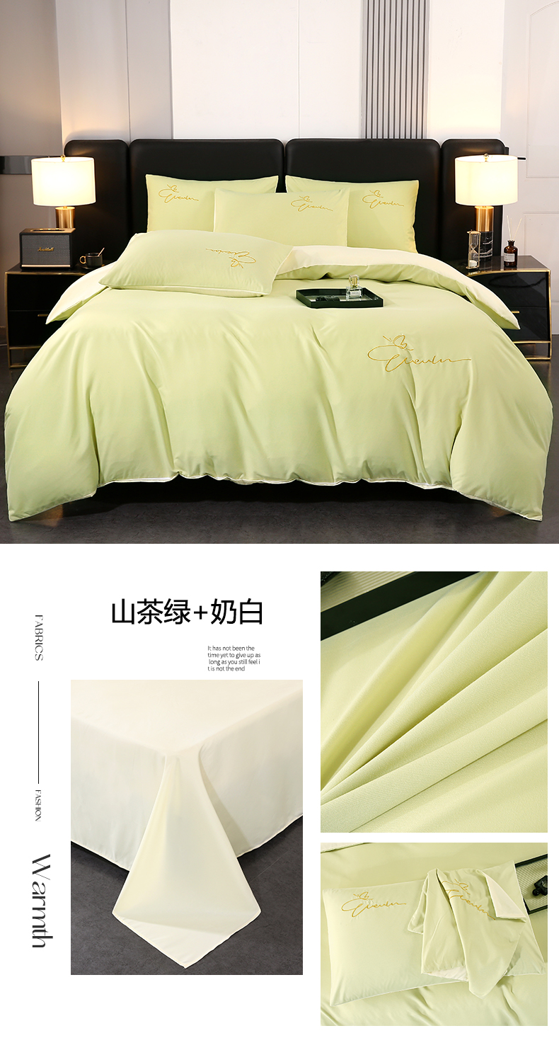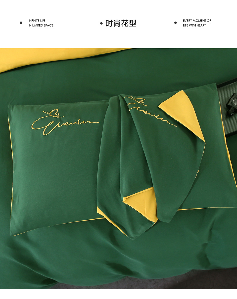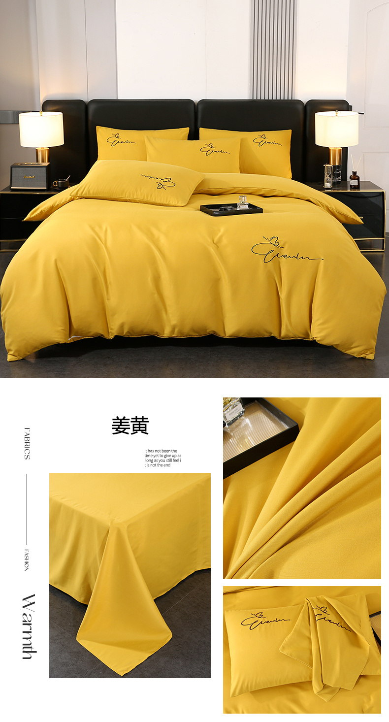 (总)(买家秀 爆款花色不断货)A类母婴级纯棉磨毛四件套磨毛刺绣四件套全棉磨毛四件套纯色双拼四件套-四件套