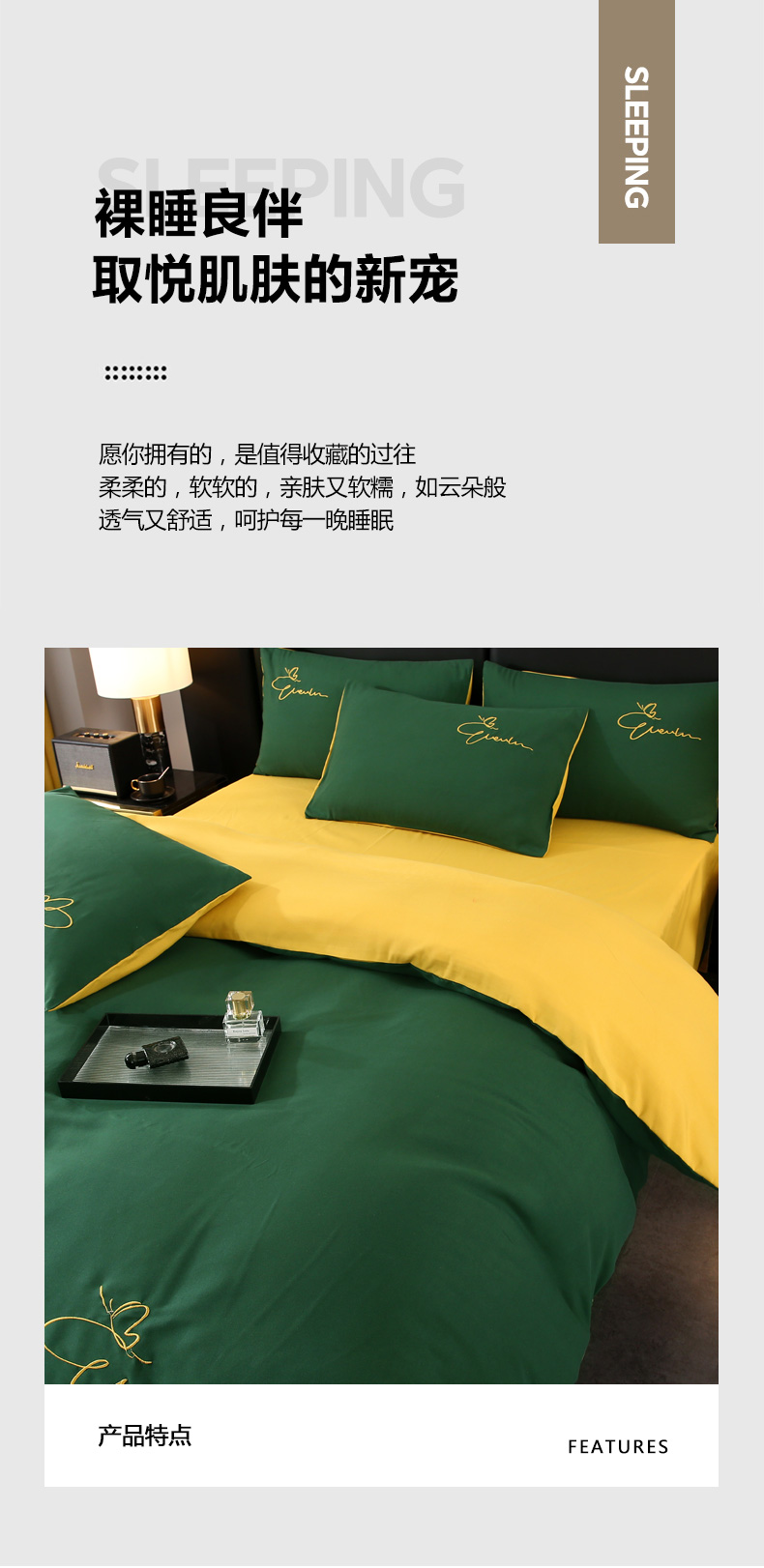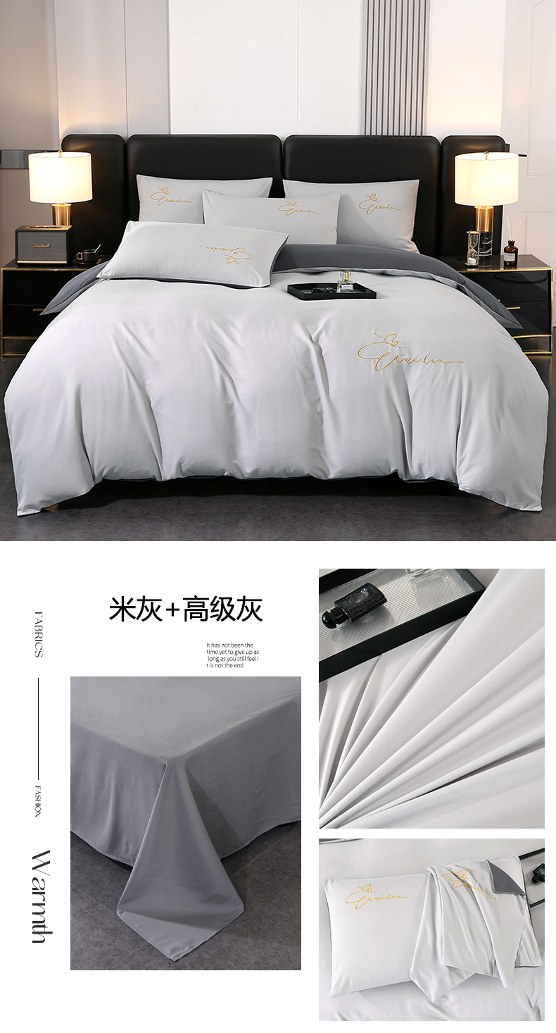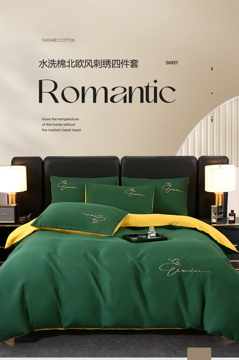 商品名称:(总)(买家秀 爆款花色不断货)A类母婴级纯棉磨毛四件套磨毛刺绣四件套全棉磨毛四件套纯色双拼四件套-四件套