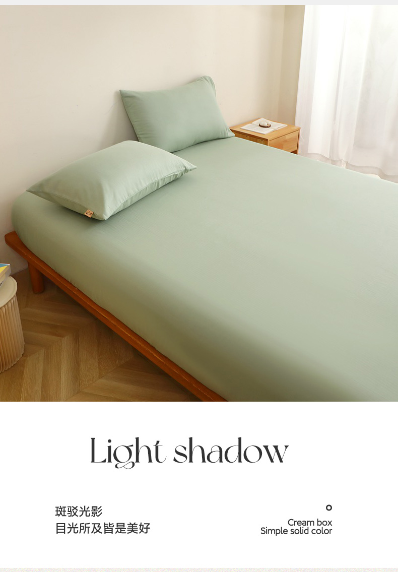 晶缦家纺 2025新款纯棉纯色全棉双层纱系列单床笠 觅琳-嫩荷绿