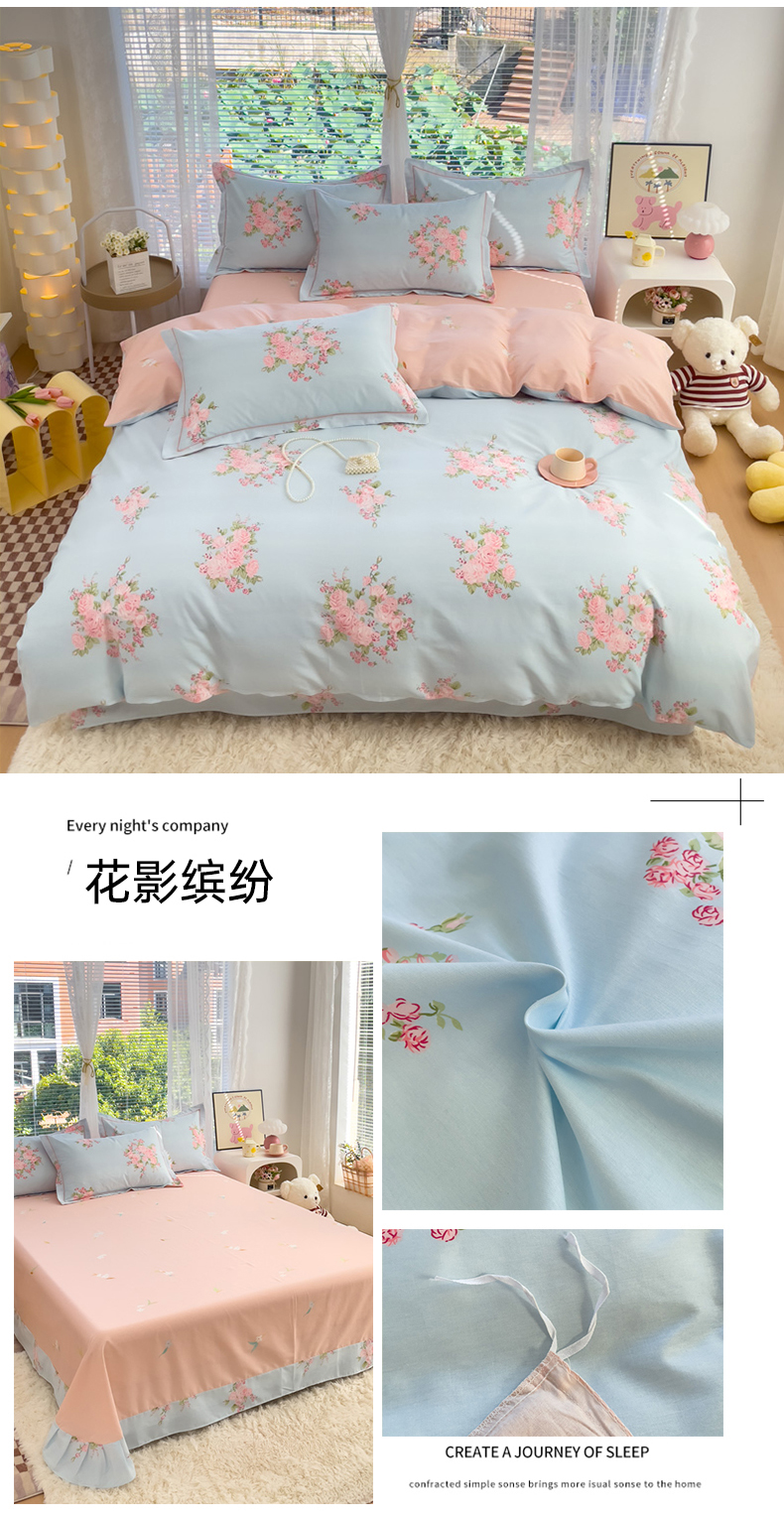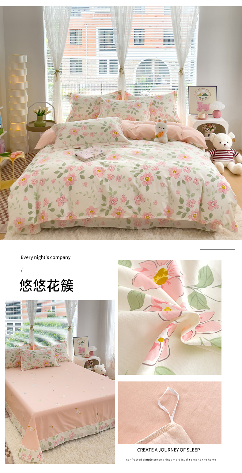 商品名称:(总)(买家秀 爆款花型 不断货)13372纯棉全棉四件套花卉卡通四件套儿童三件套学生宿舍三件套学生套件