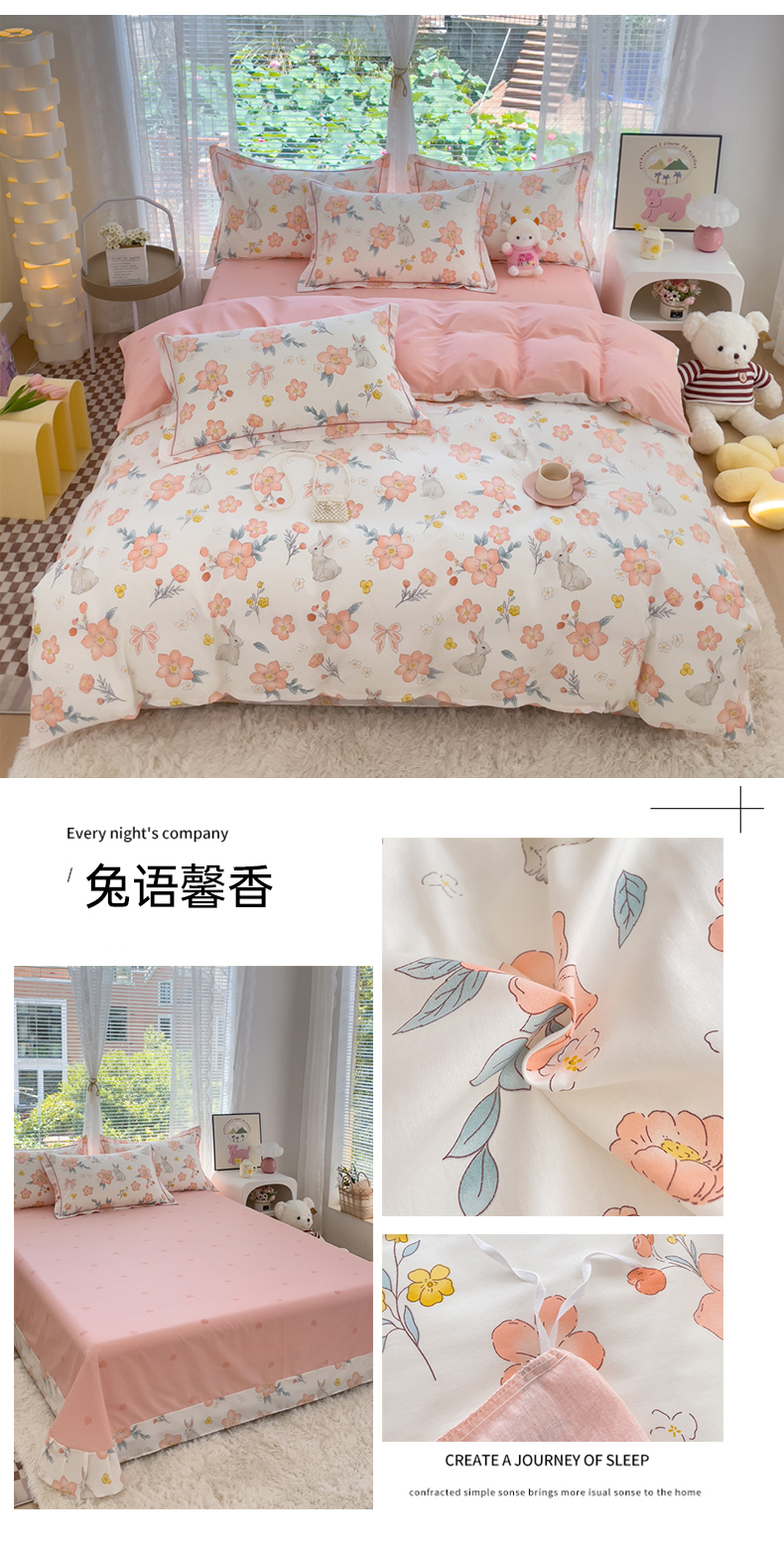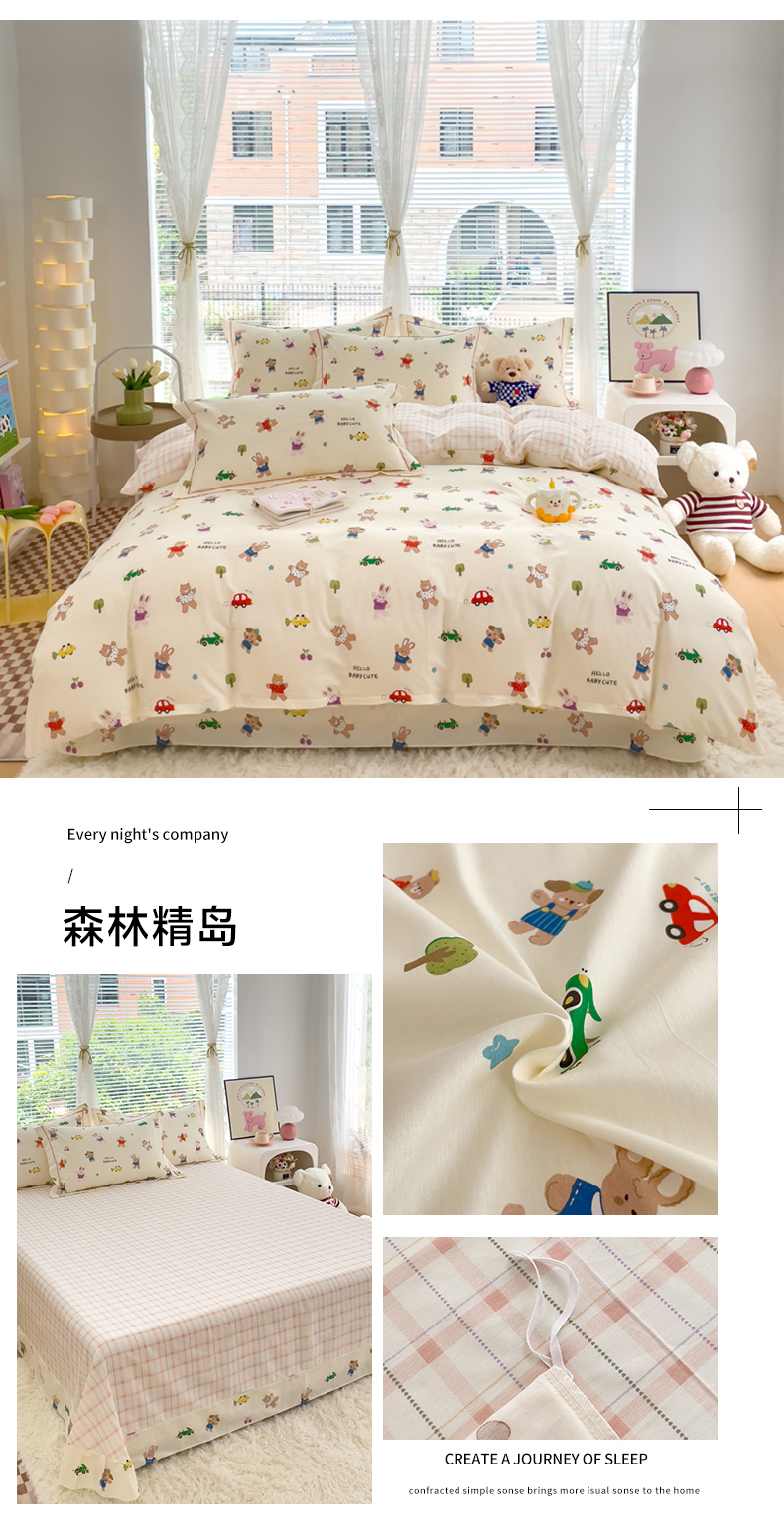 (总)(买家秀爆款不断货)儿童卡通花卉高克重亲肤棉13372全棉纯棉四件套全棉纯棉全棉四件套全棉纯棉三件套,采薇兔,巴尼,茶话会,春意萌,椿野,莱茵小兔,木槿,南枝,青蕊,青棠,森之境,晚风,忘忧草,绽蔓