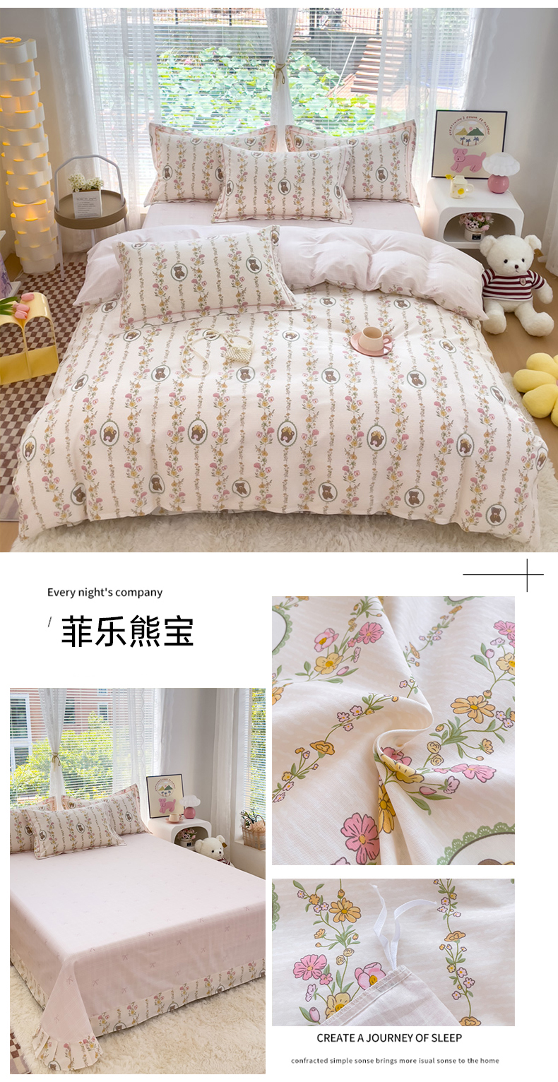 (总)(优质买家秀 热卖不断货)A类母婴级卡通花卉儿童100纯棉全棉四件套全棉纯棉全棉四件套纯棉全棉双层纱,初暖,粉小花,花栖,花栖-咖,恋花小径,萝蔓,落山秋,南瓜派,清然,瑞莎,小熊派,紫葡萄