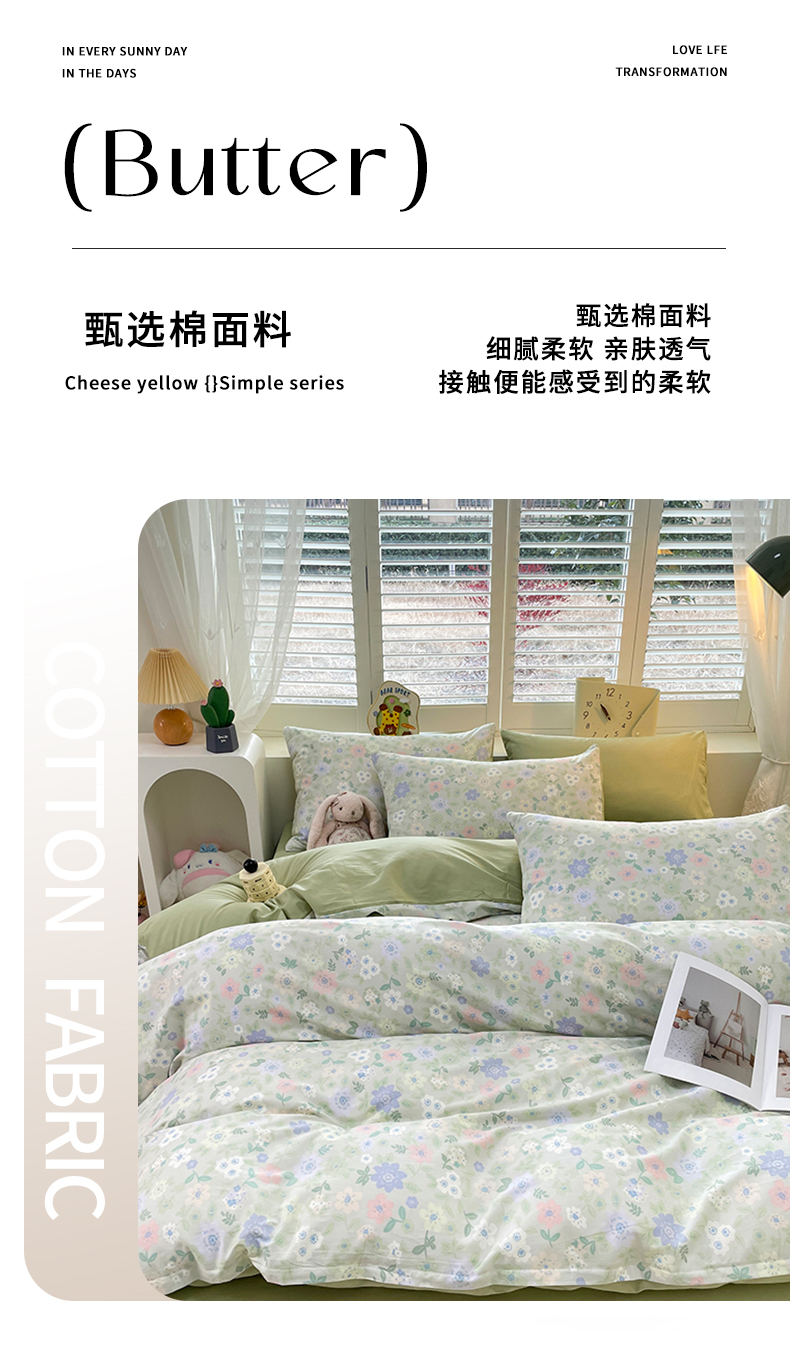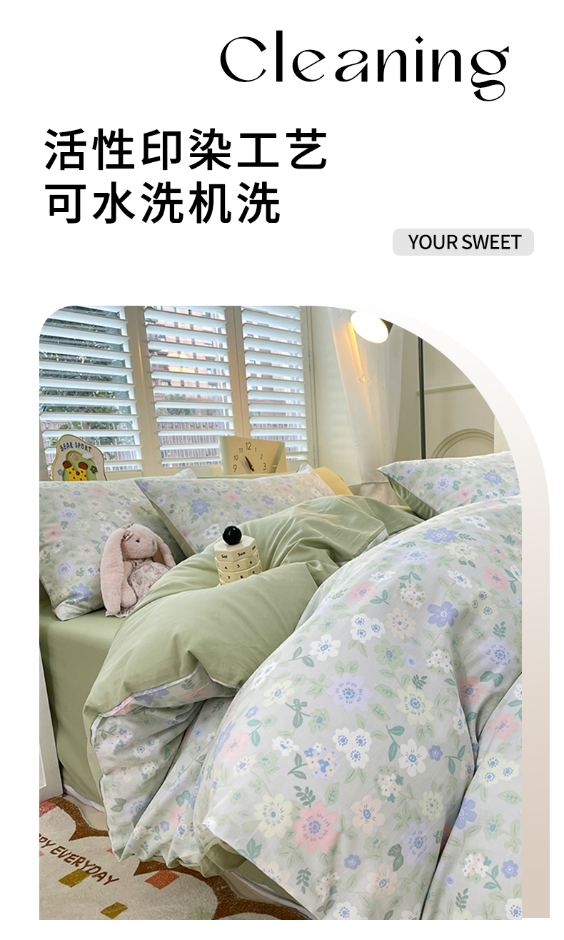 当前位置: 91家纺网 > 商品网购 > 床品套件 > 四件套 > 全棉普通四件套 > 丫丫家纺 2025新款13070全棉喷气小清新印花单品套件系列-四件套 绿意盎然