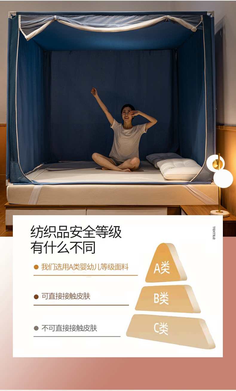 (总)飞轮海蚊帐 2023新款U型三开门遮光坐床蚊帐-Z-75,黛蓝,奶油黄,香槟