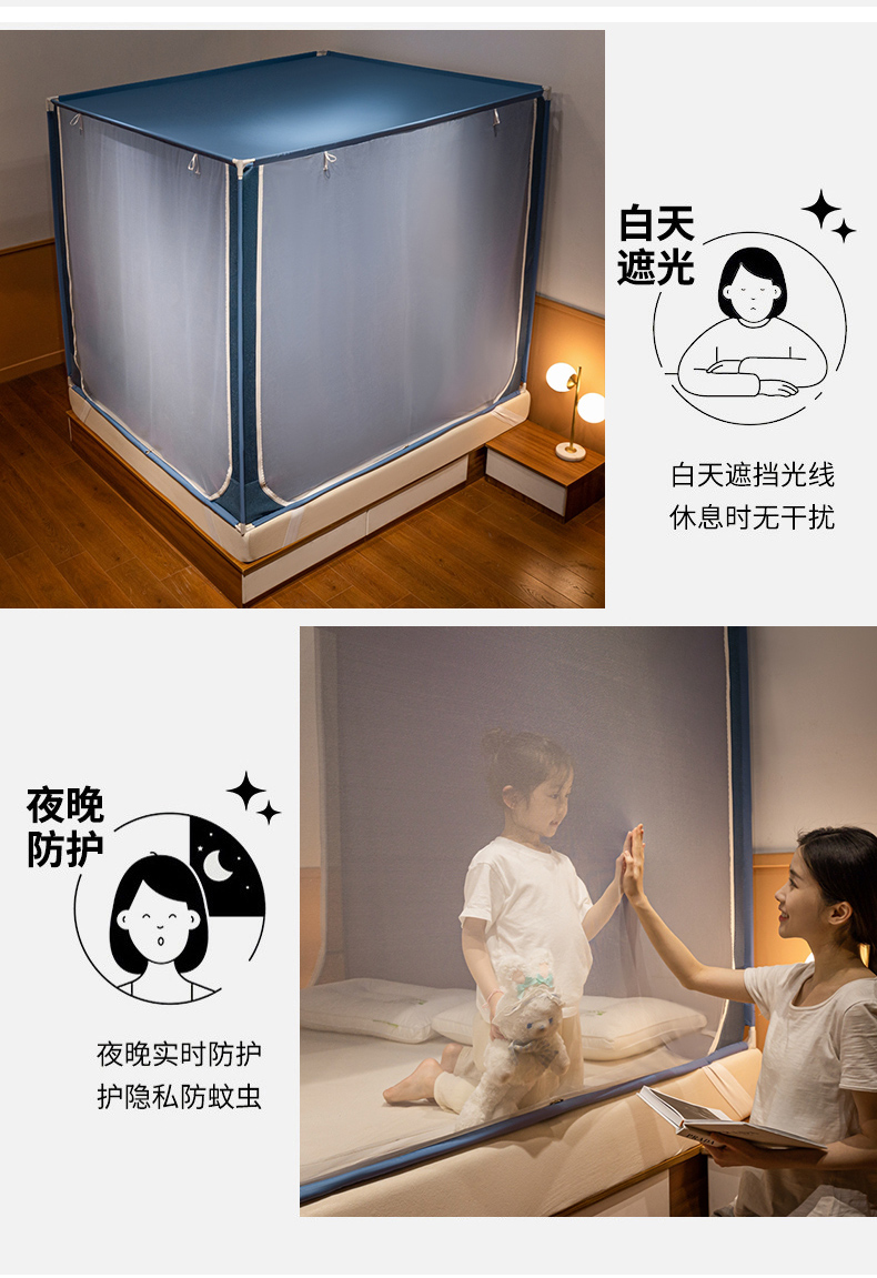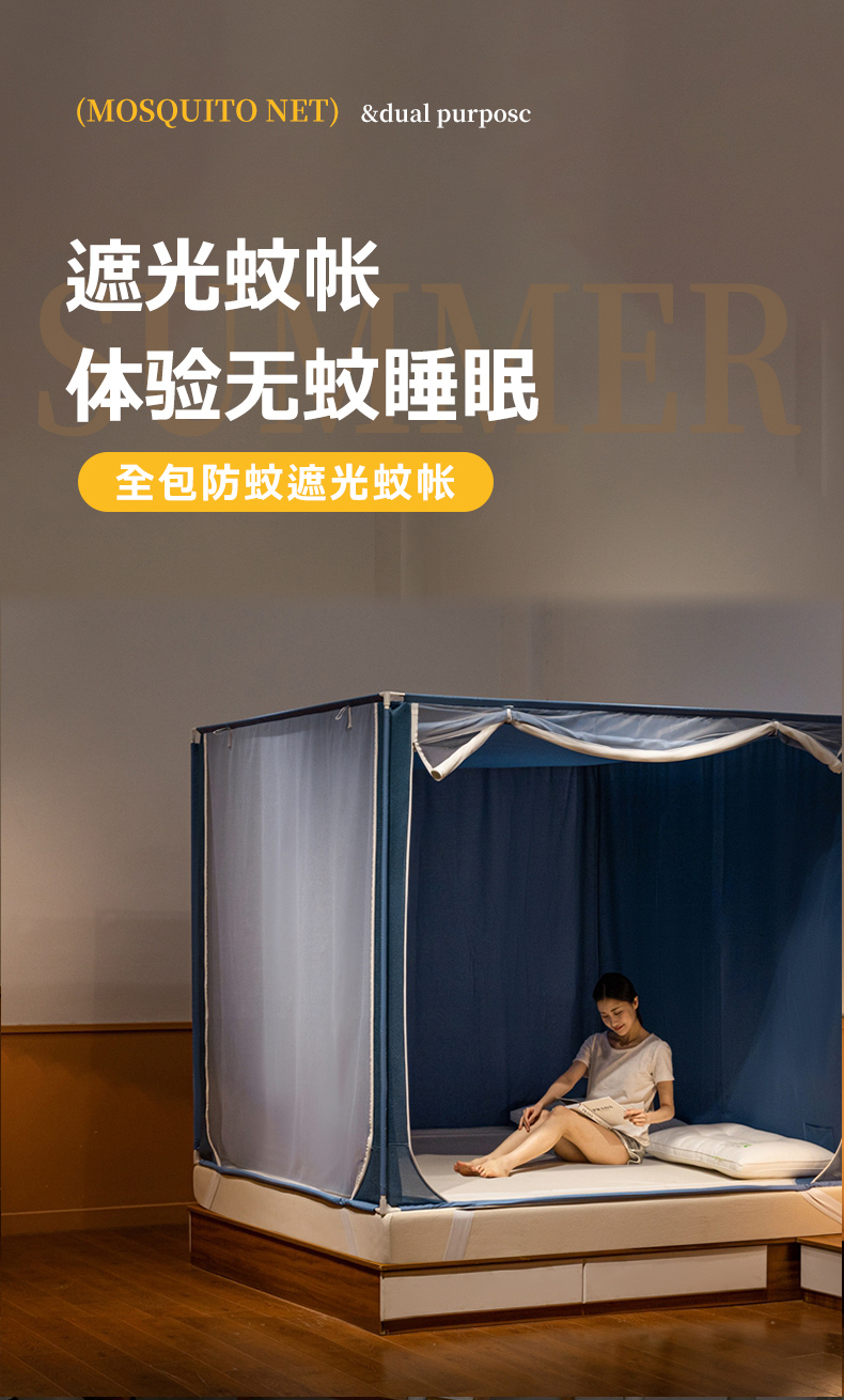 (总)飞轮海 2025新款全包遮光防蚊蚊帐Z31,黛蓝,奶油黄,香槟