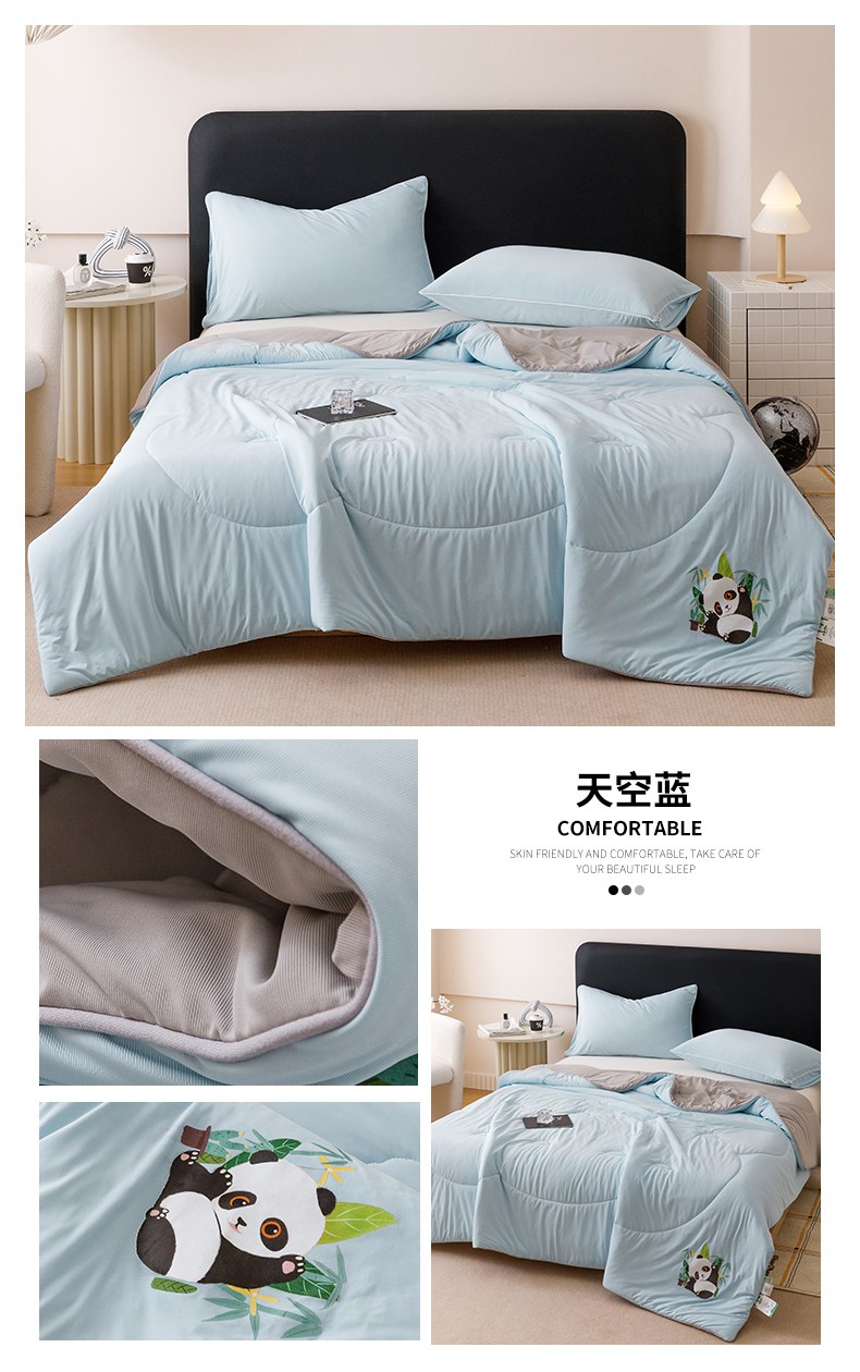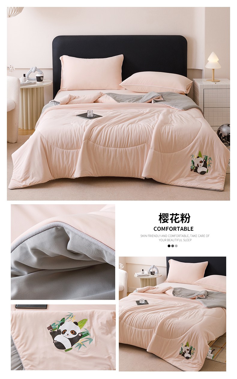 (总)恬思语家纺 2025新款凉感抱抱熊大豆夏被 ,翠绿,浅草绿,浅灰,浅绿,天空蓝,樱花粉