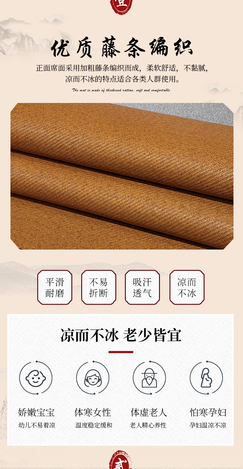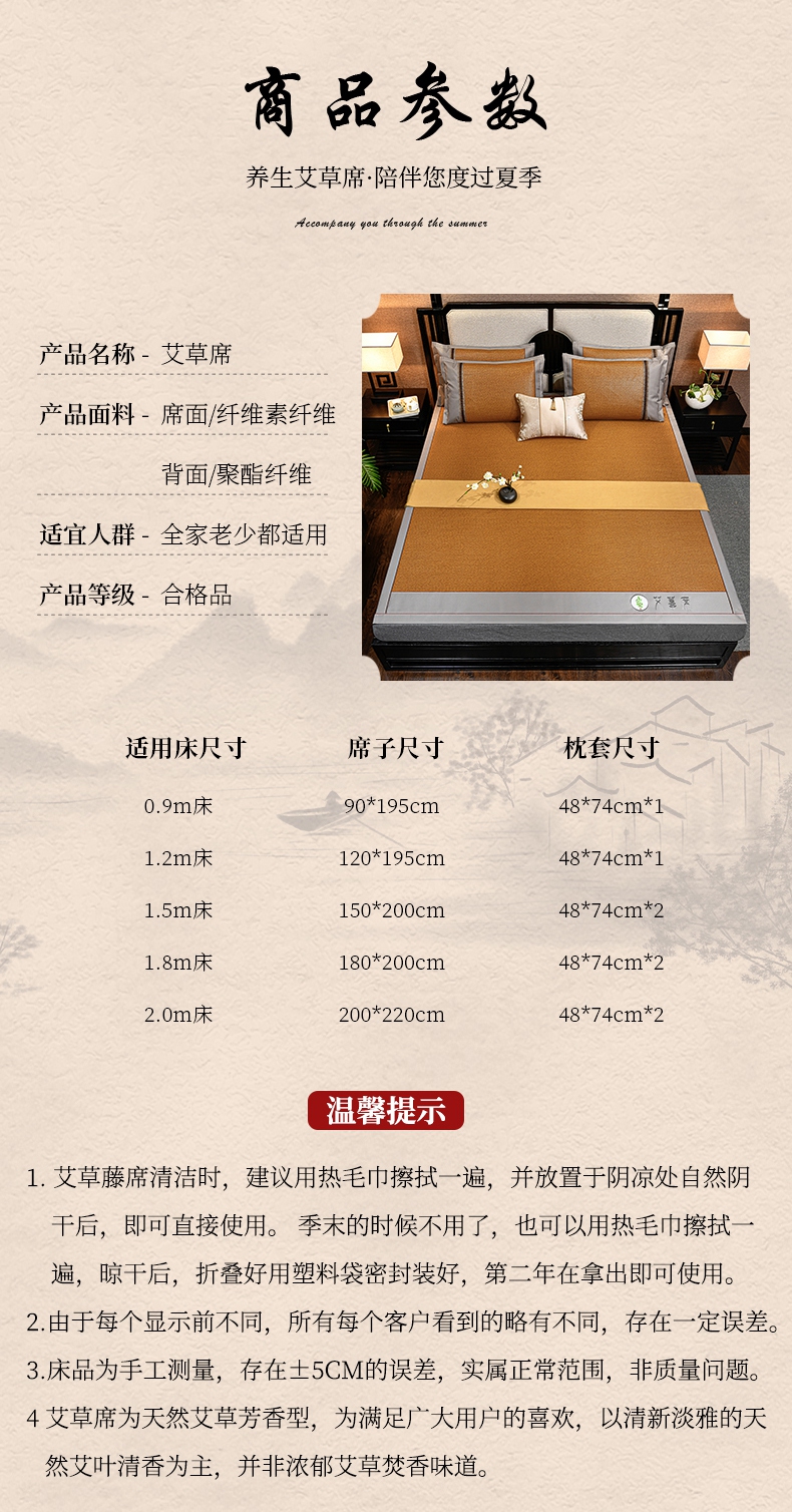 商品名称:(总)小牛席业 2025新款加厚款-经典艾草养生席凉席藤席冰藤席冰丝席竹席草席空调席乳胶席豆豆席