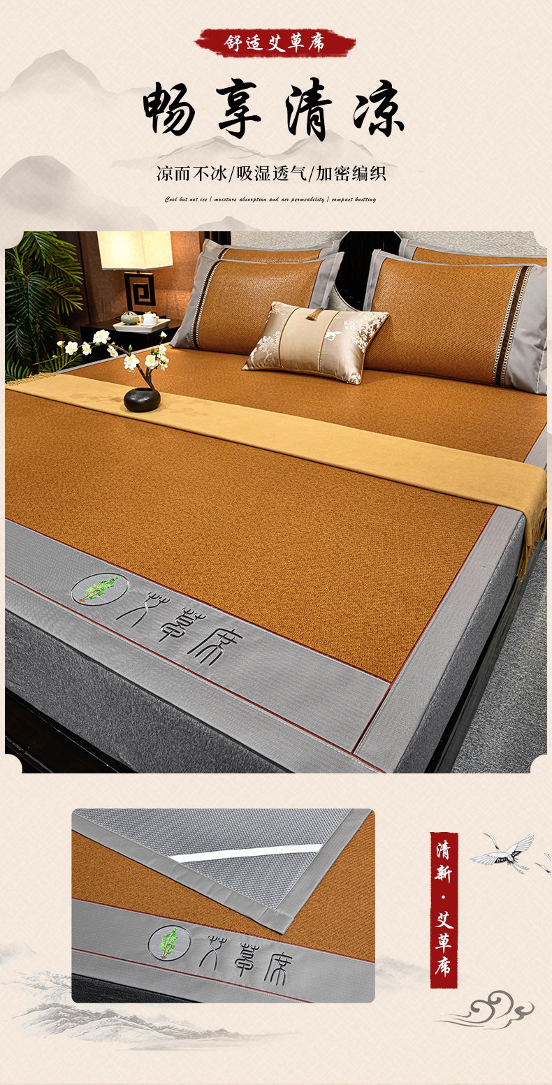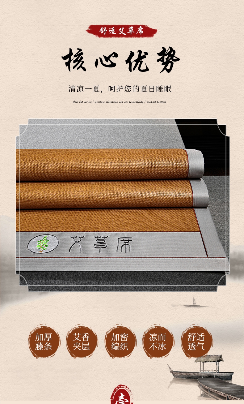(总)小牛席业 2025新款加厚款-经典艾草养生席凉席藤席冰藤席冰丝席竹席草席空调席乳胶席豆豆席