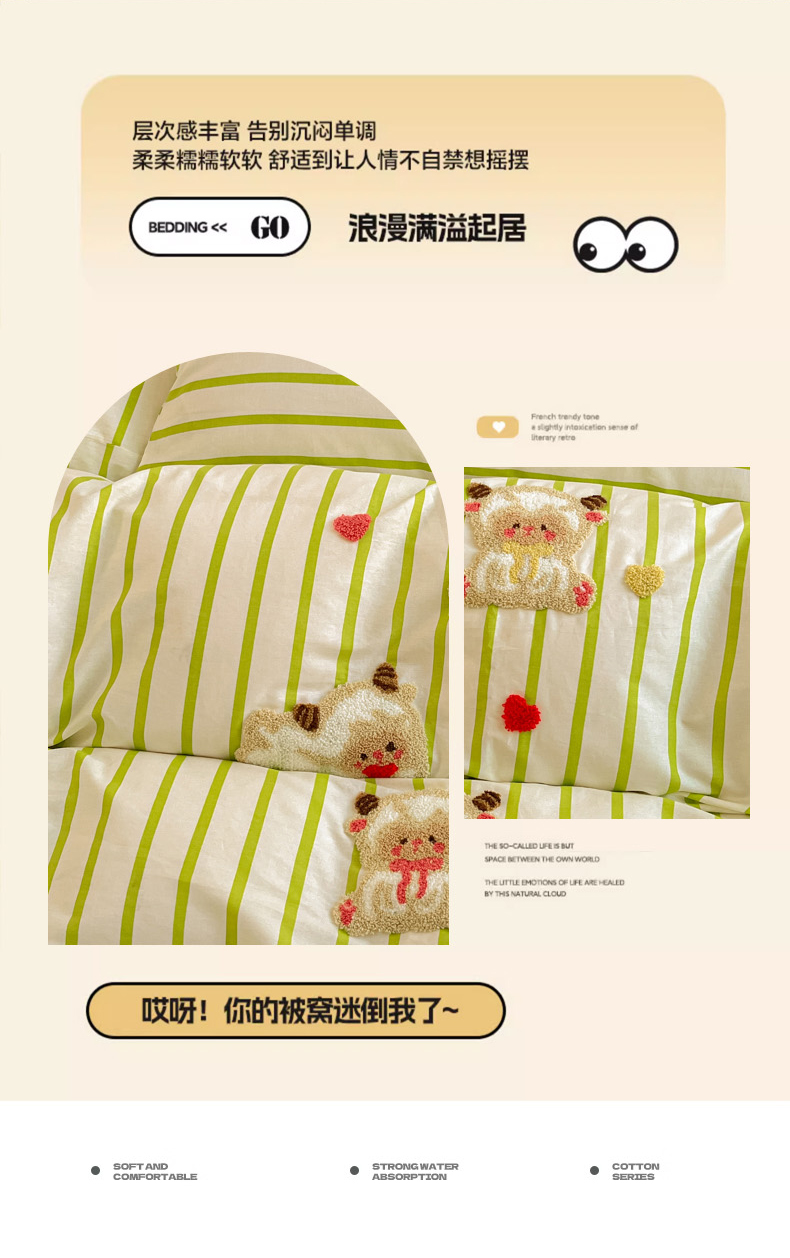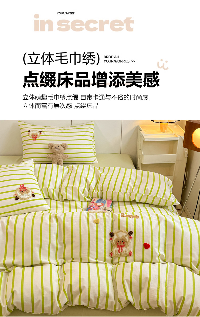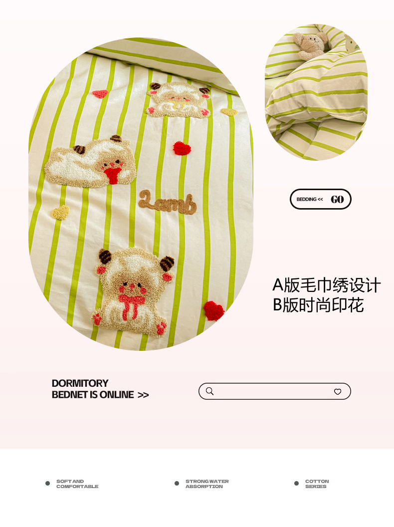 商品名称:寐居家纺 2025新款全棉13070毛巾绣四件套 甜心萌羊