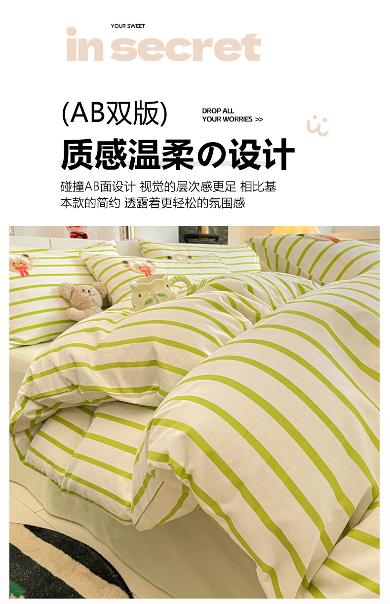 (总) 寐居 2023新款双拼全棉水洗棉纯色四件套,ins风-草绿色,ins风-湖绿色,ins风-裸粉色,ins风-迷雾蓝,ins风-奶油黄,ins风-柠檬黄,ins风-樱花粉,鹅黄+香芋紫,焦糖+卡其,军绿+焦糖,米黄+卡其,米黄+深粉,奶油玉+鹅黄,深粉+湖蓝,深蓝+焦糖,藏青+浅灰,绿+牛油果绿,米黄+浅蓝,抹茶绿+橡木黄,奶油玉+橄榄绿,奶油玉+香芋紫,浅豆沙+浅灰,深蓝+灰