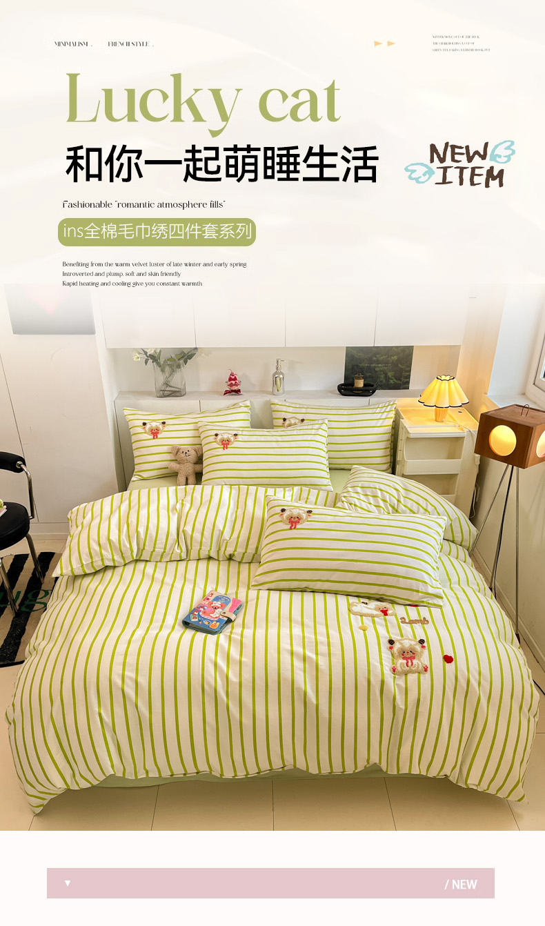 寐居家纺 2025新款全棉13070毛巾绣四件套 甜心萌羊