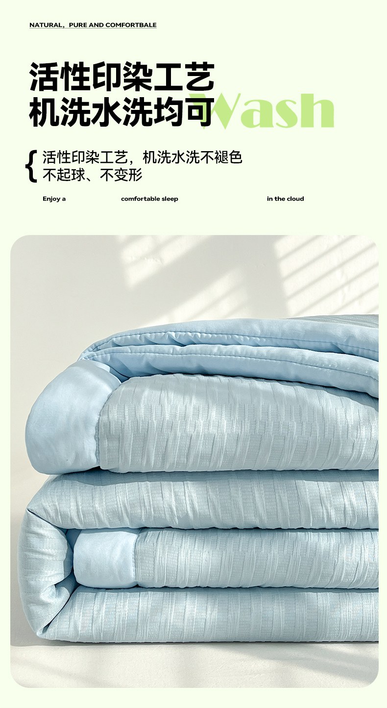 恬思语家纺 2025新款泡泡纱大豆夏被 天空蓝