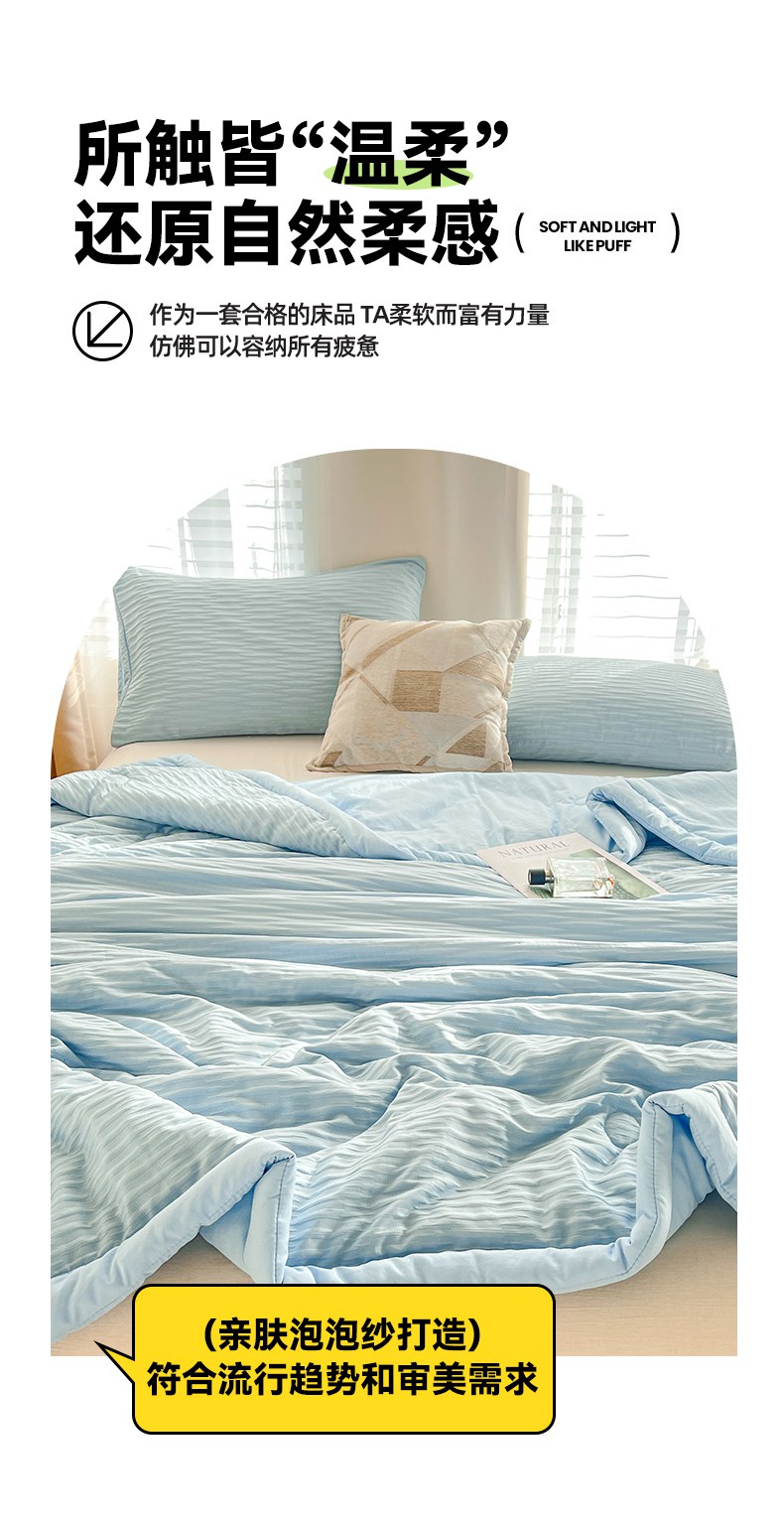 商品名称:恬思语家纺 2025新款泡泡纱大豆夏被 天空蓝