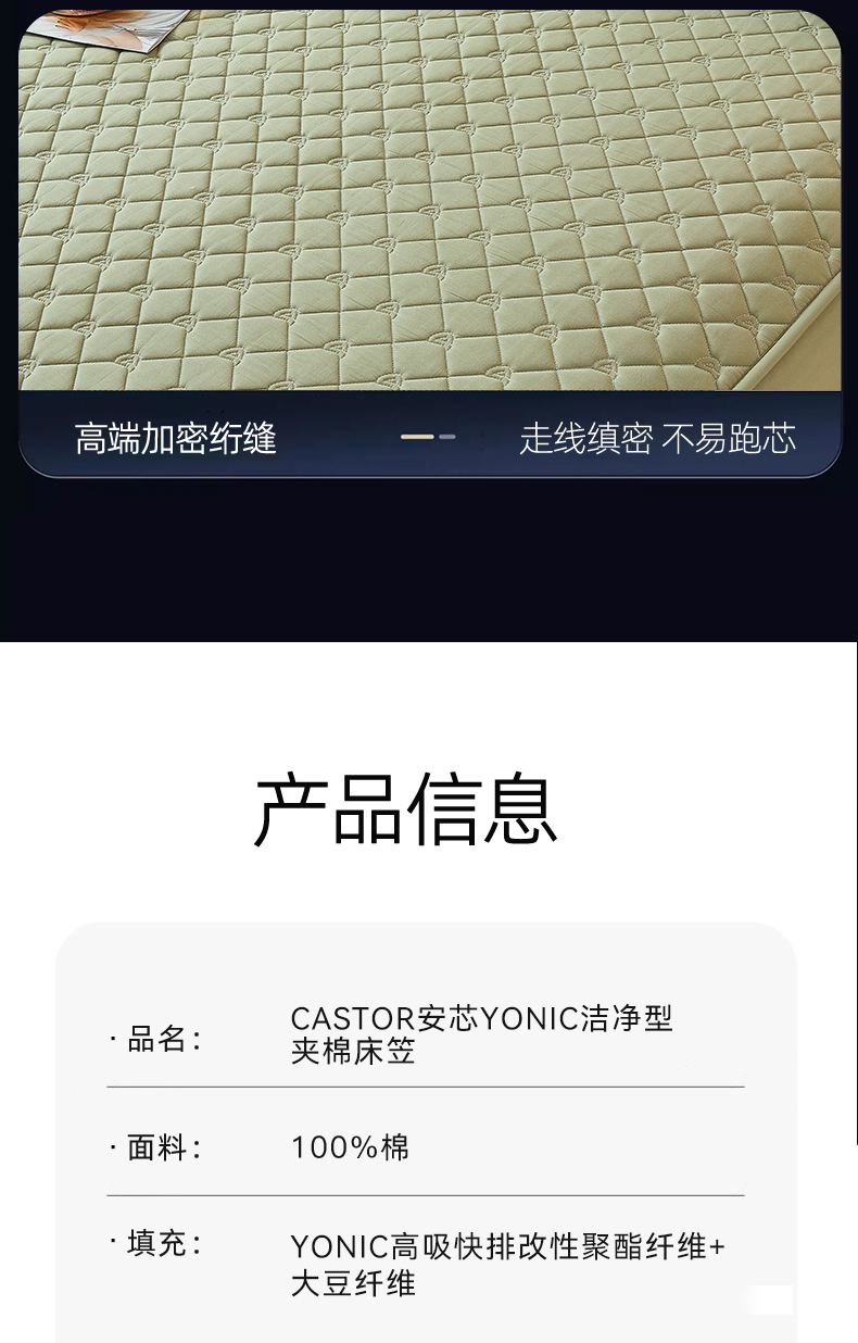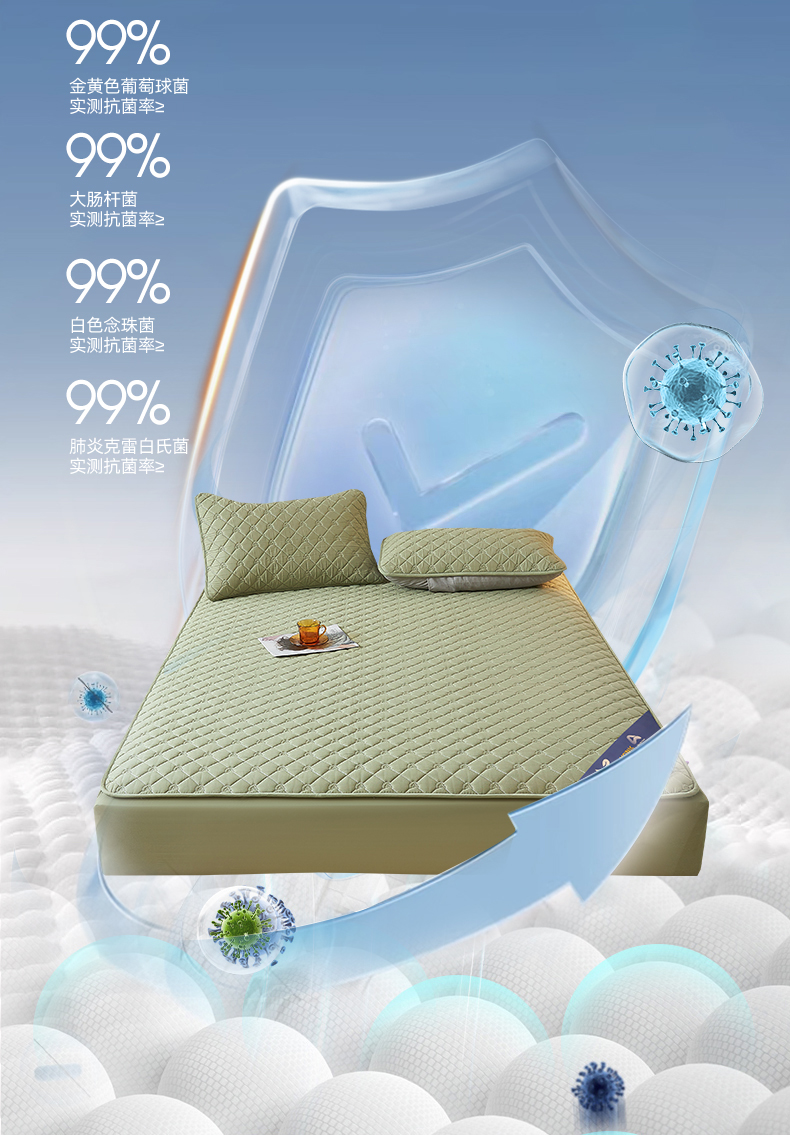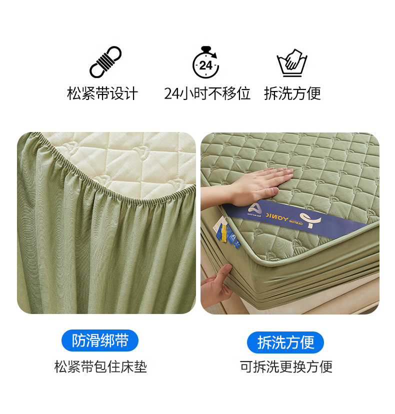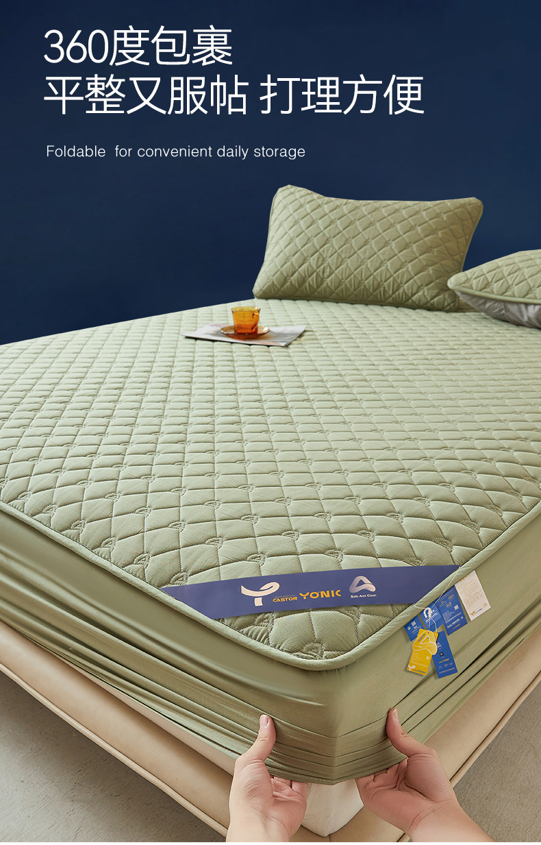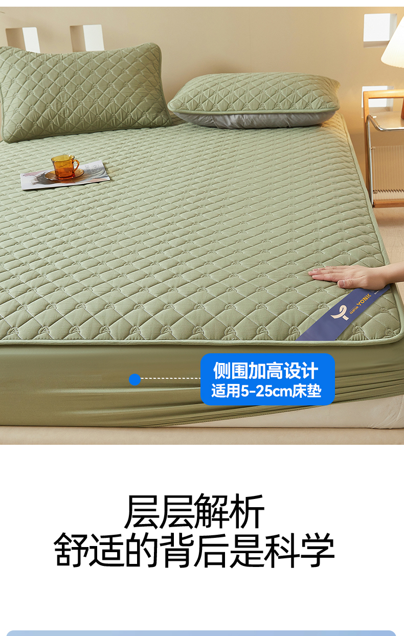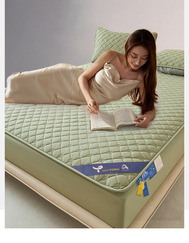 商品名称:布卢姆床垫 2025新款A类全棉castor优净丝洁净夹棉床笠--雅境系列 雅境-绿