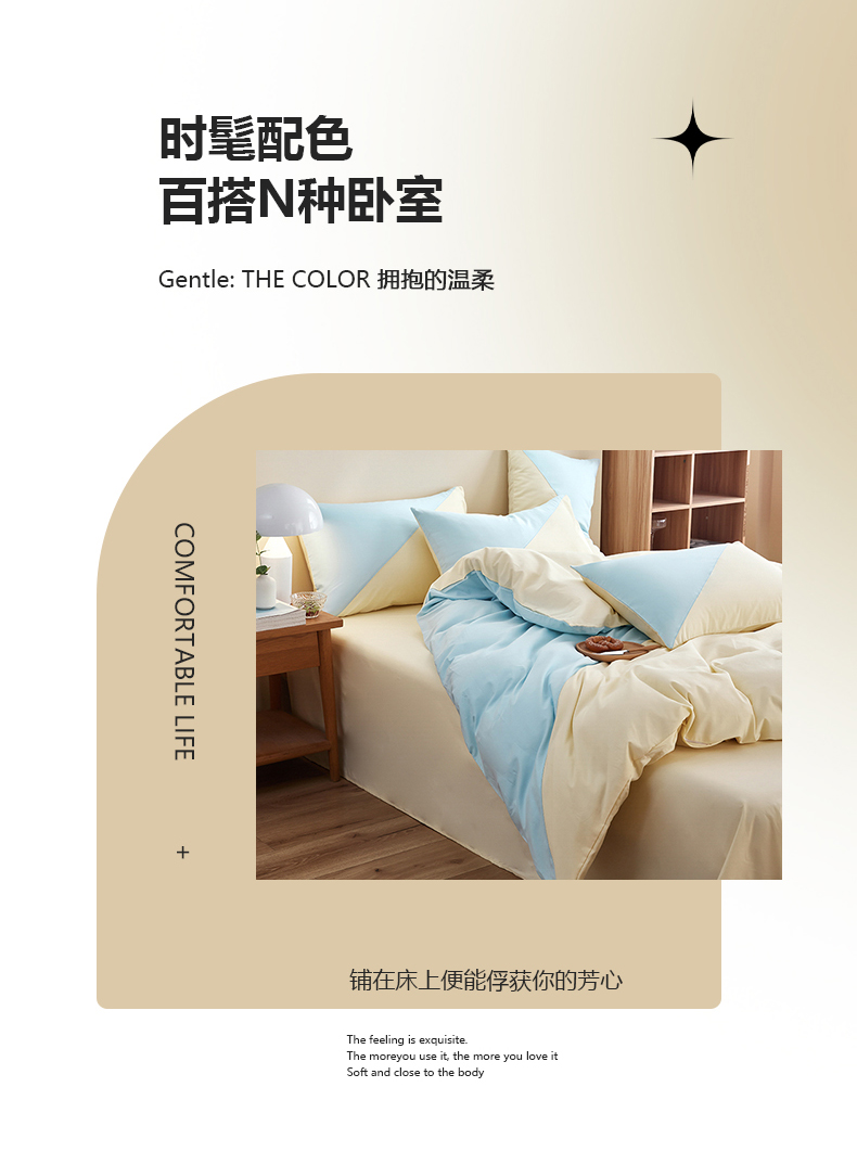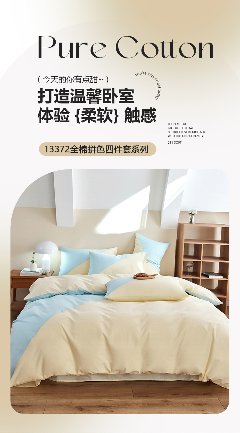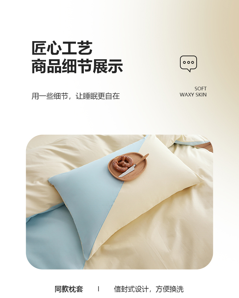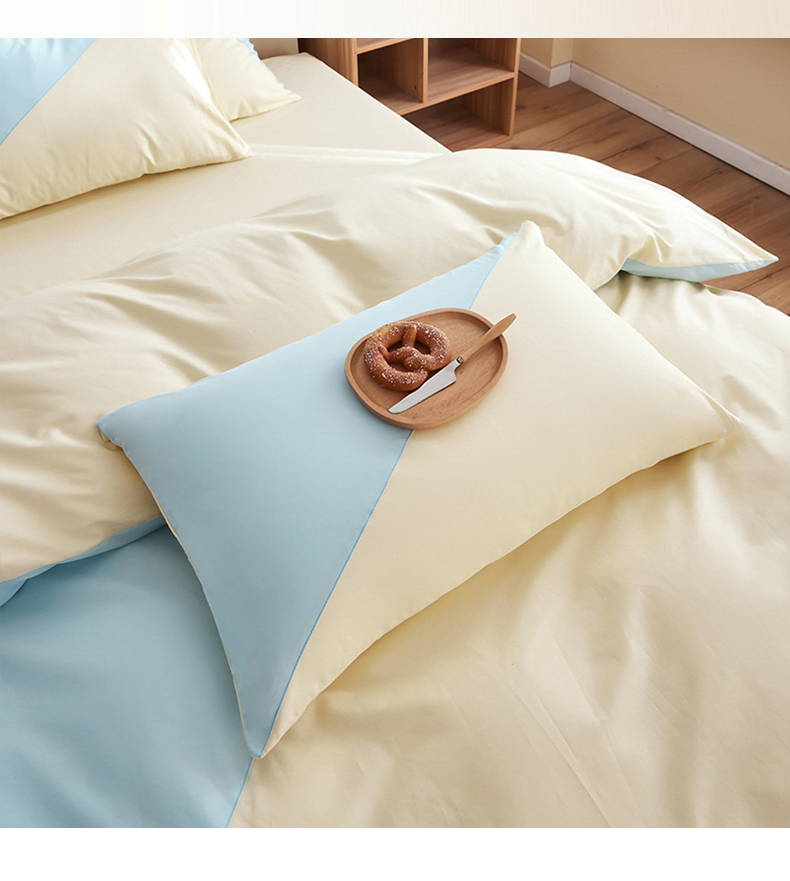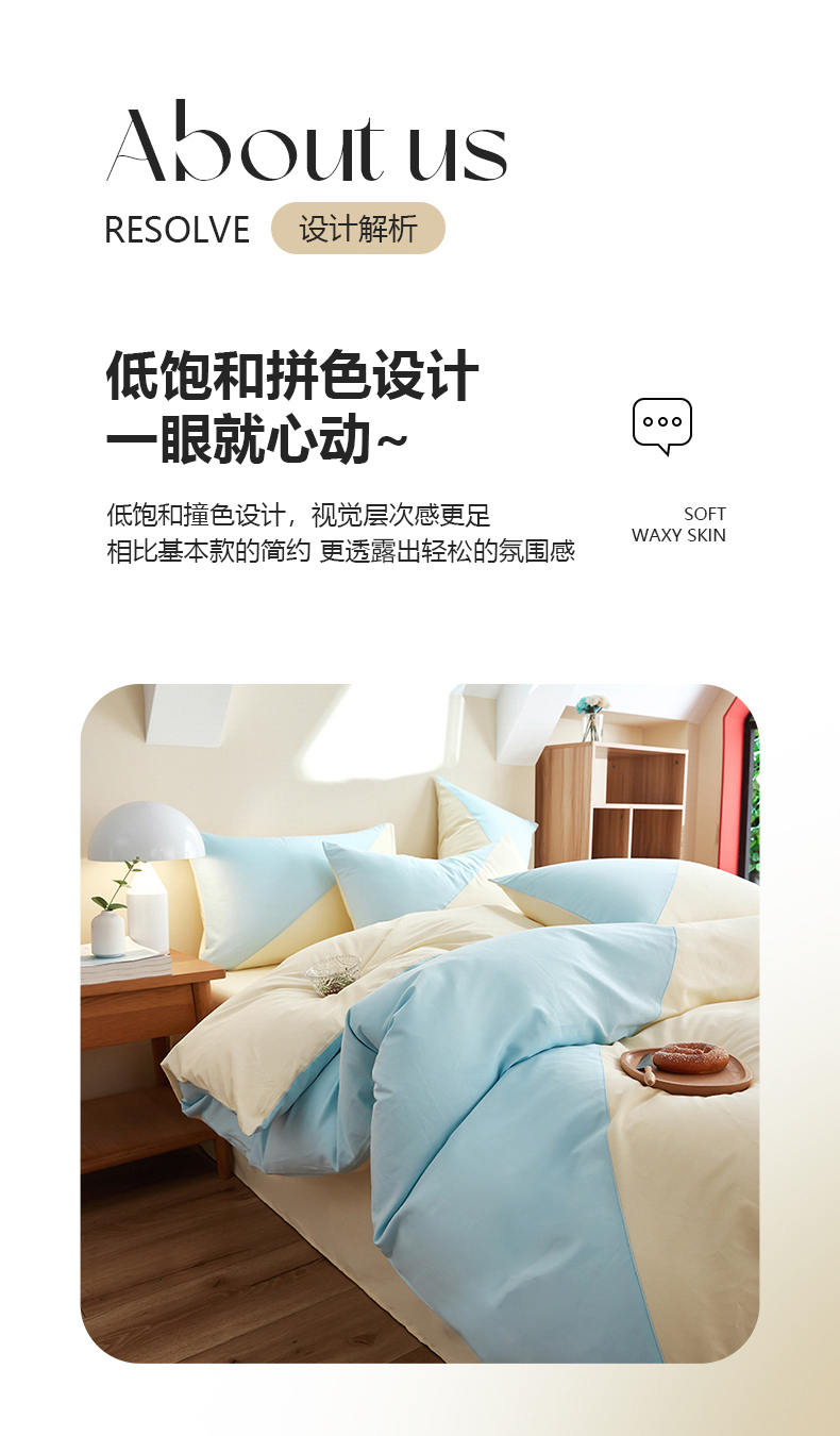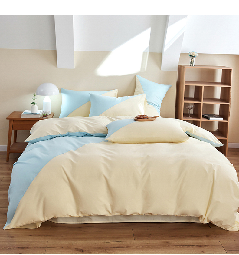 慕希2025新款40S全棉喷气13372简约三角拼四件套 简约-奶油蓝